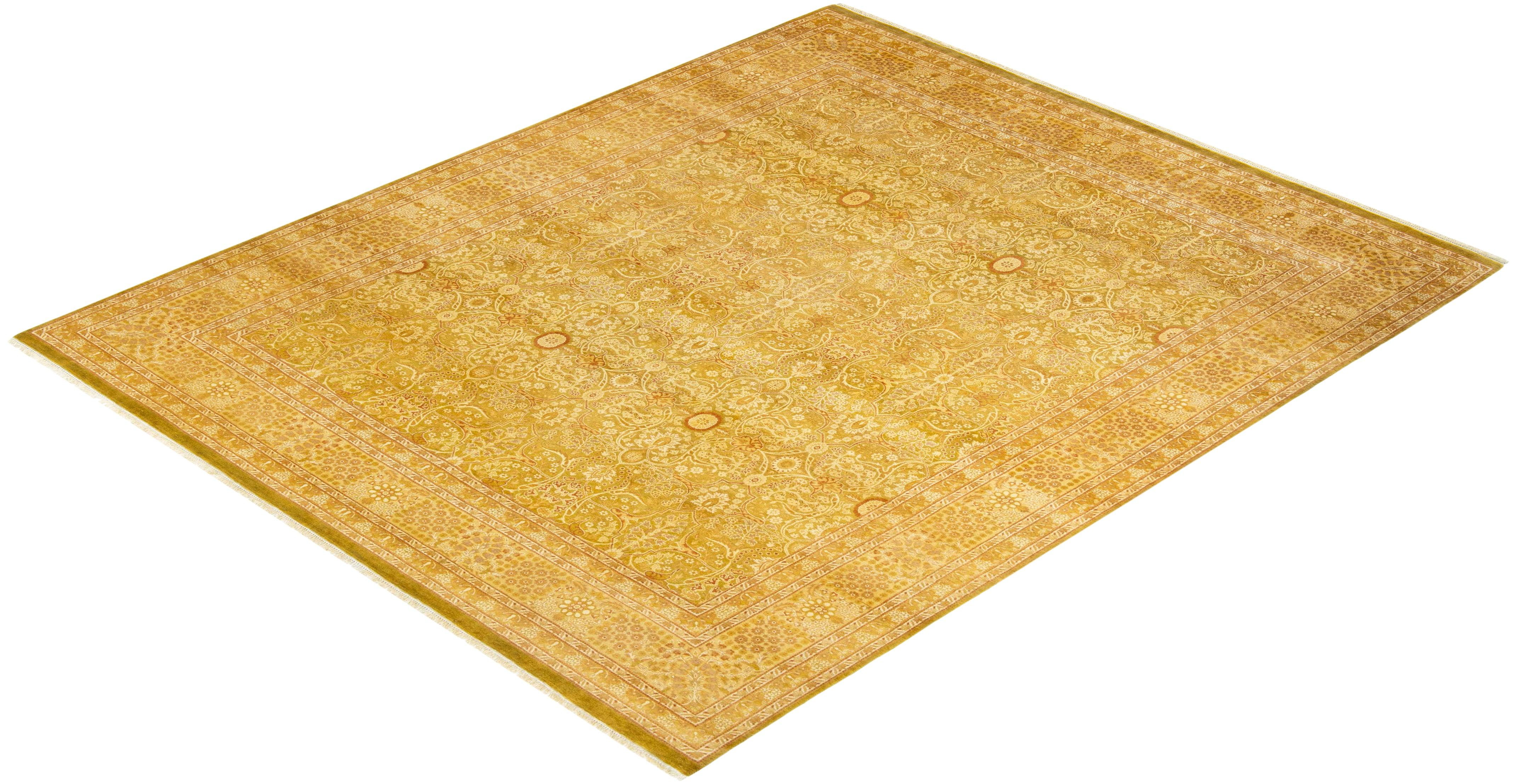 Traditional Hand Knotted Mogul Floral Green Area Rug 8' 2" x 9' 10"
