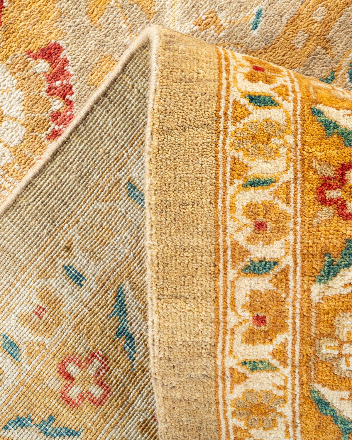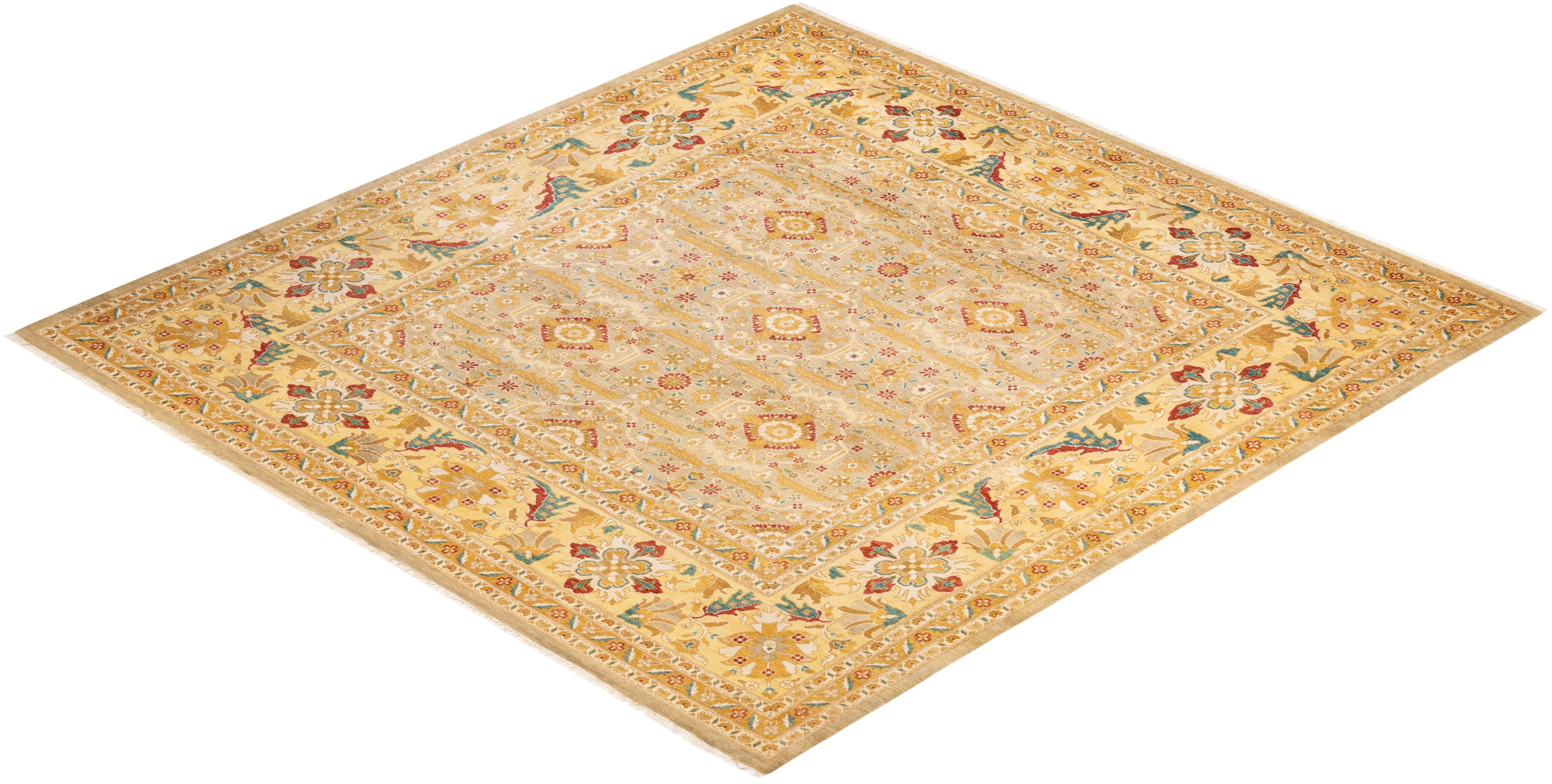 Contemporary Hand Knotted Eclectic Ivory Square Area Rug 9' 1" x 9' 8"