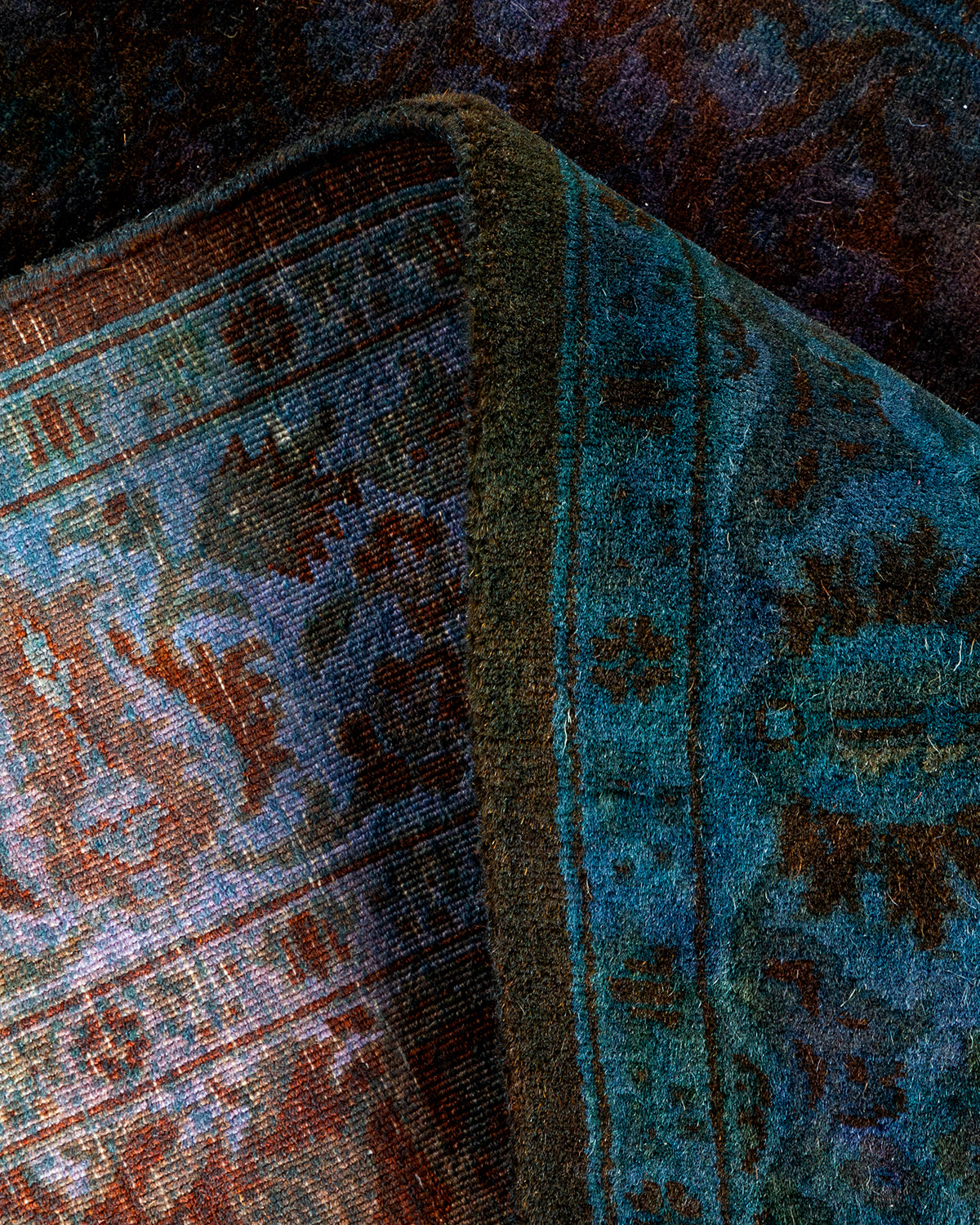 Overdyed rugs epitomize classic with a twist: traditional patterns overdyed in brilliant color. Each hand-knotted rug is washed in a 100%-natural botanical dye that reveals hidden nuances in the designs. These are rugs that transcend trends, and their sturdy construction ensures that they’ll withstand years of heavy traffic.