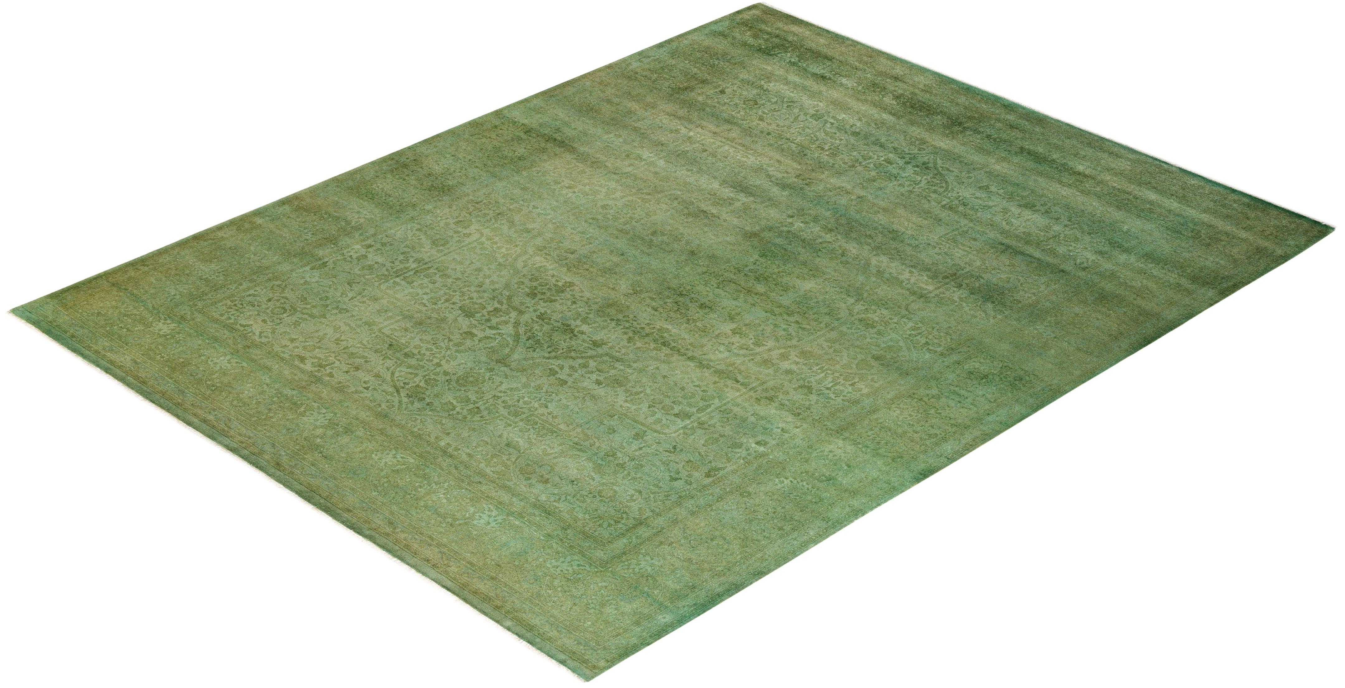 Contemporary Hand-Knotted Green Area Rug 7' 10" x 10' 2"