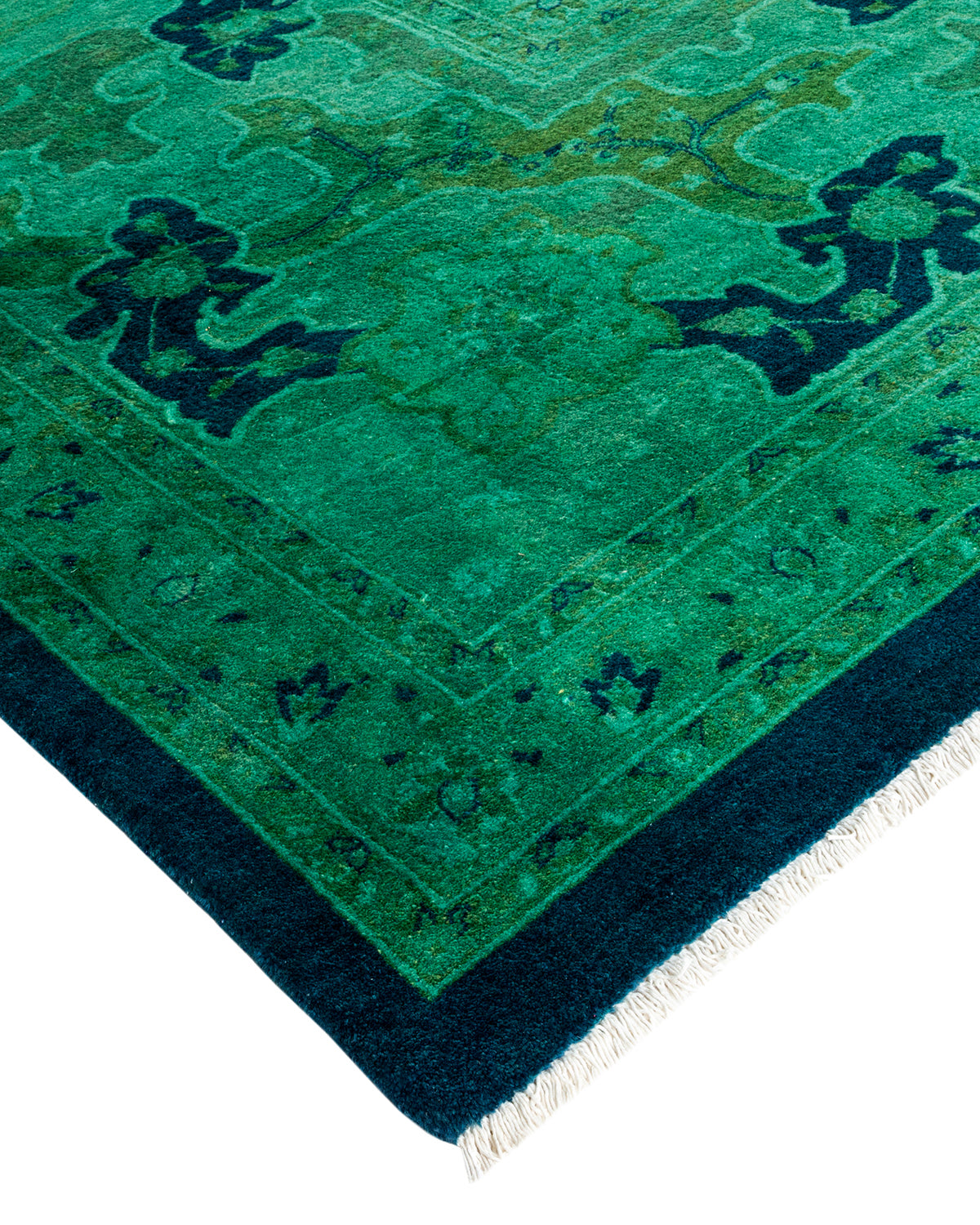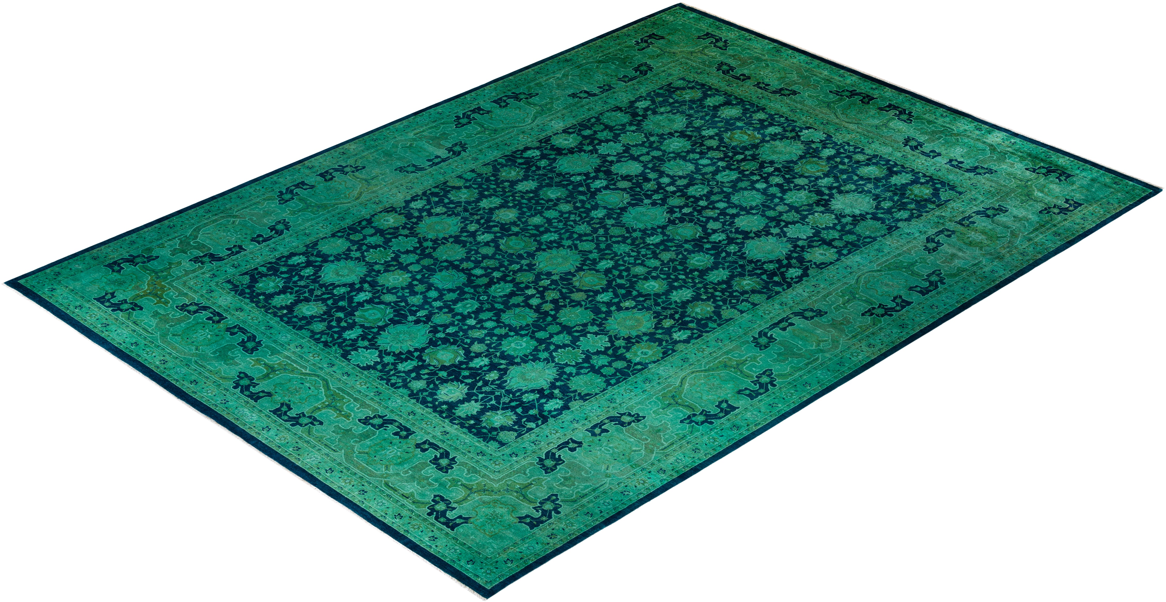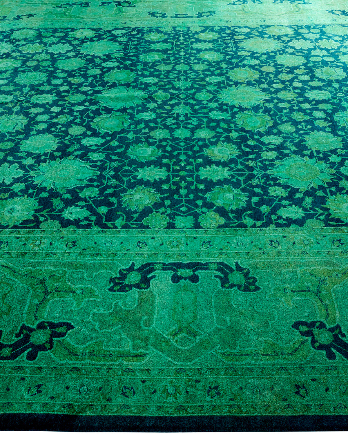 Contemporary Hand-Knotted Overdyed Green Area Rug 10' 2" x 14' 4"