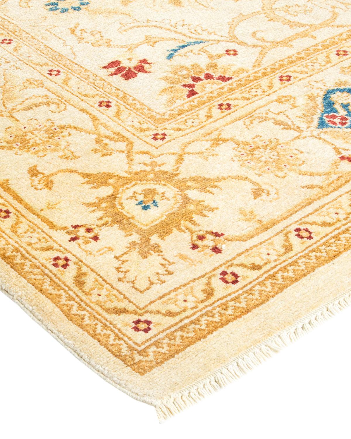 Contemporary Hand Knotted Eclectic Oriental Ivory Area Rug 6' 1" x 8' 10"