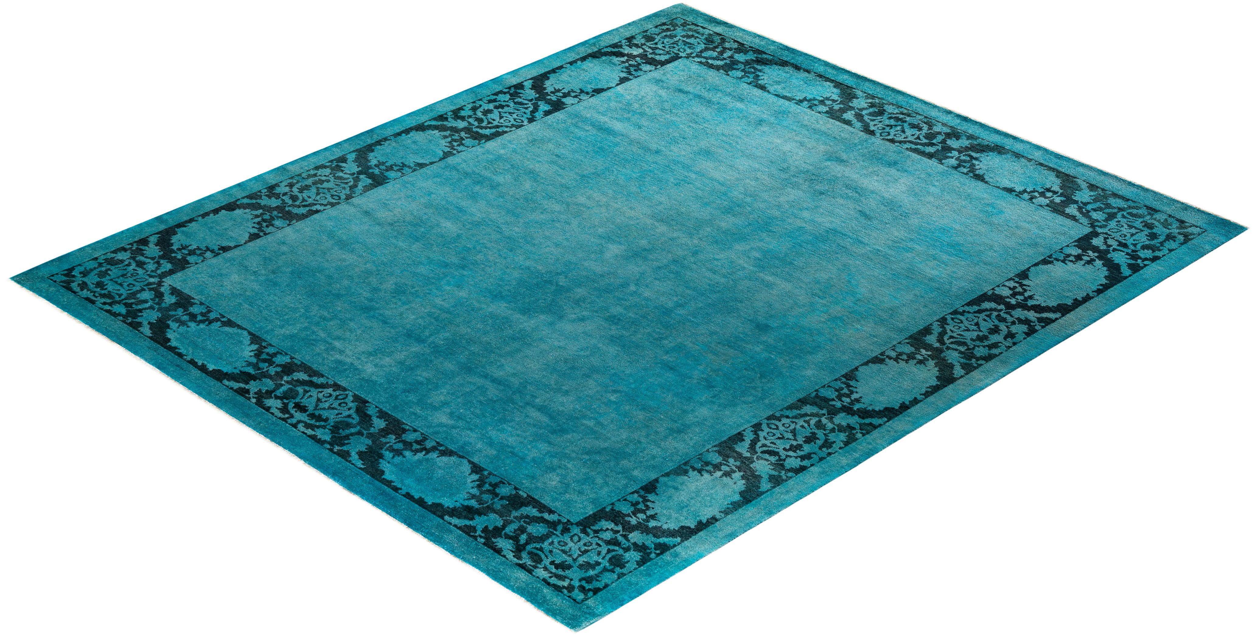 Contemporary Hand-Knotted Blue Area Rug 8' 5" x 9' 8"