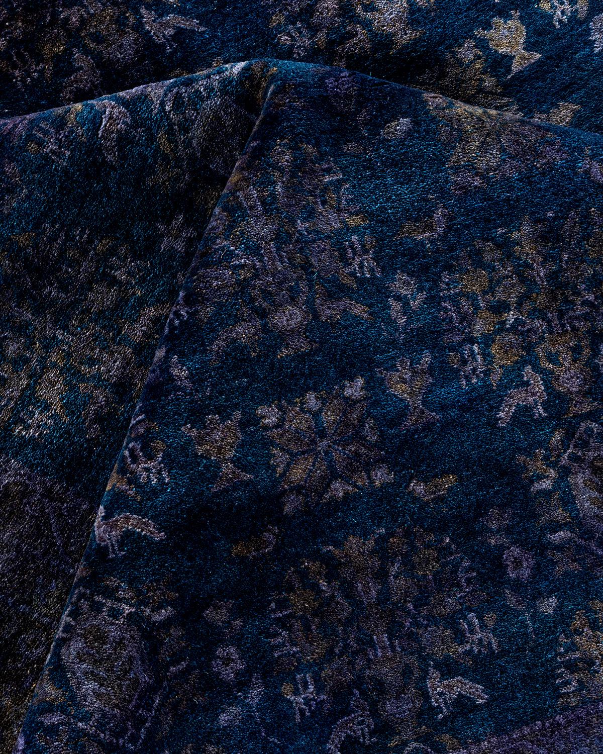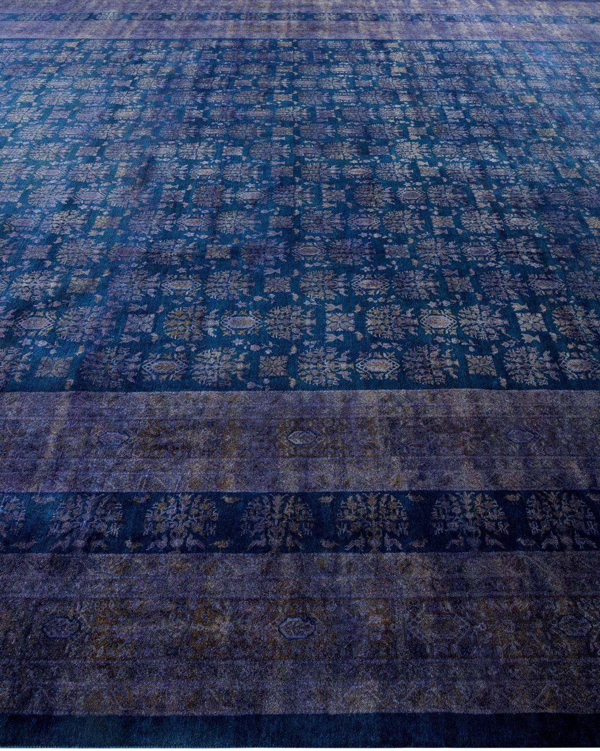 Contemporary Hand Knotted Overdyed Blue Area Rug 15' 2" x 12' 3"