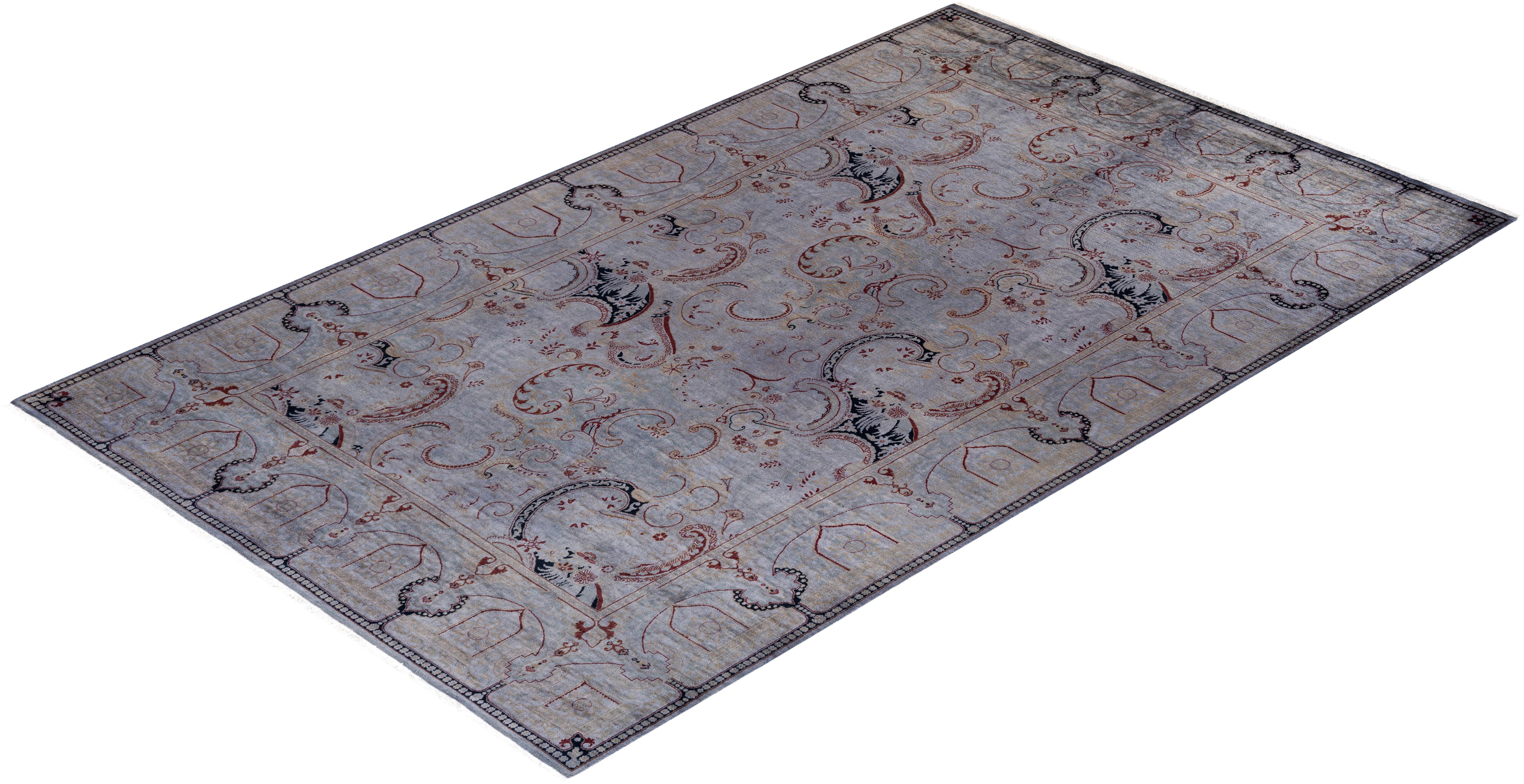 Contemporary Hand Knotted Overdyed Gray Area Rug 6' 2" x 10' 1"