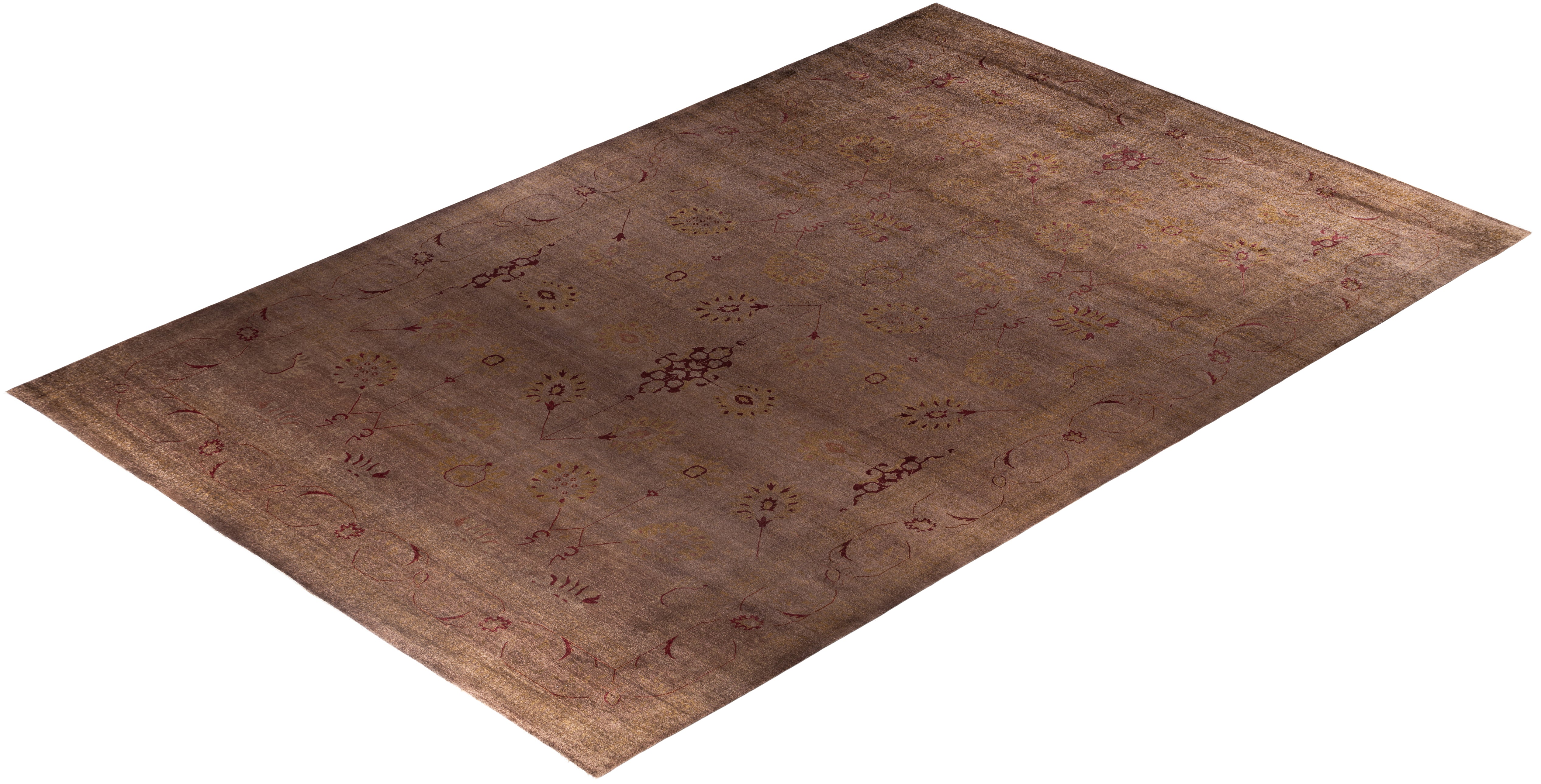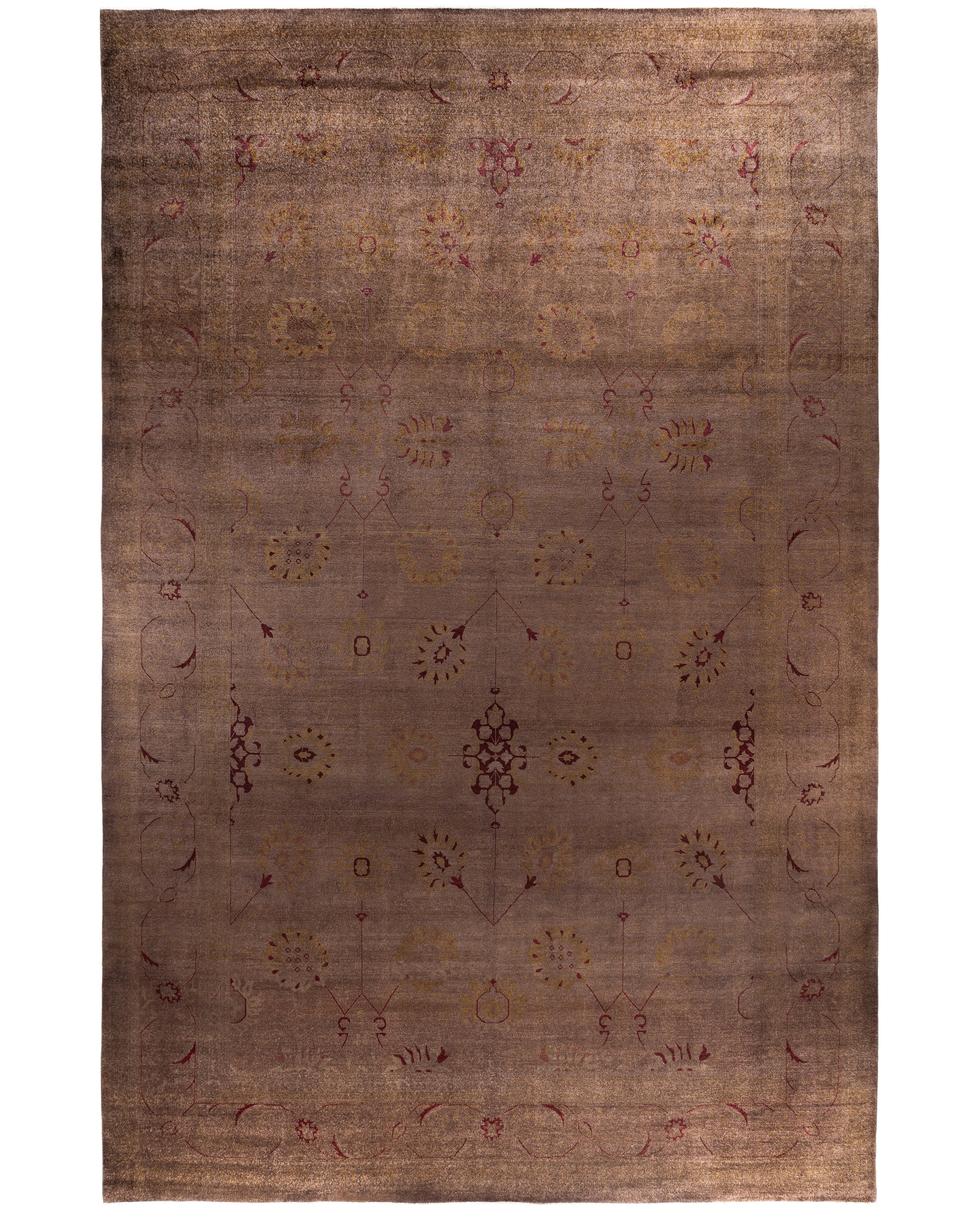 Overdyed One-of-a-Kind Wool Brown Area Rug 11' 10" x 18' 5"
