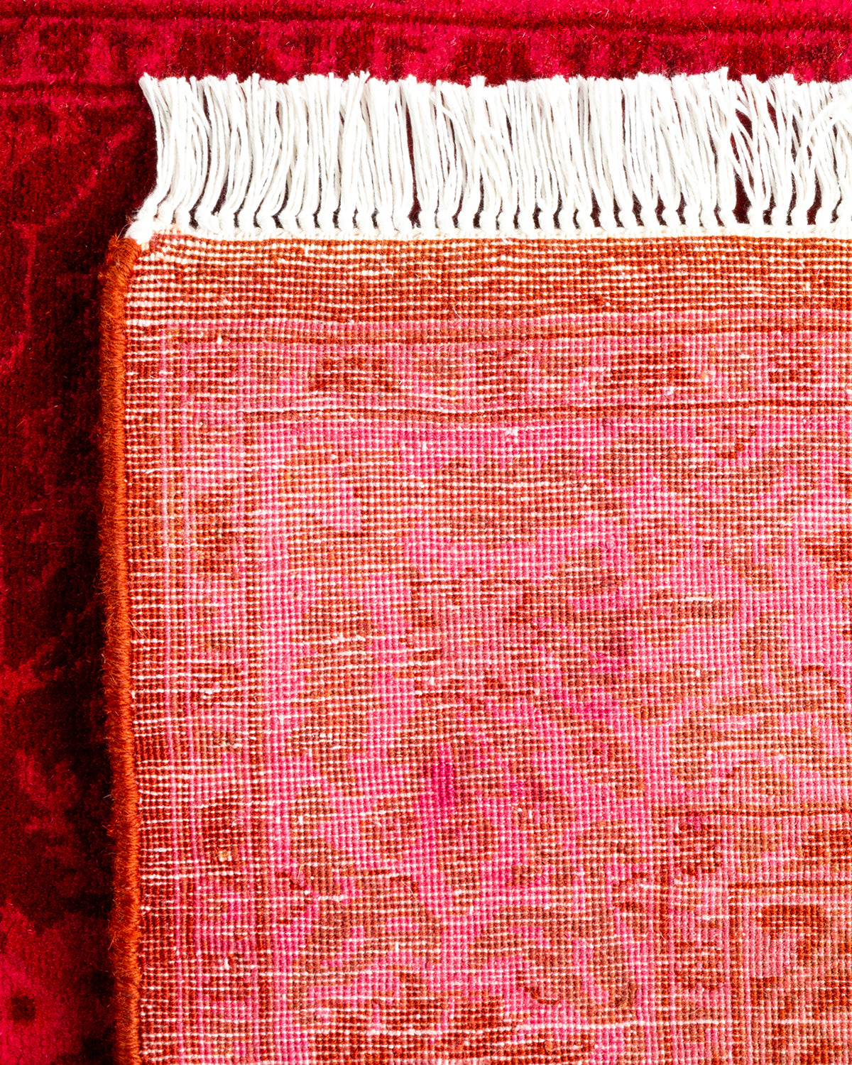 Contemporary Hand-Knotted Overdyed Red Runner 2' 7" x 9' 10"