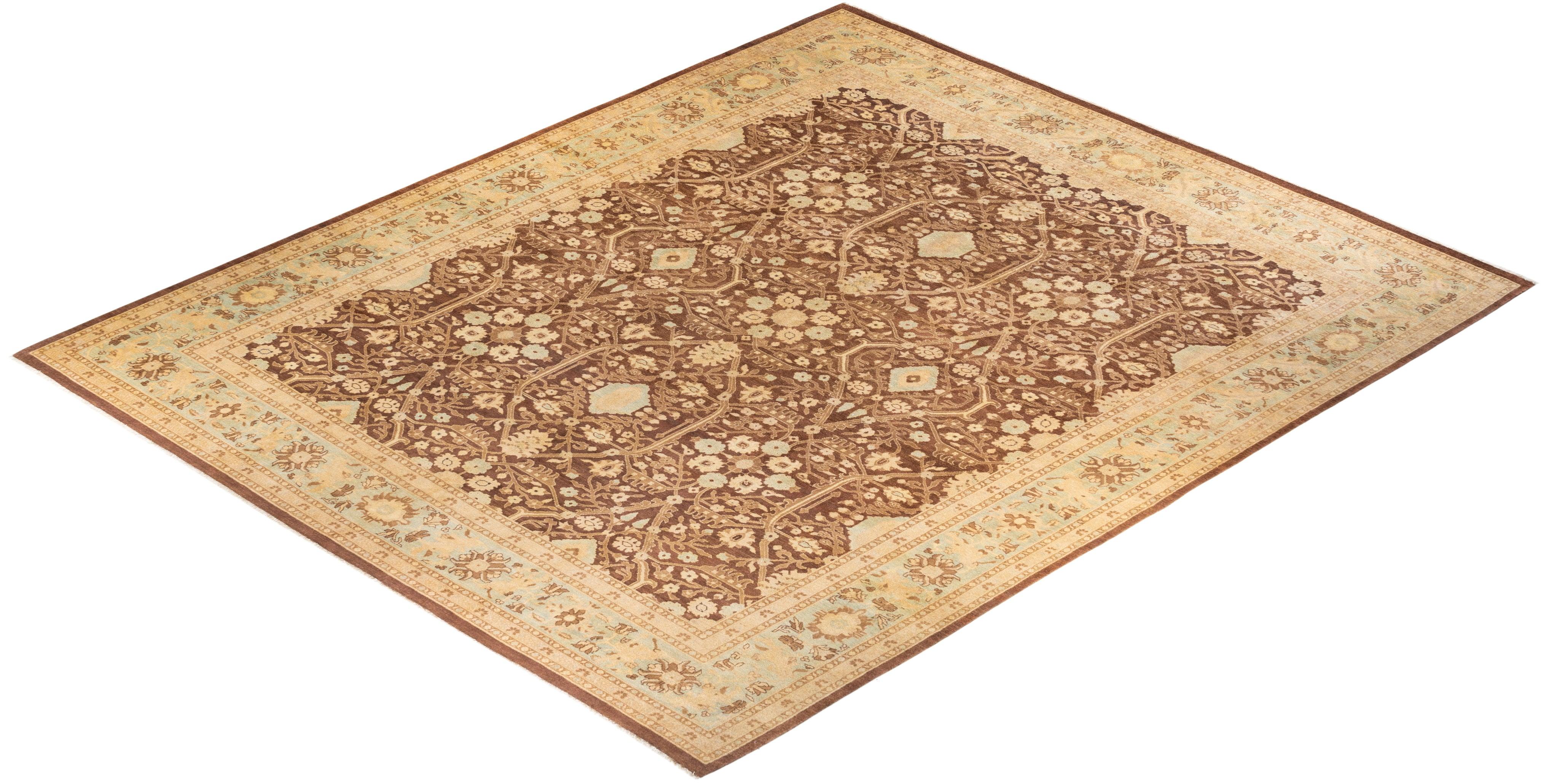 Contemporary Hand Knotted Eclectic Oriental Brown Area Rug 12' 3" x 14' 2"