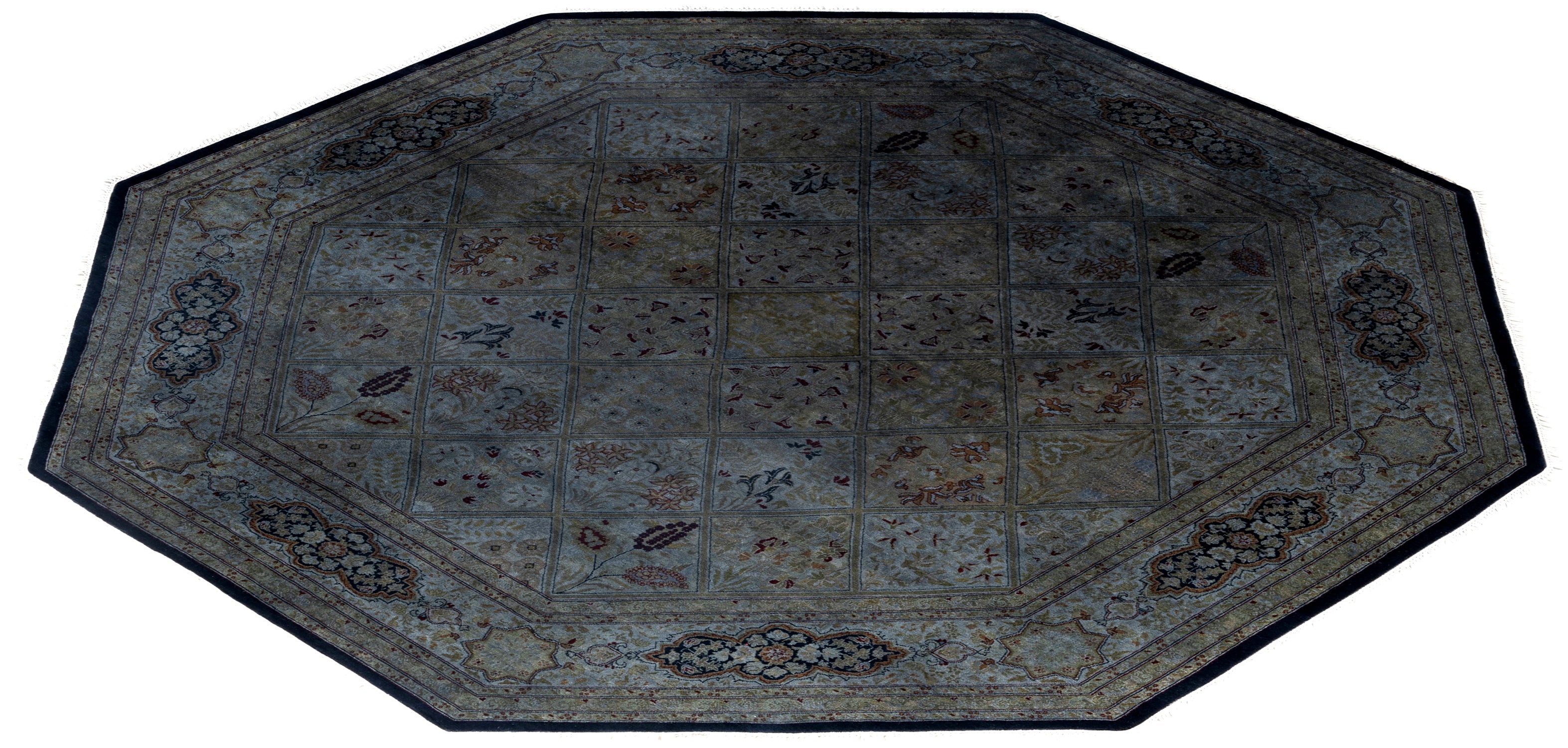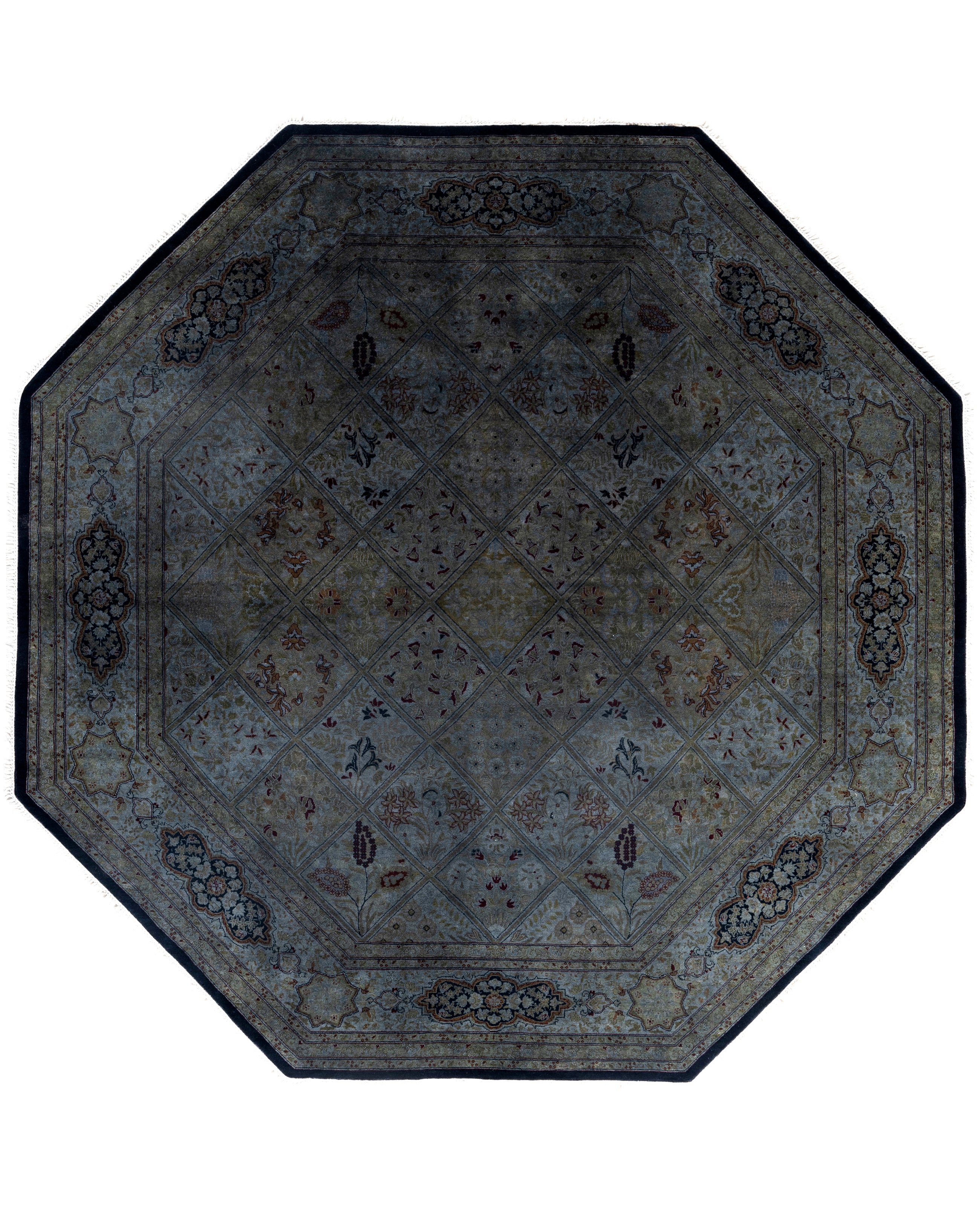 Overdyed One-of-a-Kind Wool Gray Octagon Area Rug 7' 1" x 7' 1"