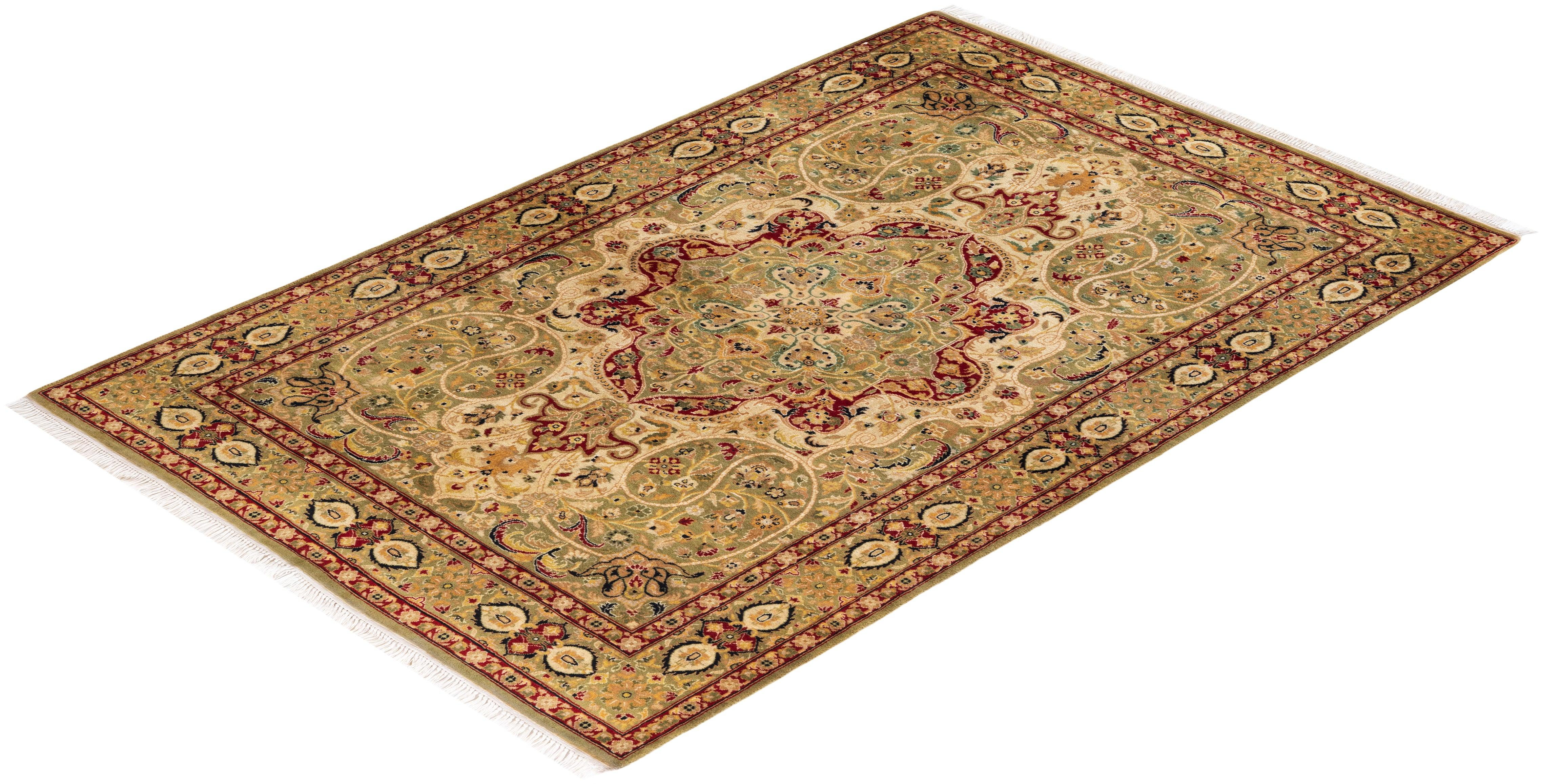 Traditional Hand Knotted Mogul Oriental Green Area Rug 4' 3" x 6' 3"