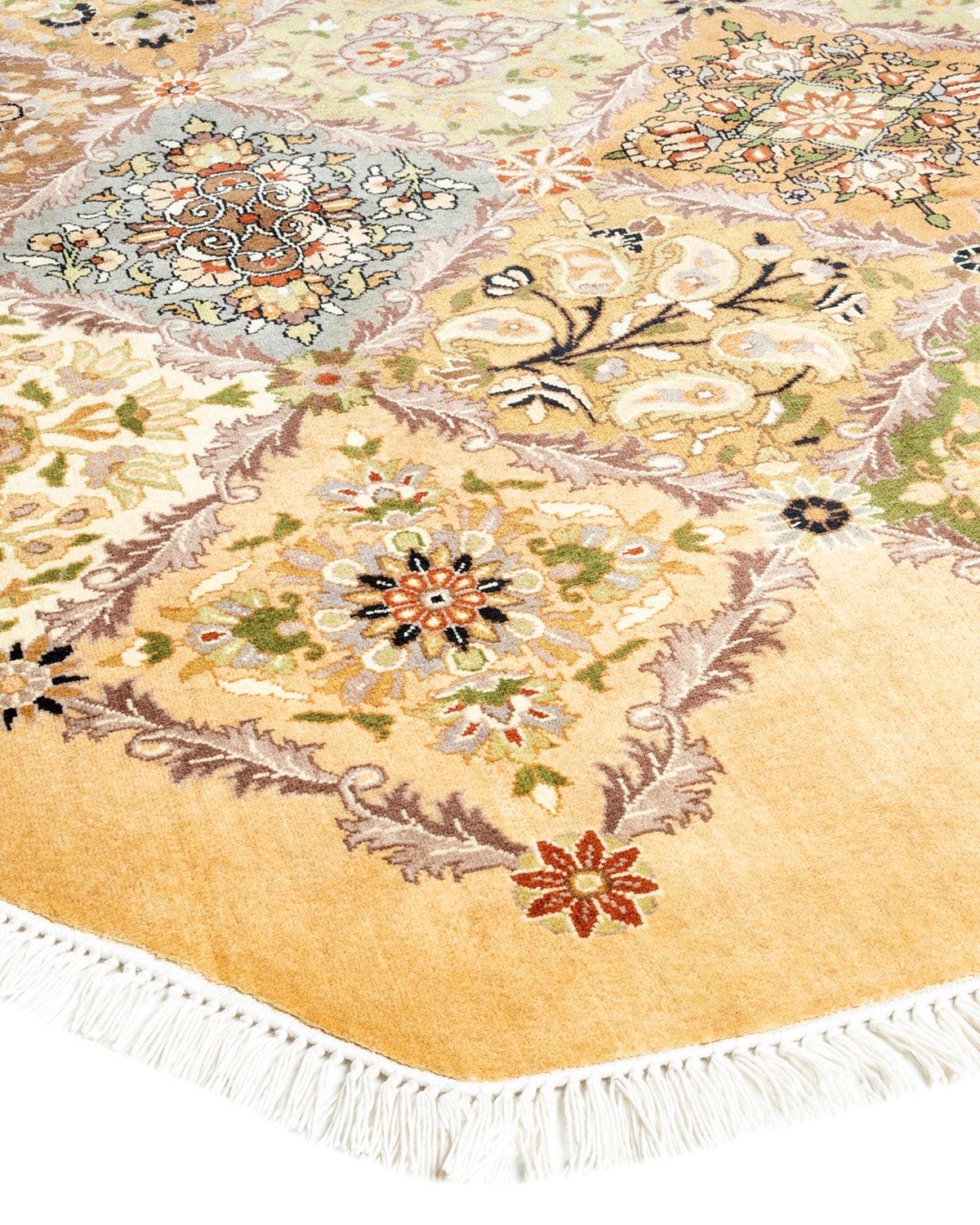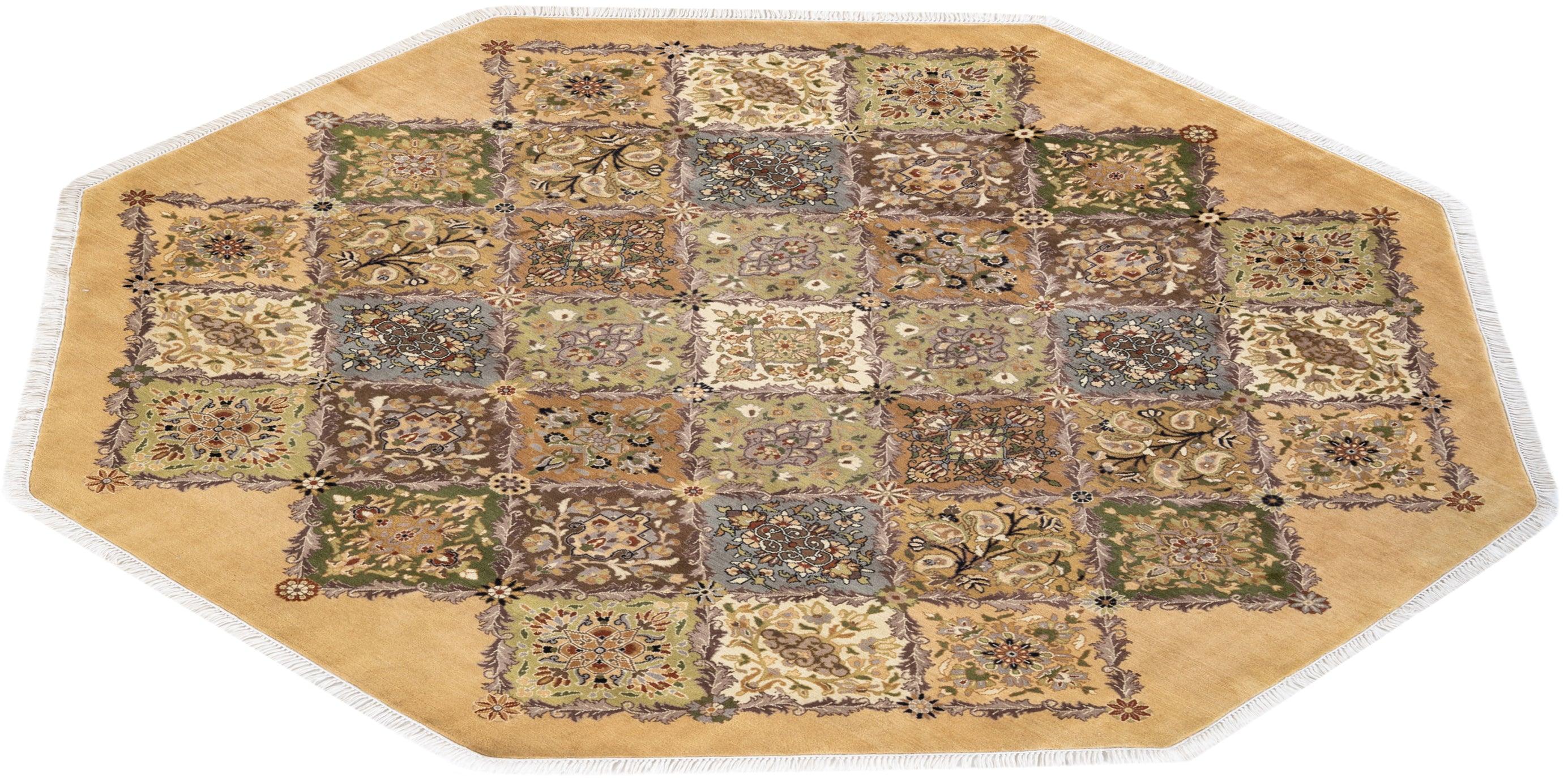 Traditional Hand Knotted Mogul Oriental Yellow Octagon Area rug 7' 1" x 7' 1"