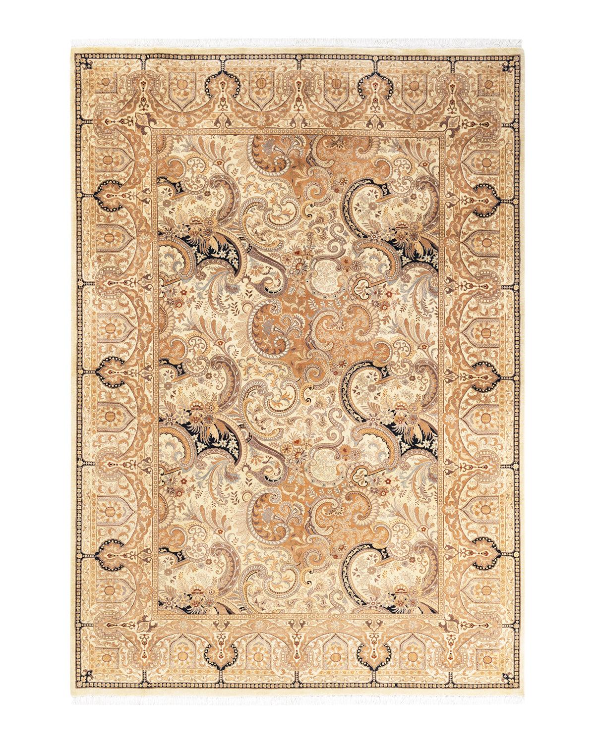 Traditional Hand Knotted Mogul Oriental Ivory Area Rug 6' 3" x 8' 10"