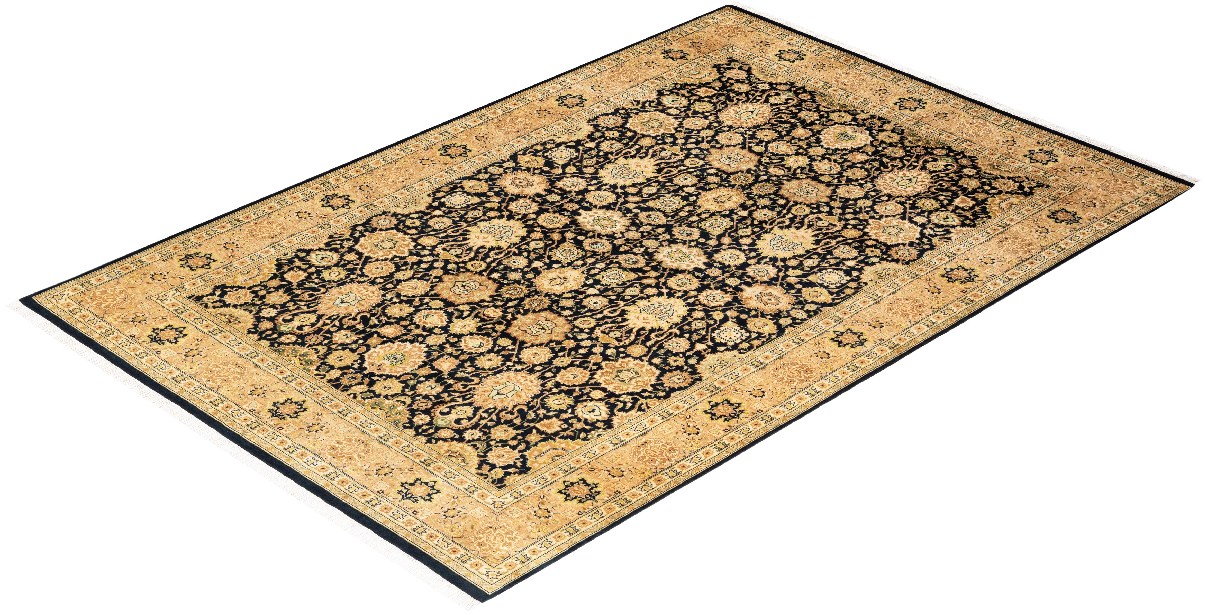 Traditional Hand Knotted Mogul Oriental Black Area Rug 6' 0" x 9' 3"