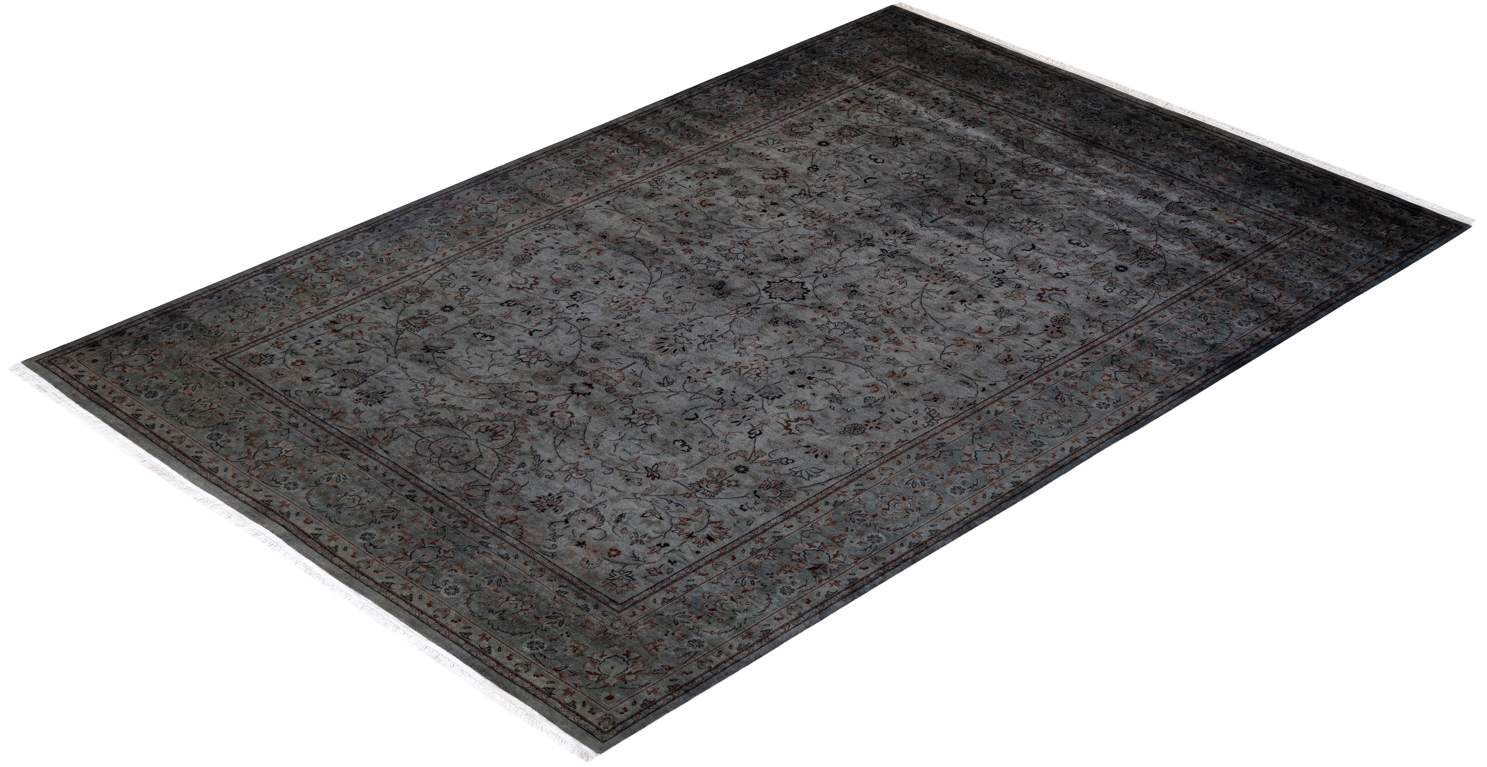 Contemporary Hand Knotted Overdyed Gray Area Rug 6' 3" x 9' 3"