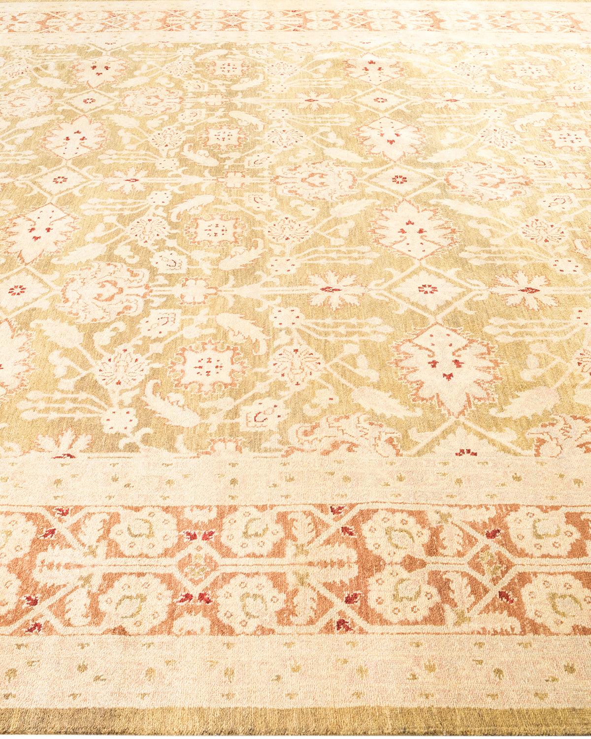 Contemporary Hand Knotted Eclectic Oriental Green Area Rug 8' 1" x 10' 7"