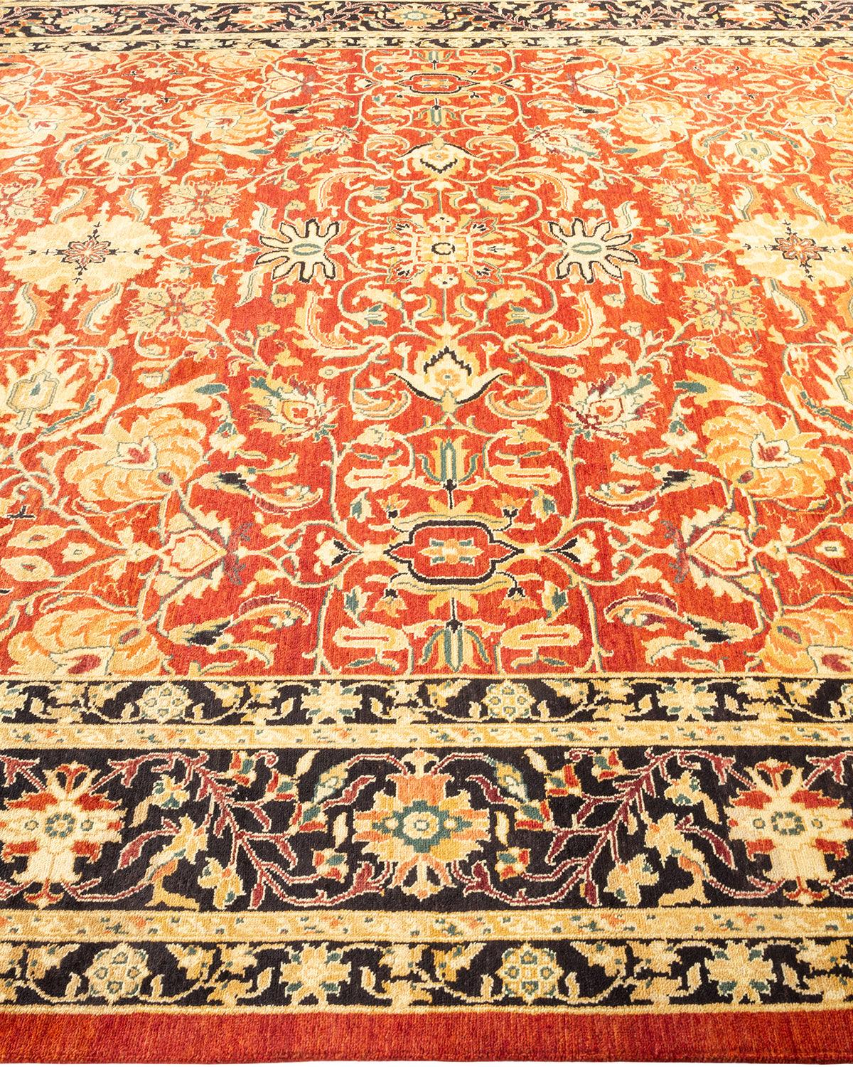 Contemporary Hand Knotted Eclectic Oriental Orange Area Rug 8' 0" x 10' 7"