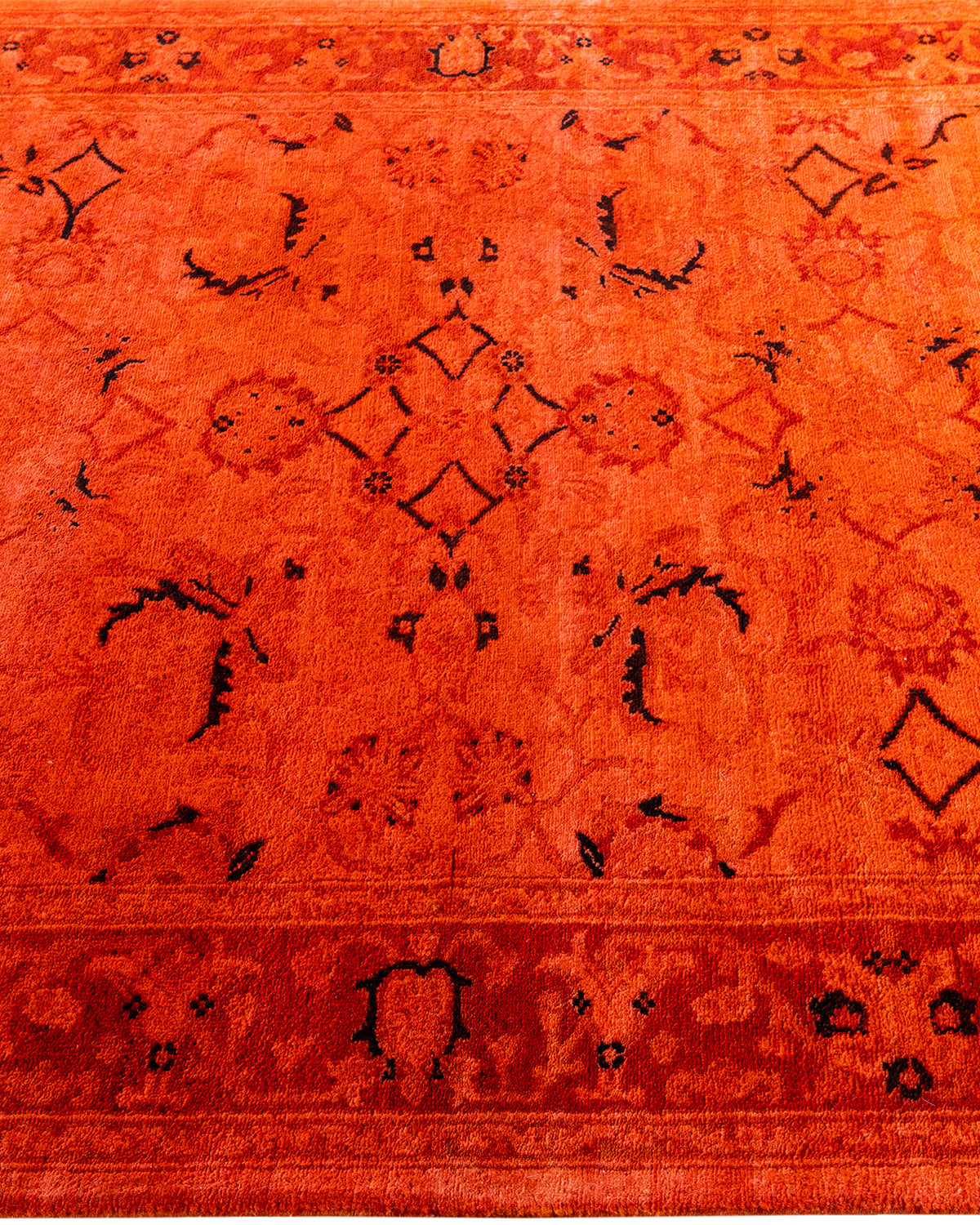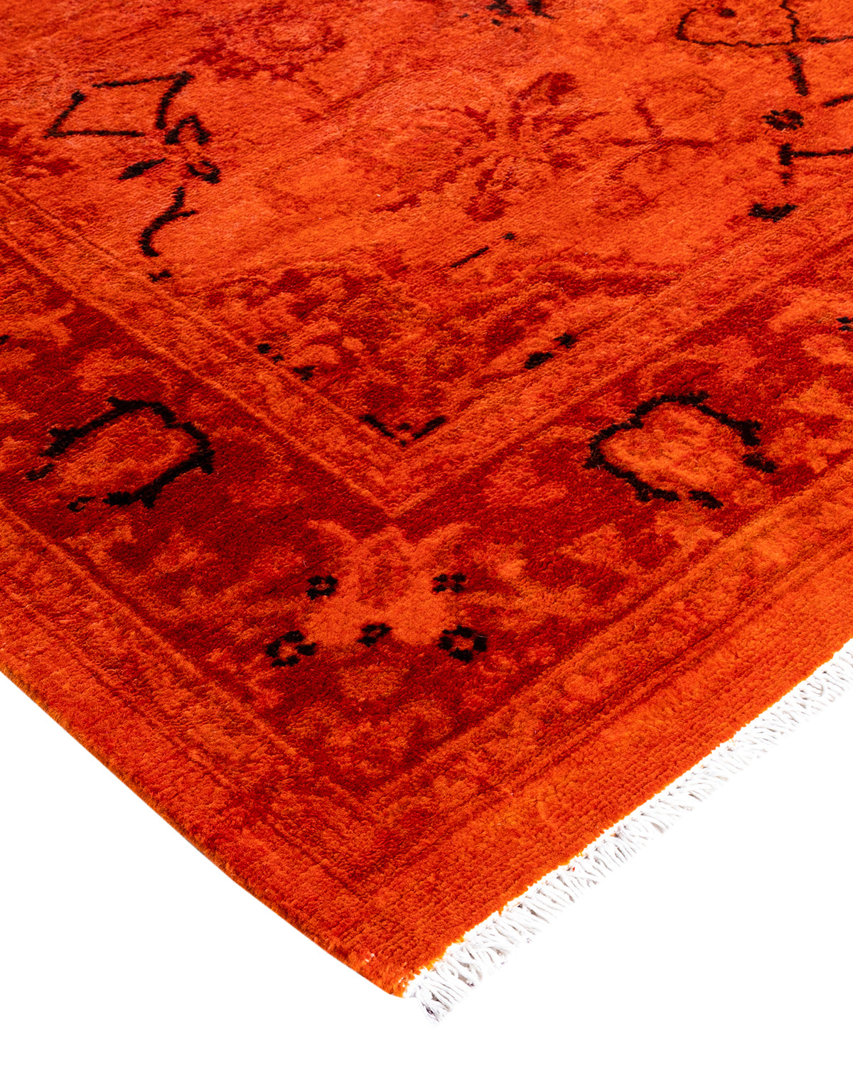 Contemporary Hand-Knotted Overdyed Orange Area Rug 4' 3" x 5' 10"