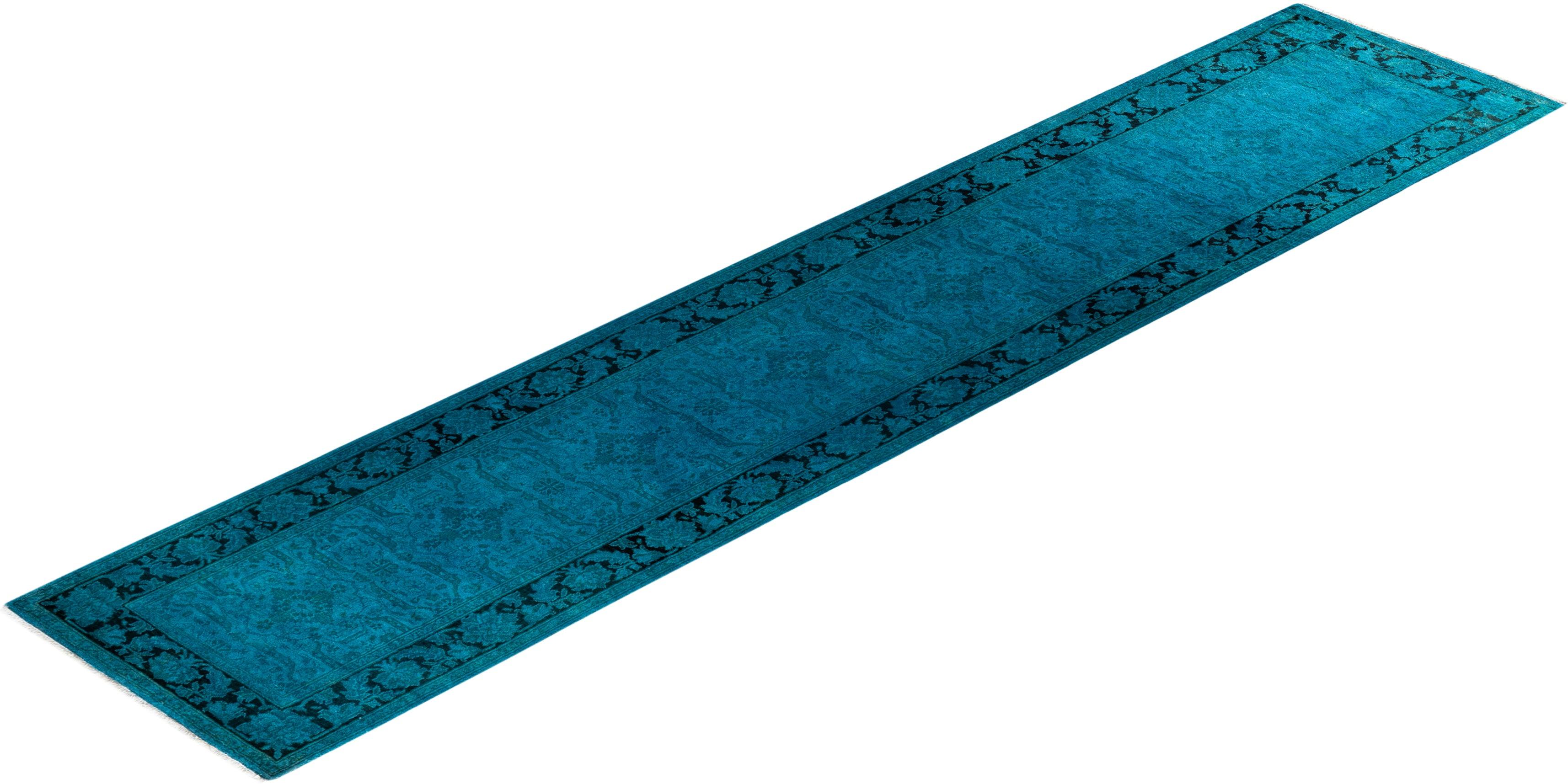 Contemporary Hand-Knotted Blue Runner 2' 5" x 12' 3"