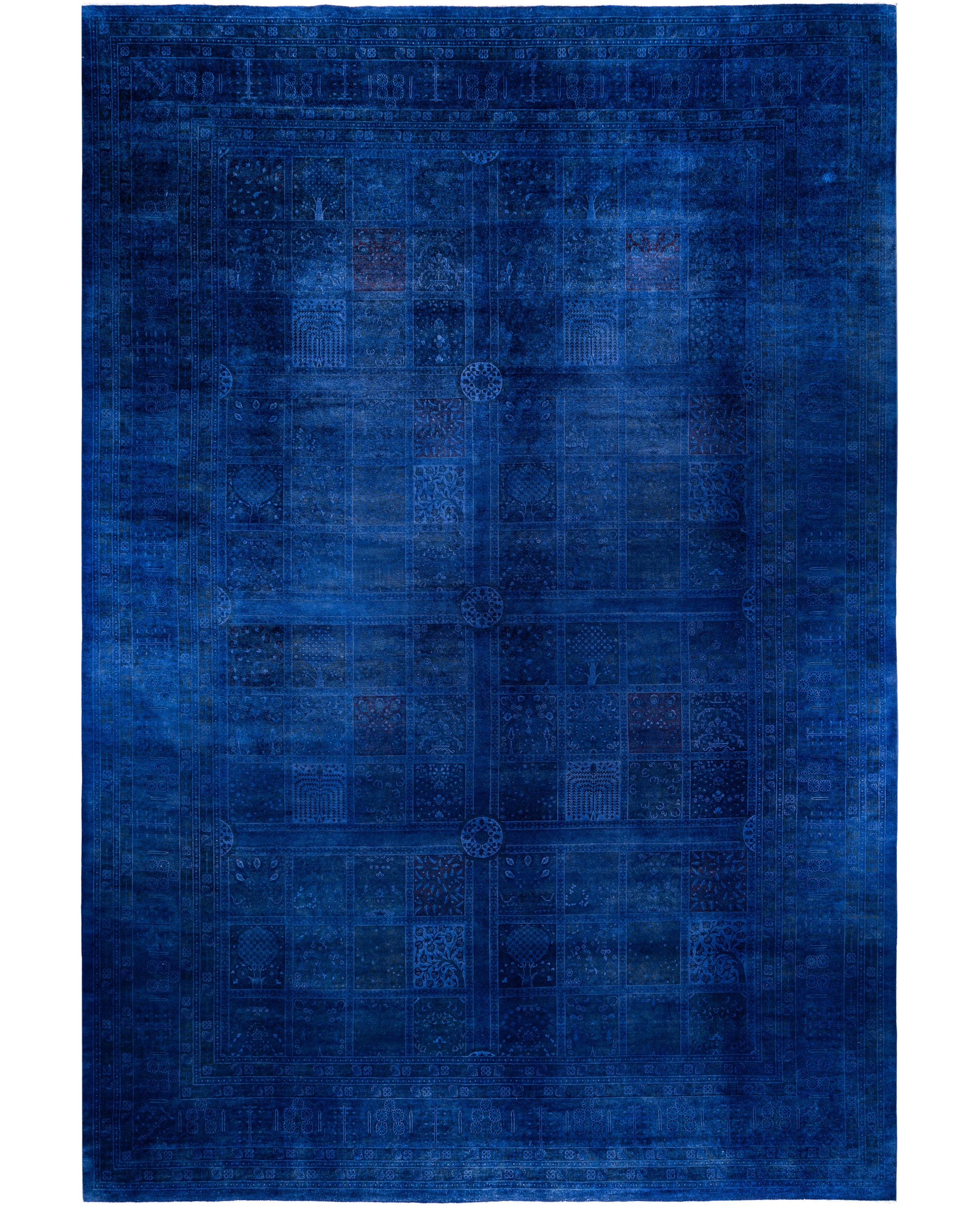 Overdyed One-of-a-Kind Wool Blue Area Rug 12' 4" x 18' 0"