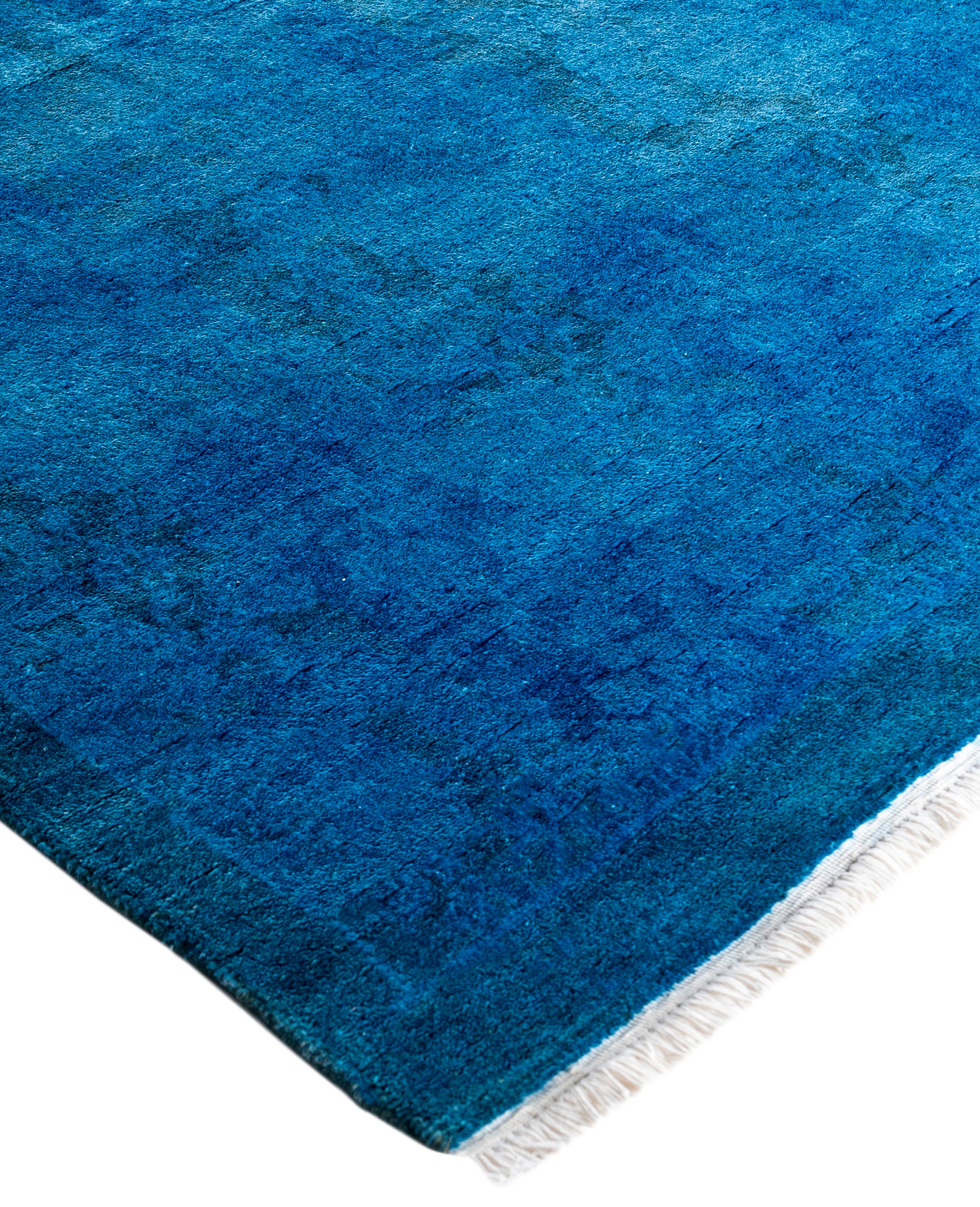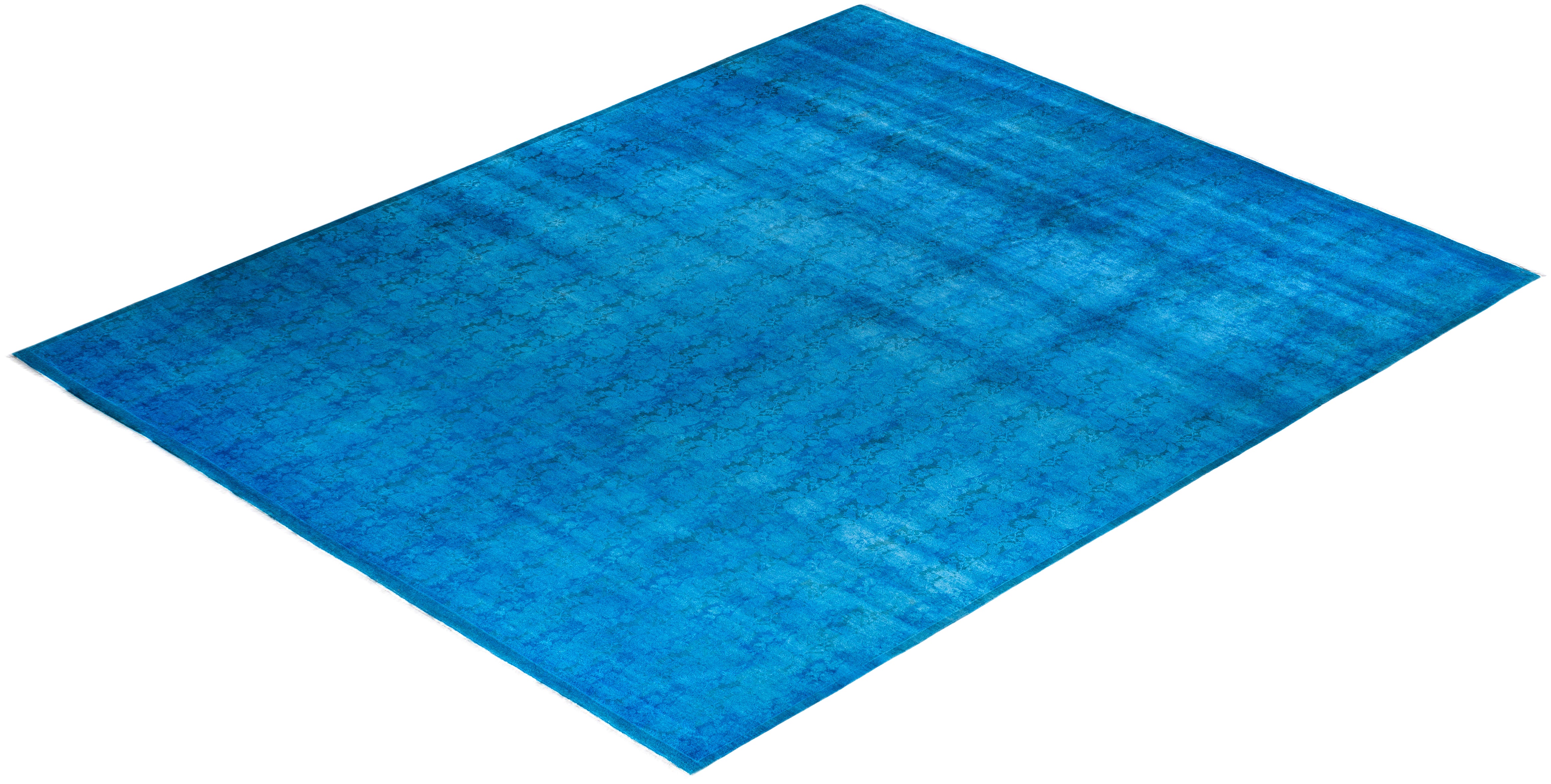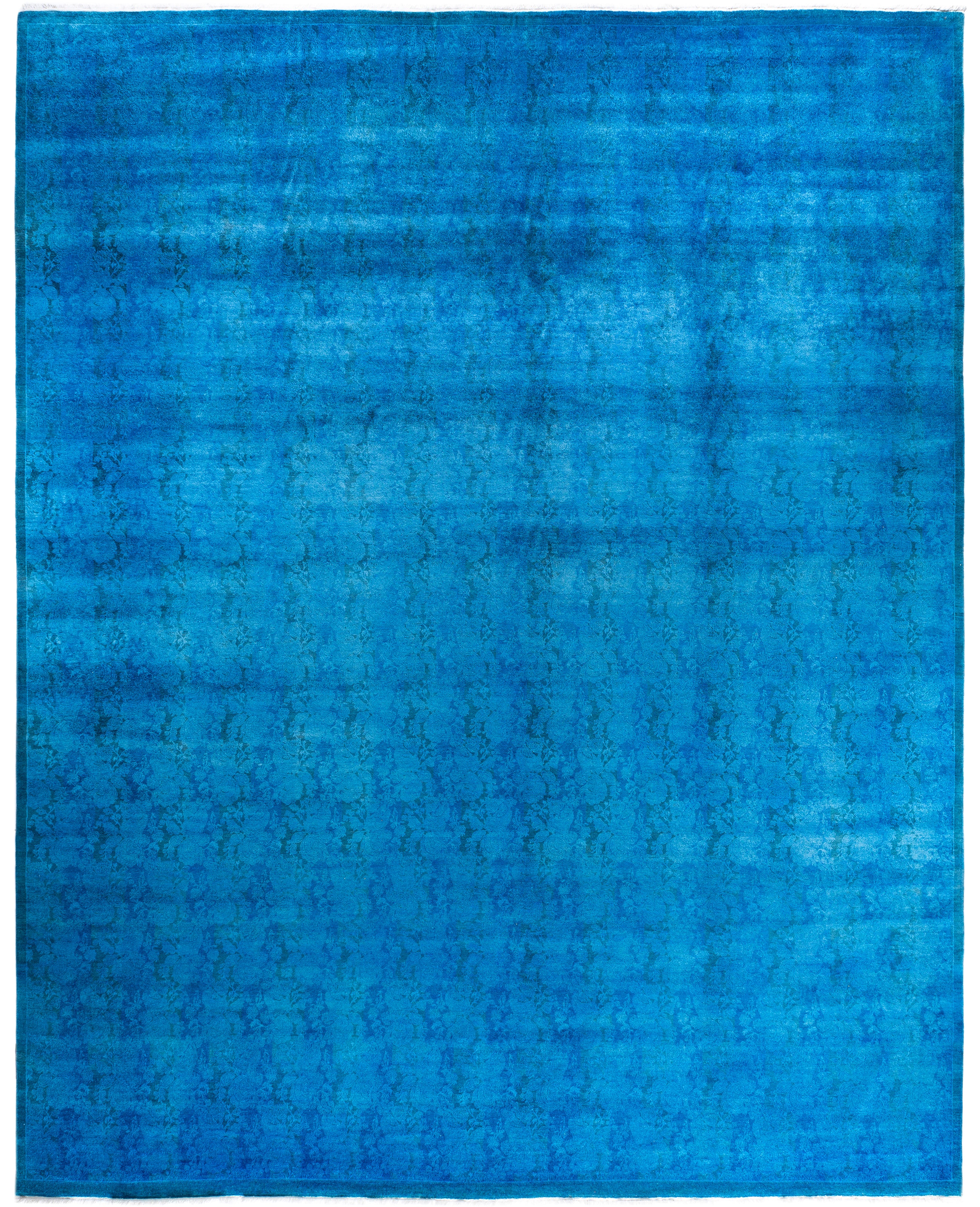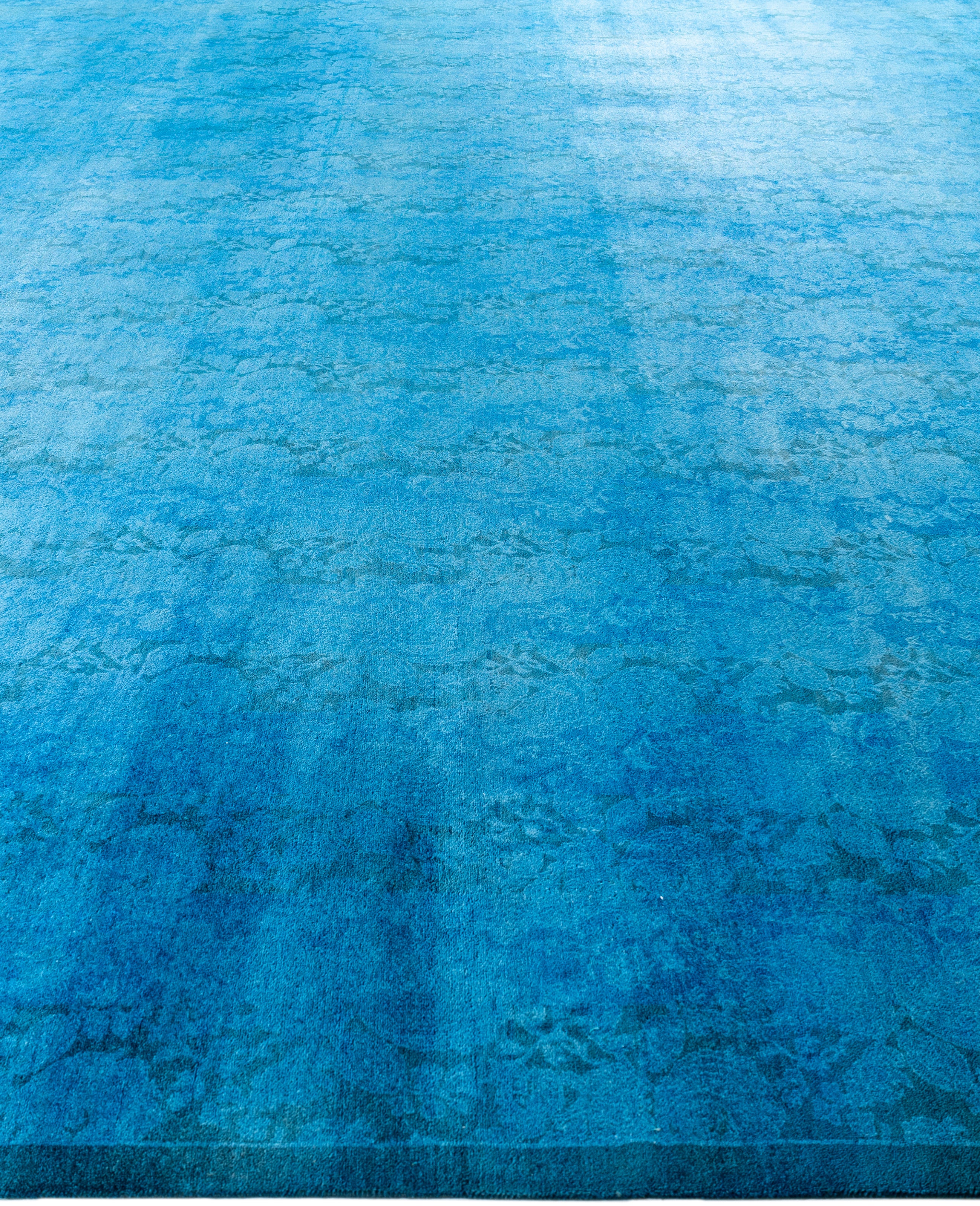 Overdyed One-of-a-Kind Wool Blue Area Rug 12' 4" x 15' 0"