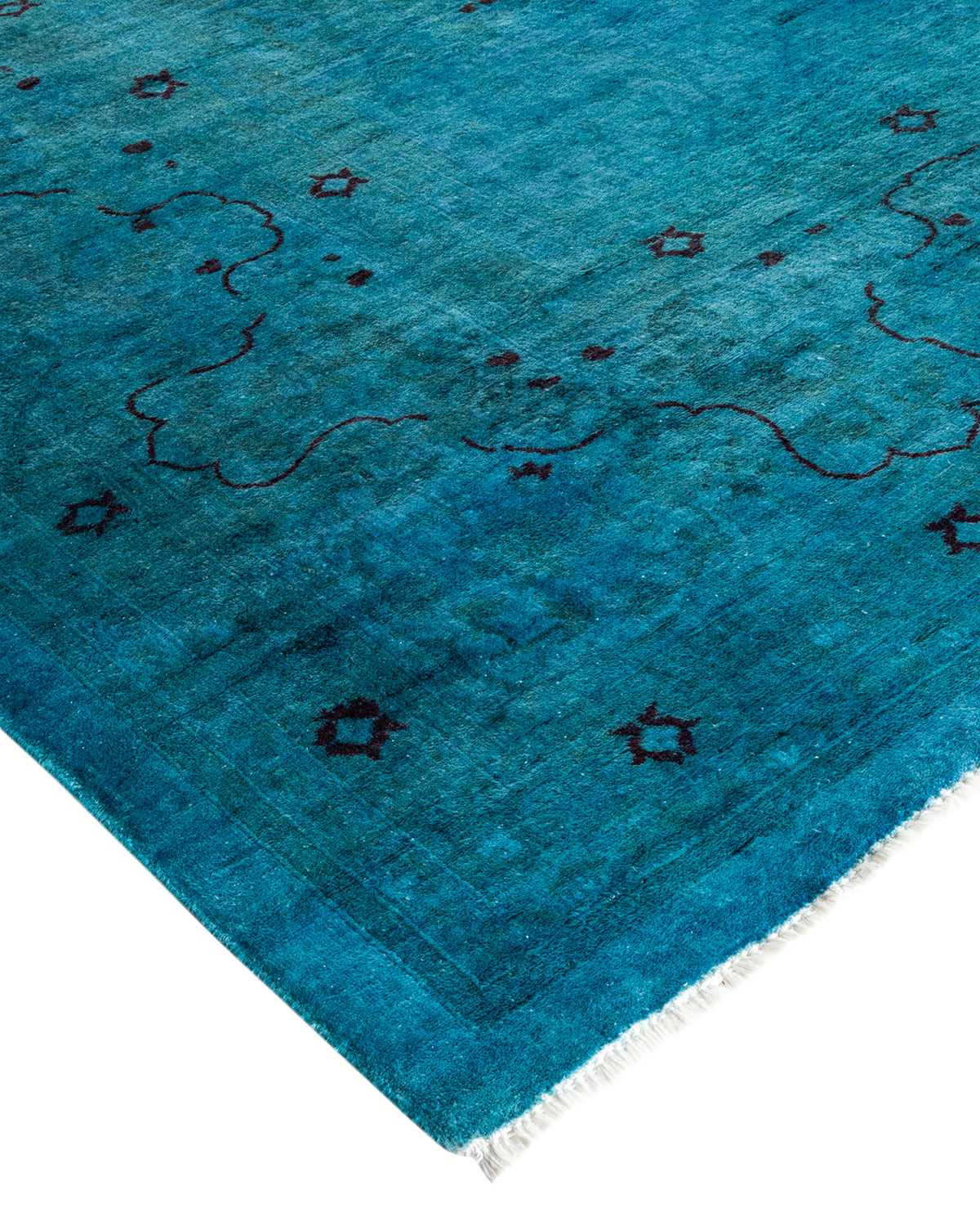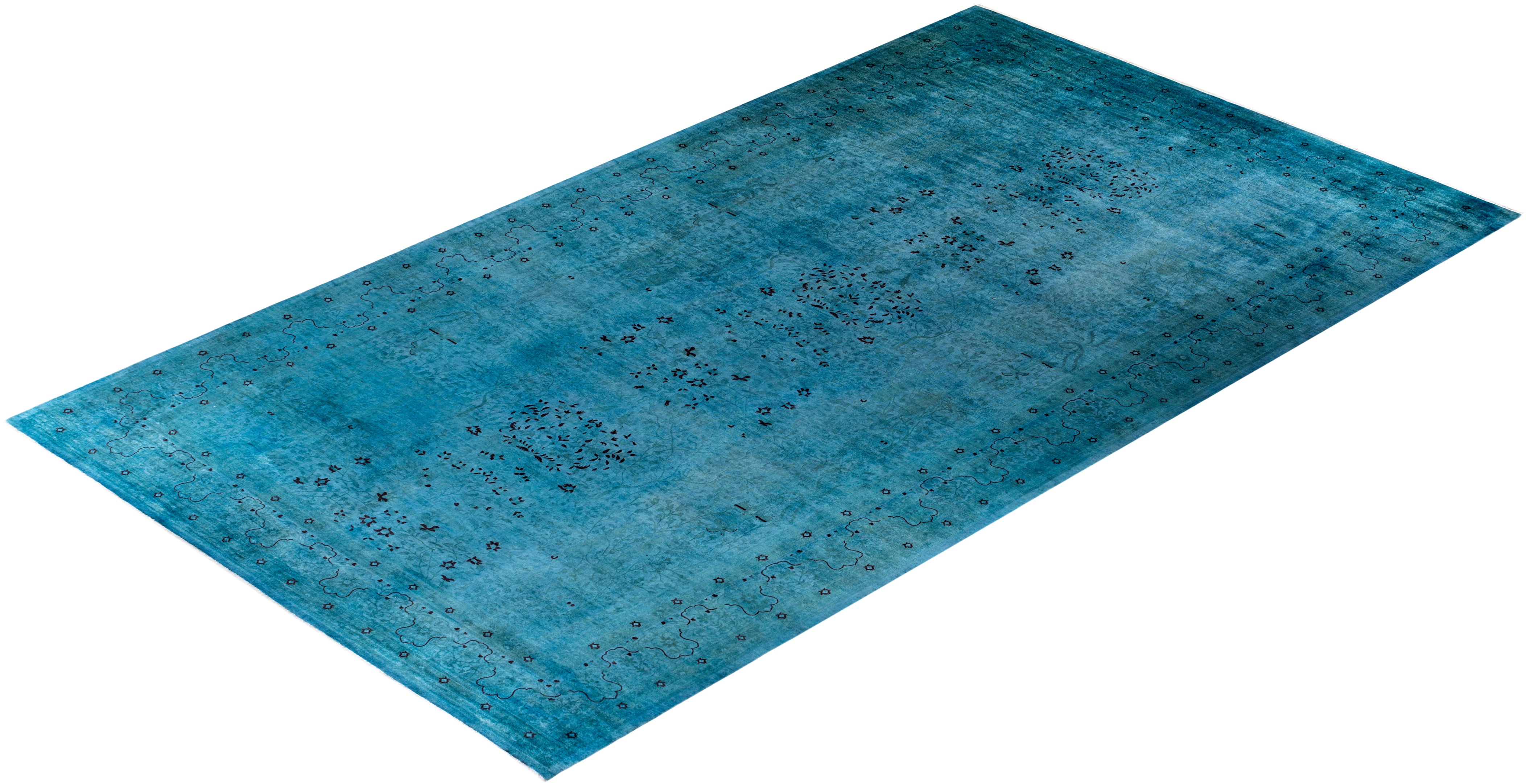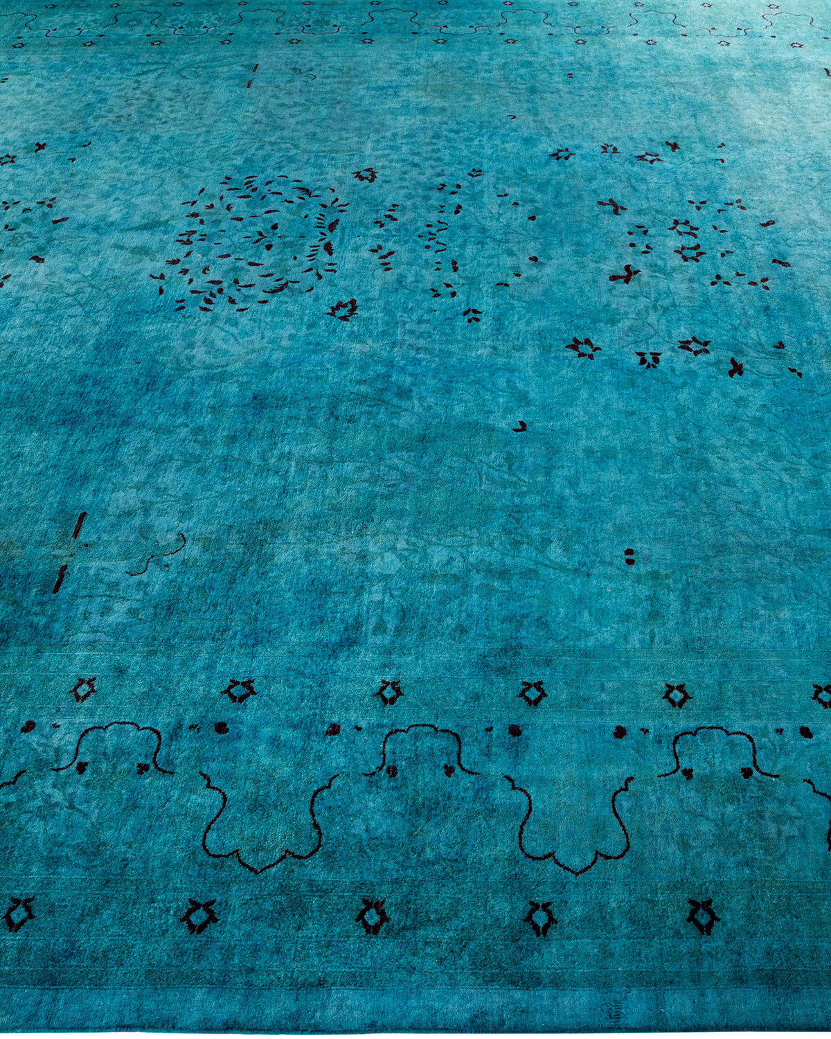 Contemporary Hand-Knotted Overdyed Blue Area Rug 10' 1" x 17' 10"