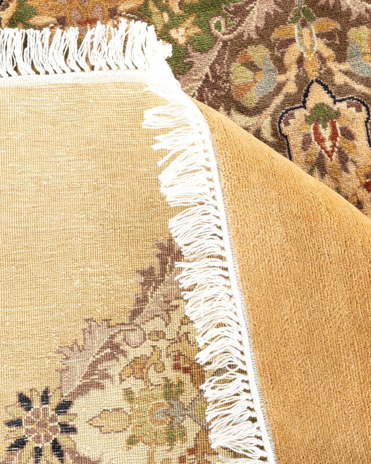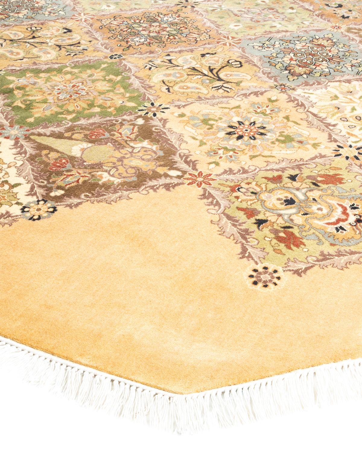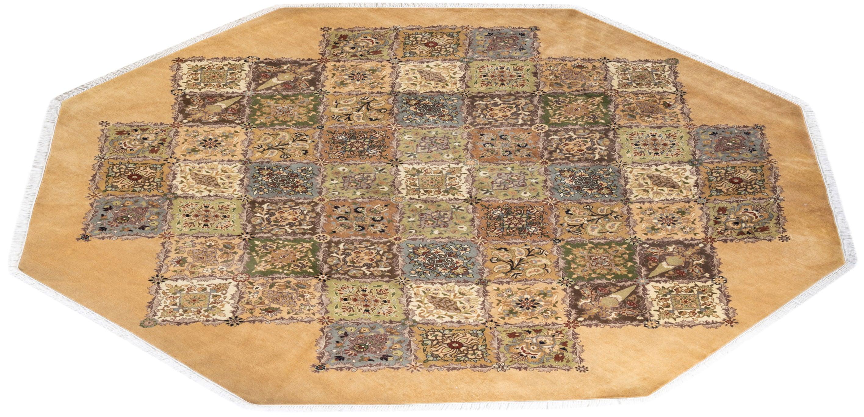Traditional Hand Knotted Mogul Oriental Yellow Round Area Rug 9' 1" x 9' 1"