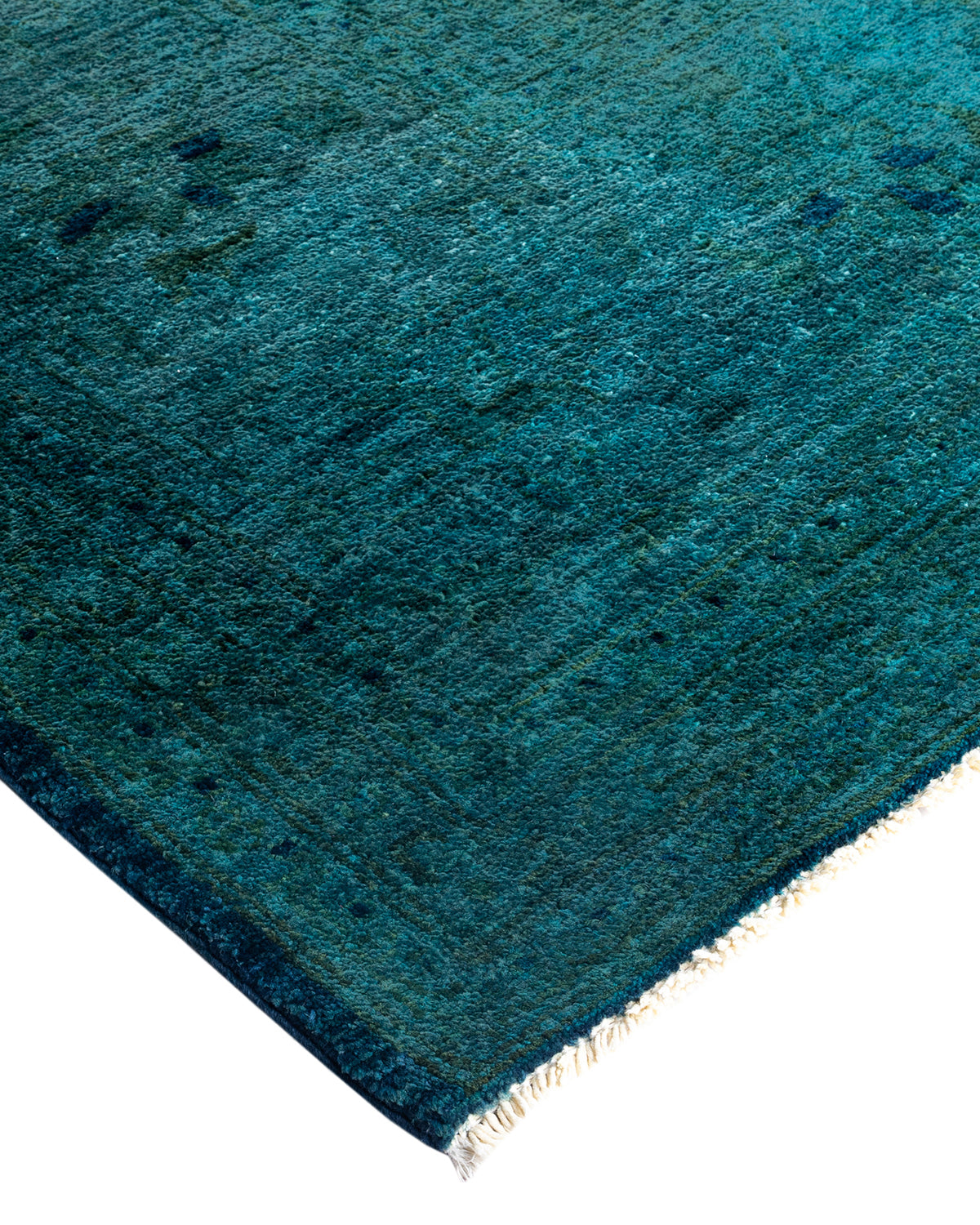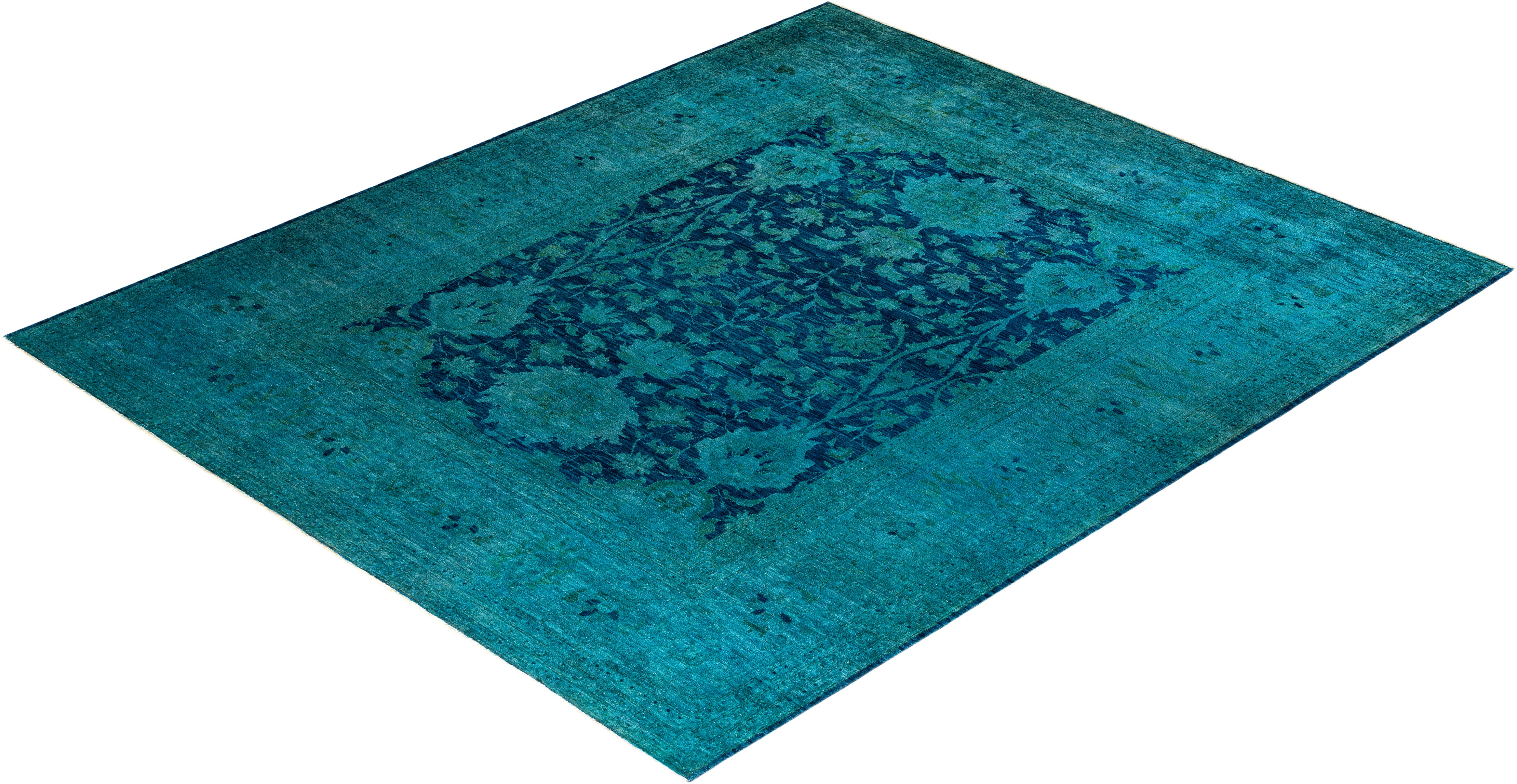 Contemporary Hand-Knotted Overdyed Blue Area Rug 8' 1" x 9' 10"