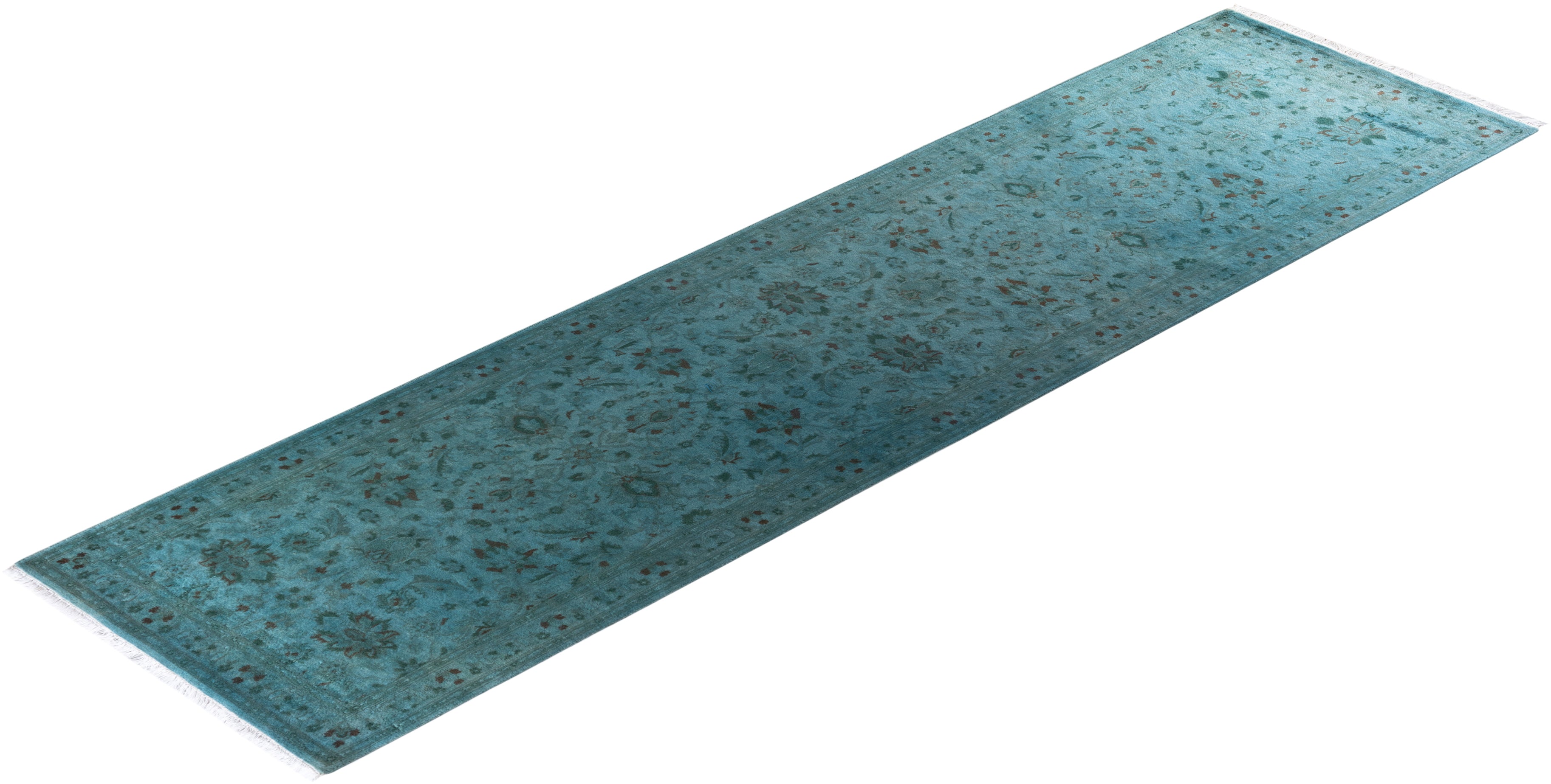 Contemporary Hand Knotted Overdyed Blue Runner 2' 8" x 10' 3"