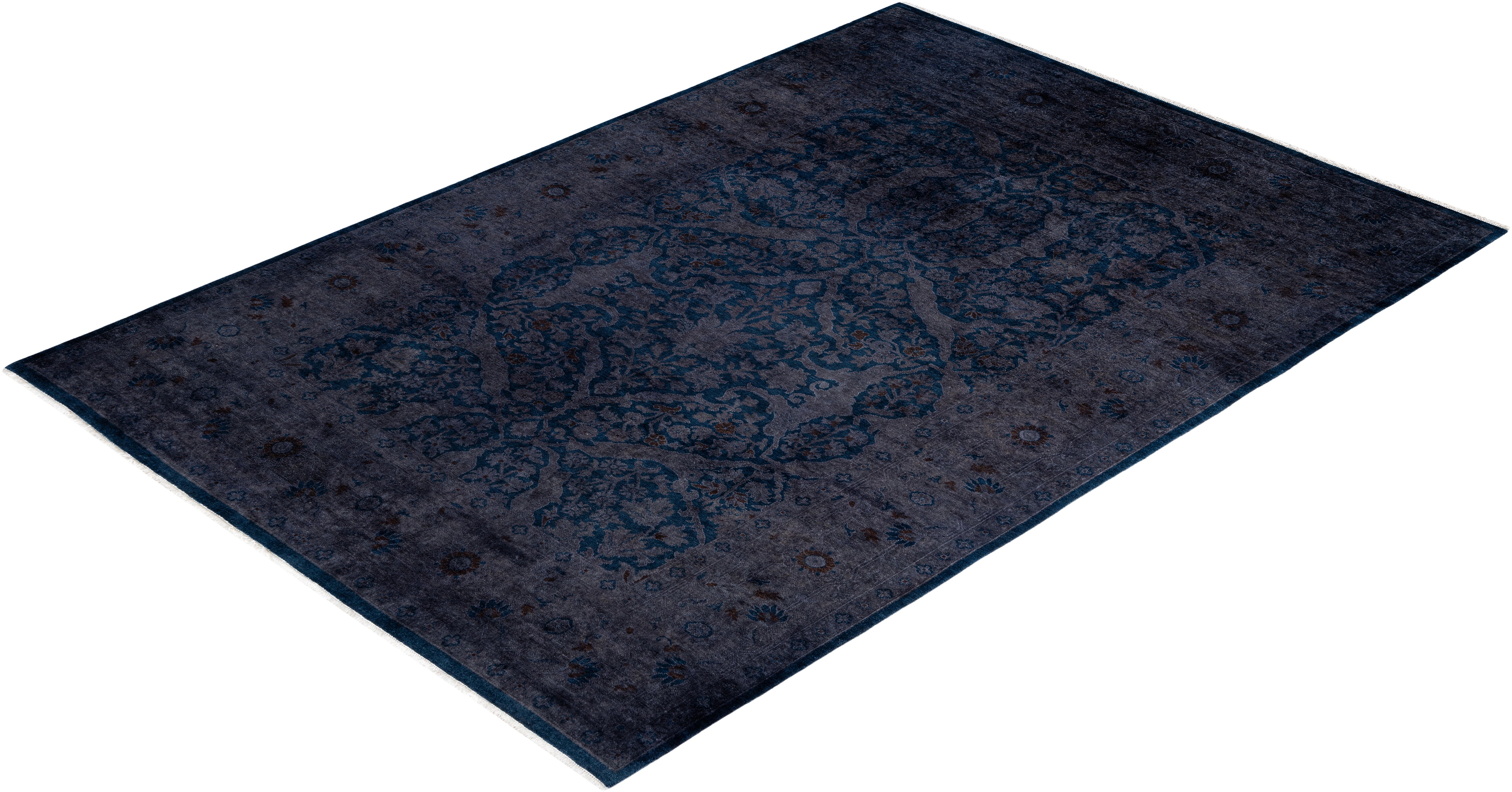 Contemporary Overdyed Wool Hand Knotted Navy Area Rug 6' 1" x 8' 9"