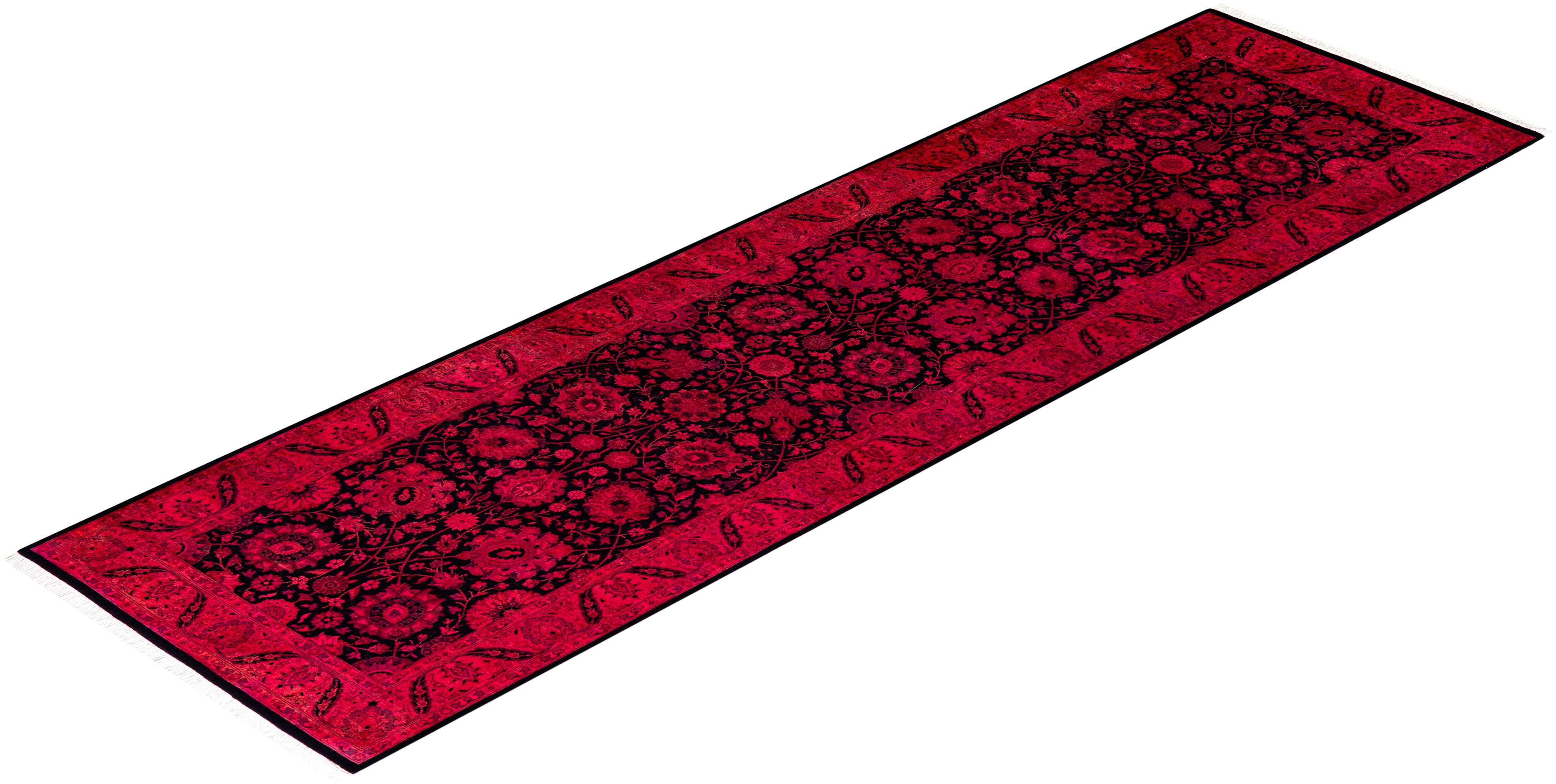 Contemporary Hand Knotted Overdyed Red Runner 3' 1" x 10' 9"