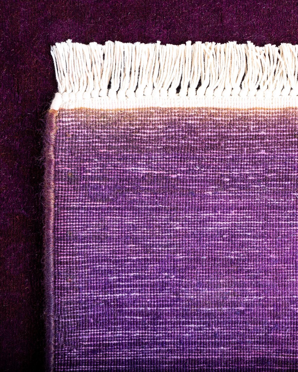 Contemporary Hand-Knotted Purple Runner 2' 7" x 24' 1"