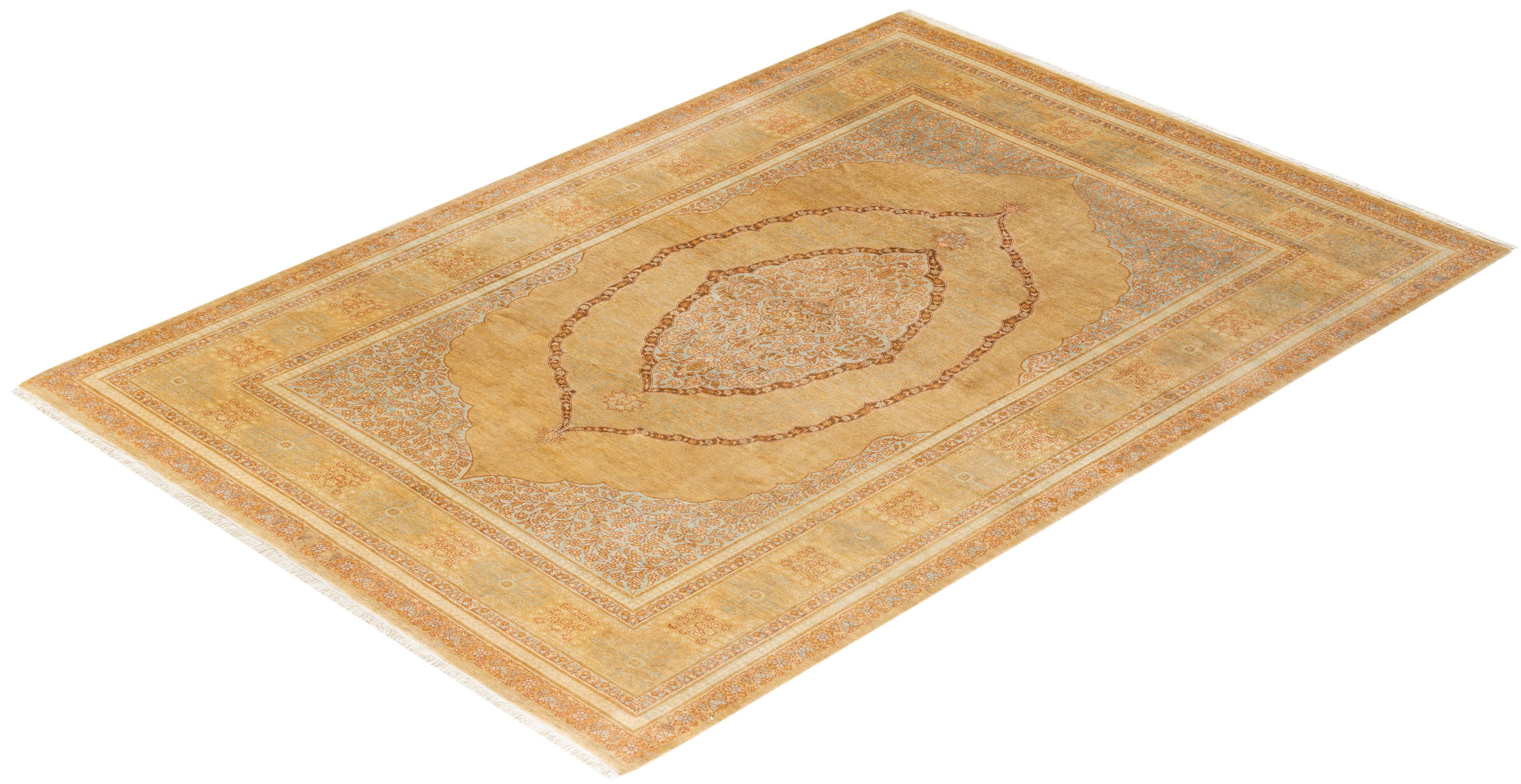 Traditional Hand Knotted Mogul Oriental Yellow Area Rug 6' 3" x 8' 10"