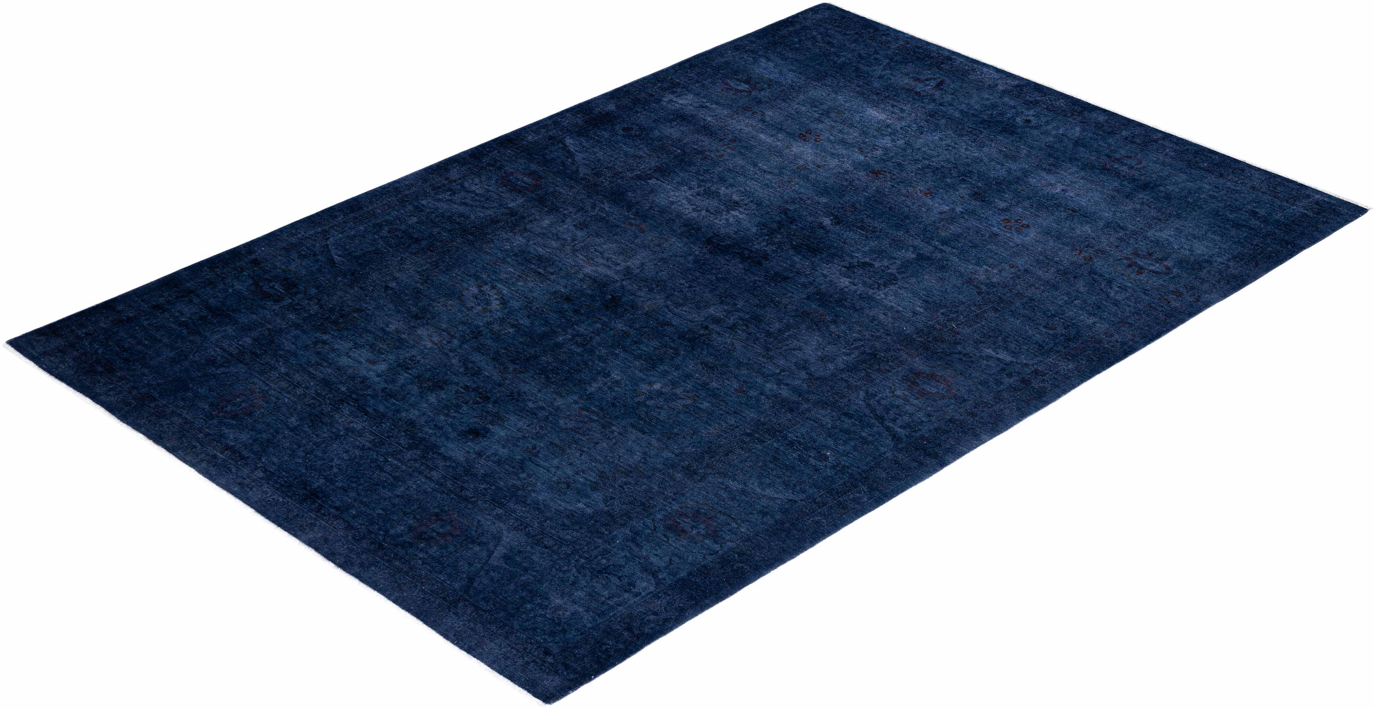 Contemporary Hand-Knotted Overdyed Blue Area Rug 6' 0" x 9' 0"