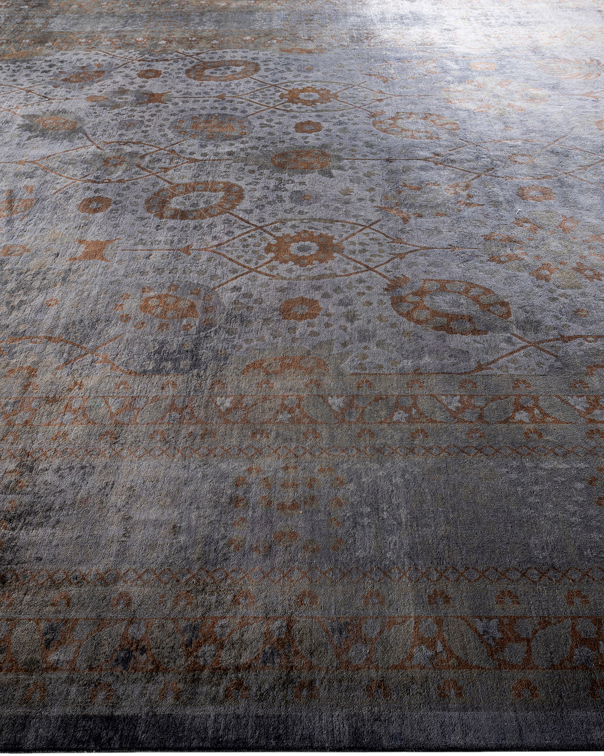 Contemporary Hand-Knotted Overdyed Gray Area Rug 10' 4" x 13' 9"