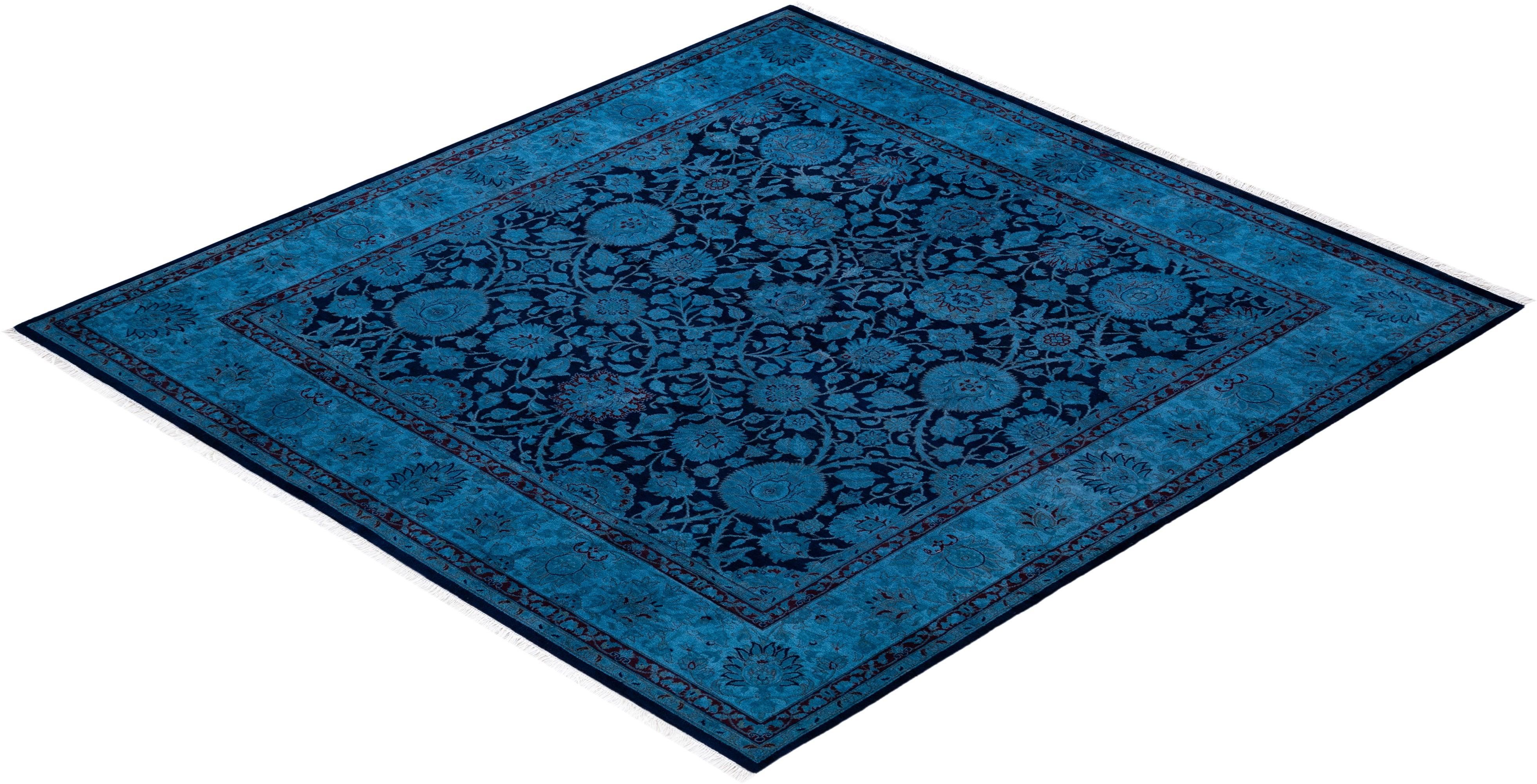 Contemporary Hand-Knotted Navy Square Area Rug 6' 1" x 6' 3"