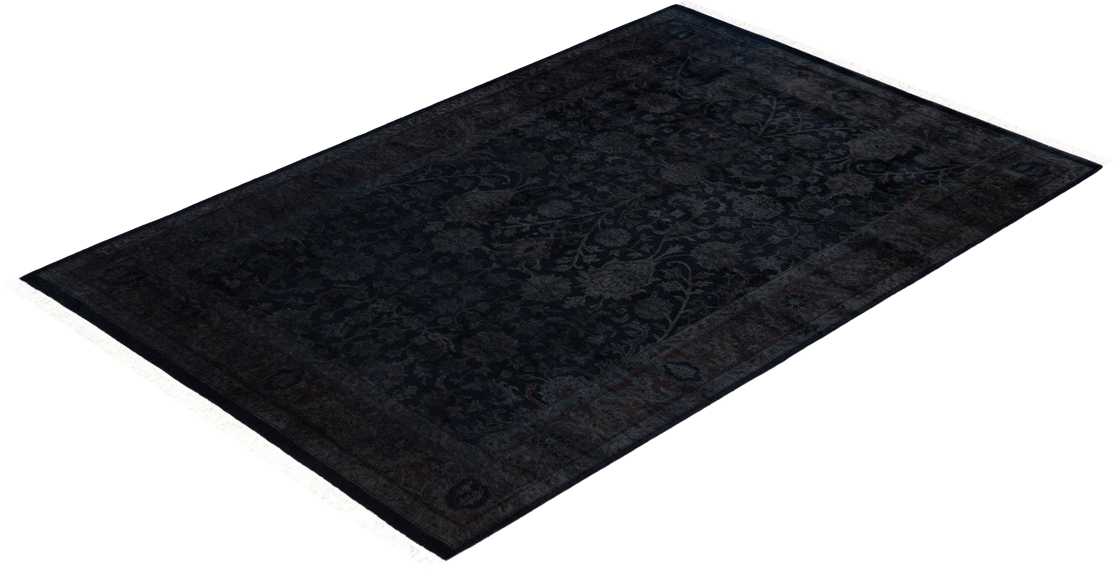 Contemporary Overdyed Wool Hand Knotted Black Area Rug 4' 2" x 6' 4"