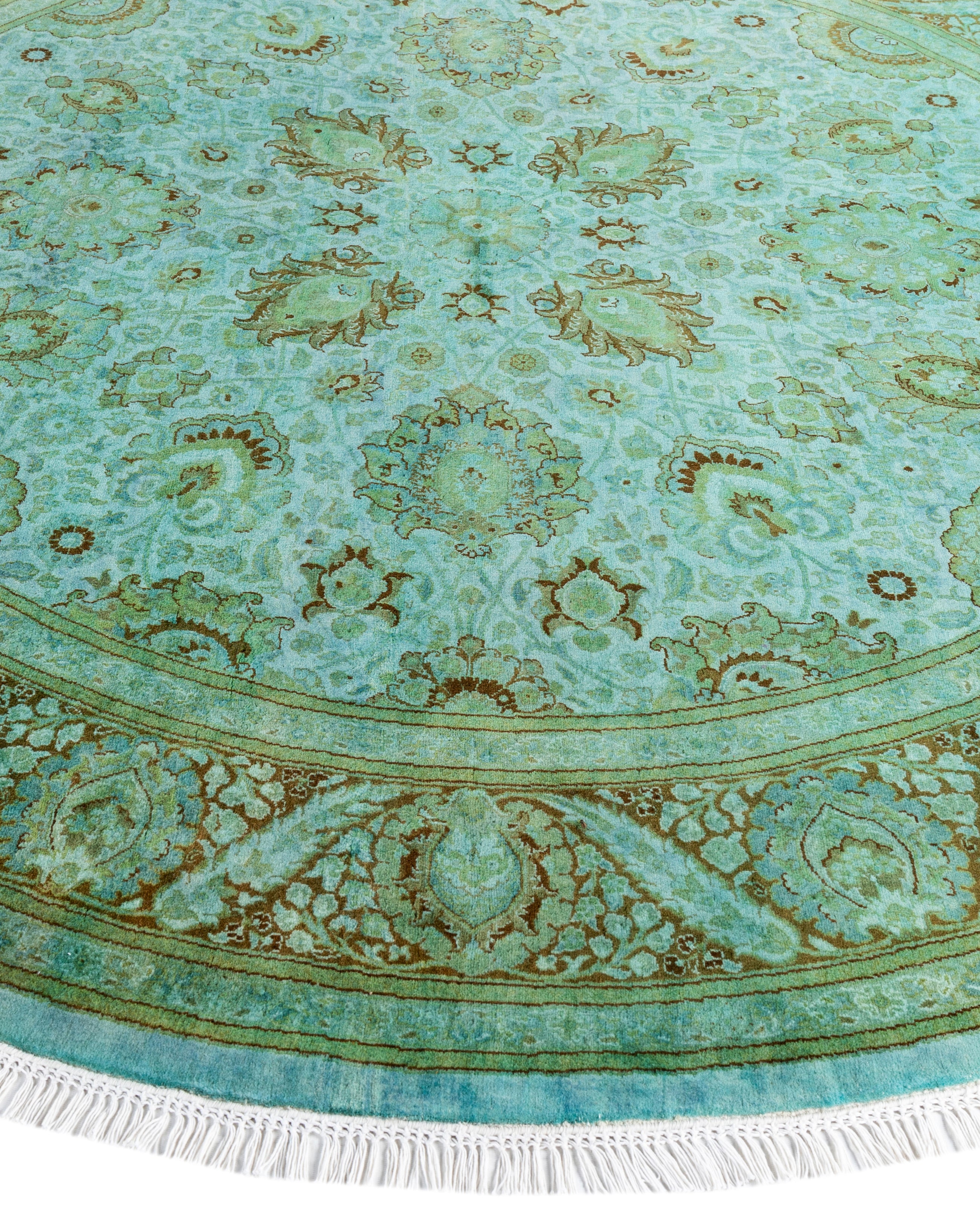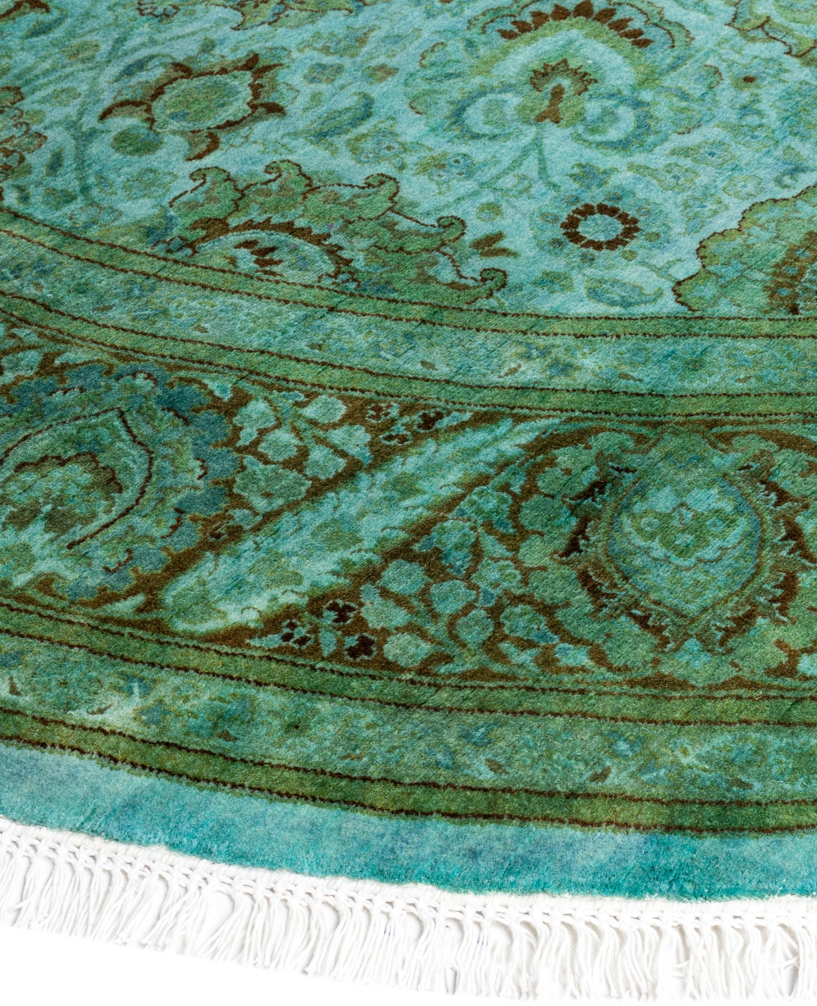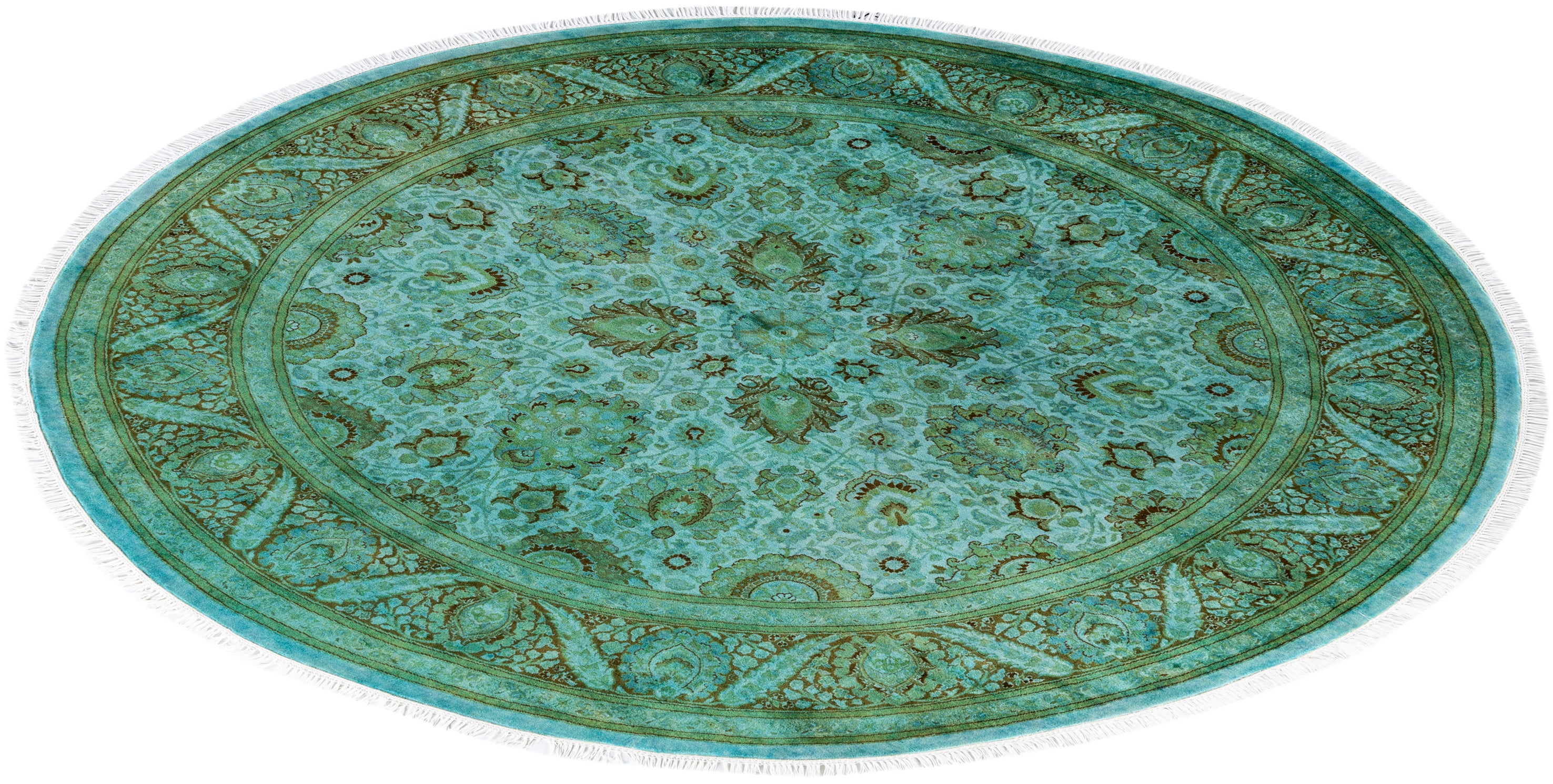 Contemporary Overdyed Wool Hand Knotted Green Round Area Rug 7' 1" x 7' 1"