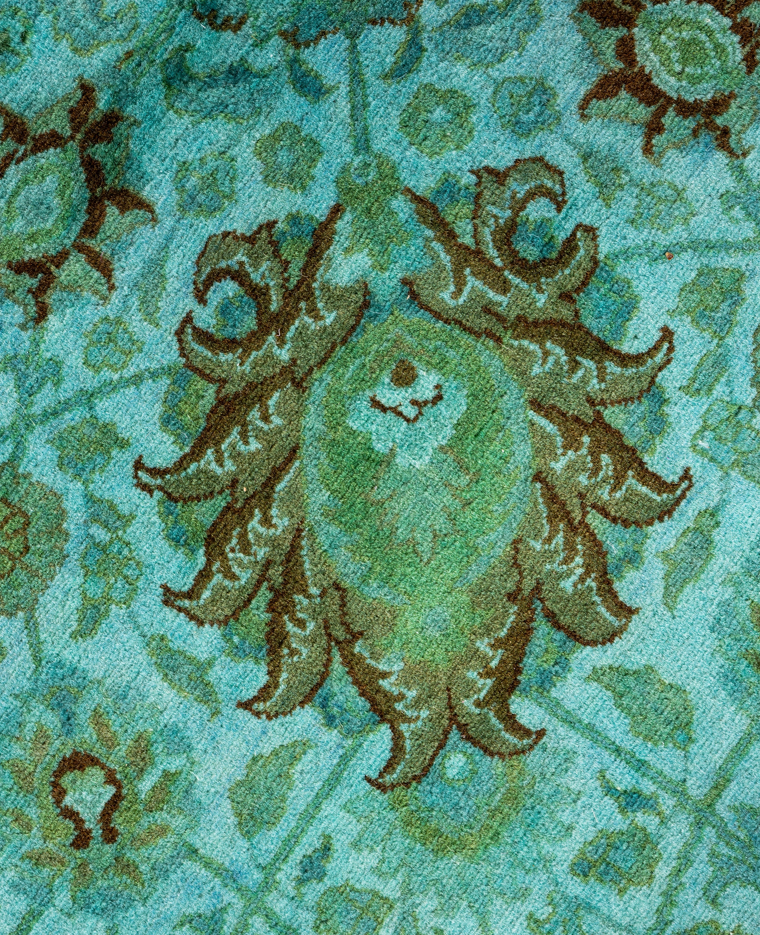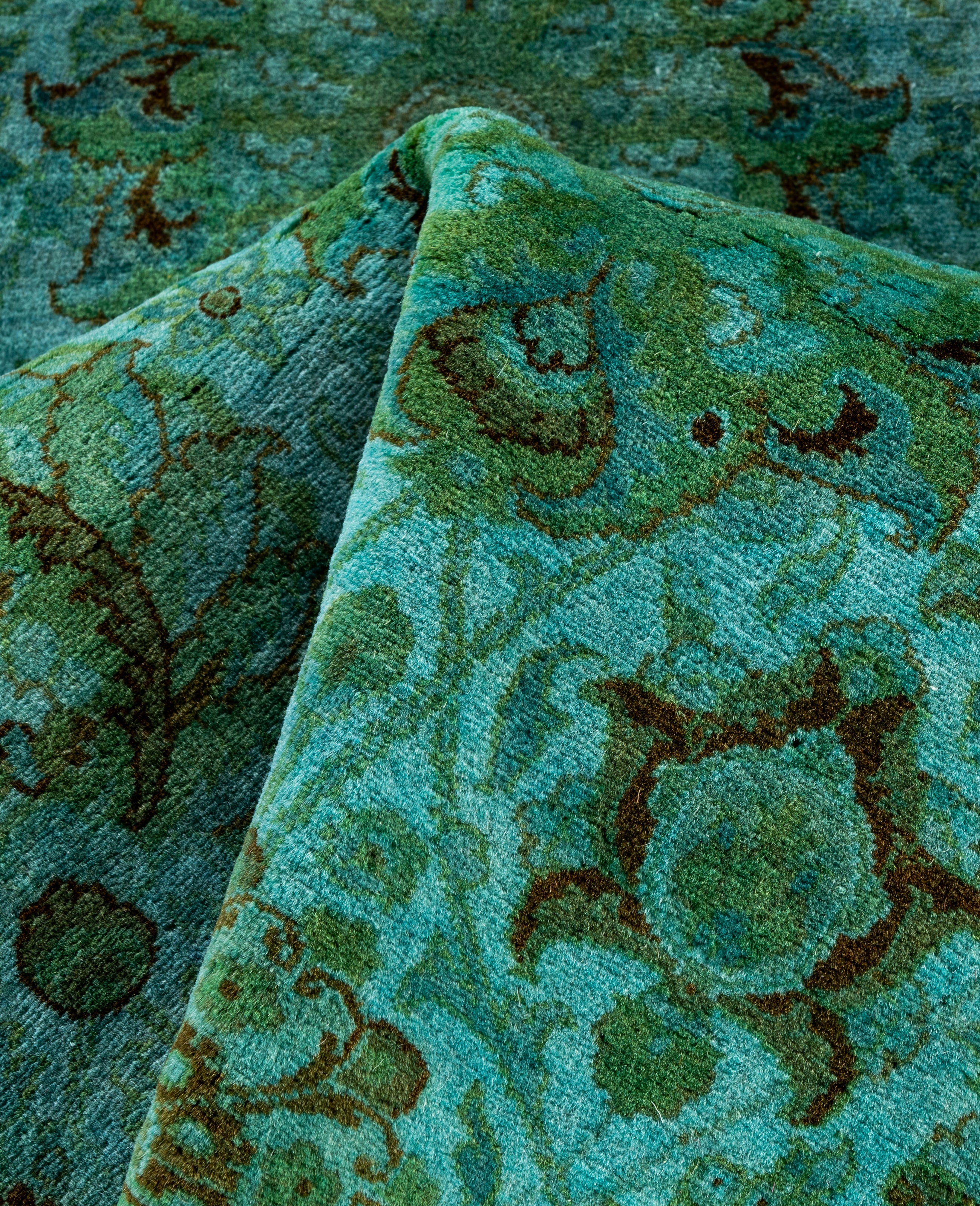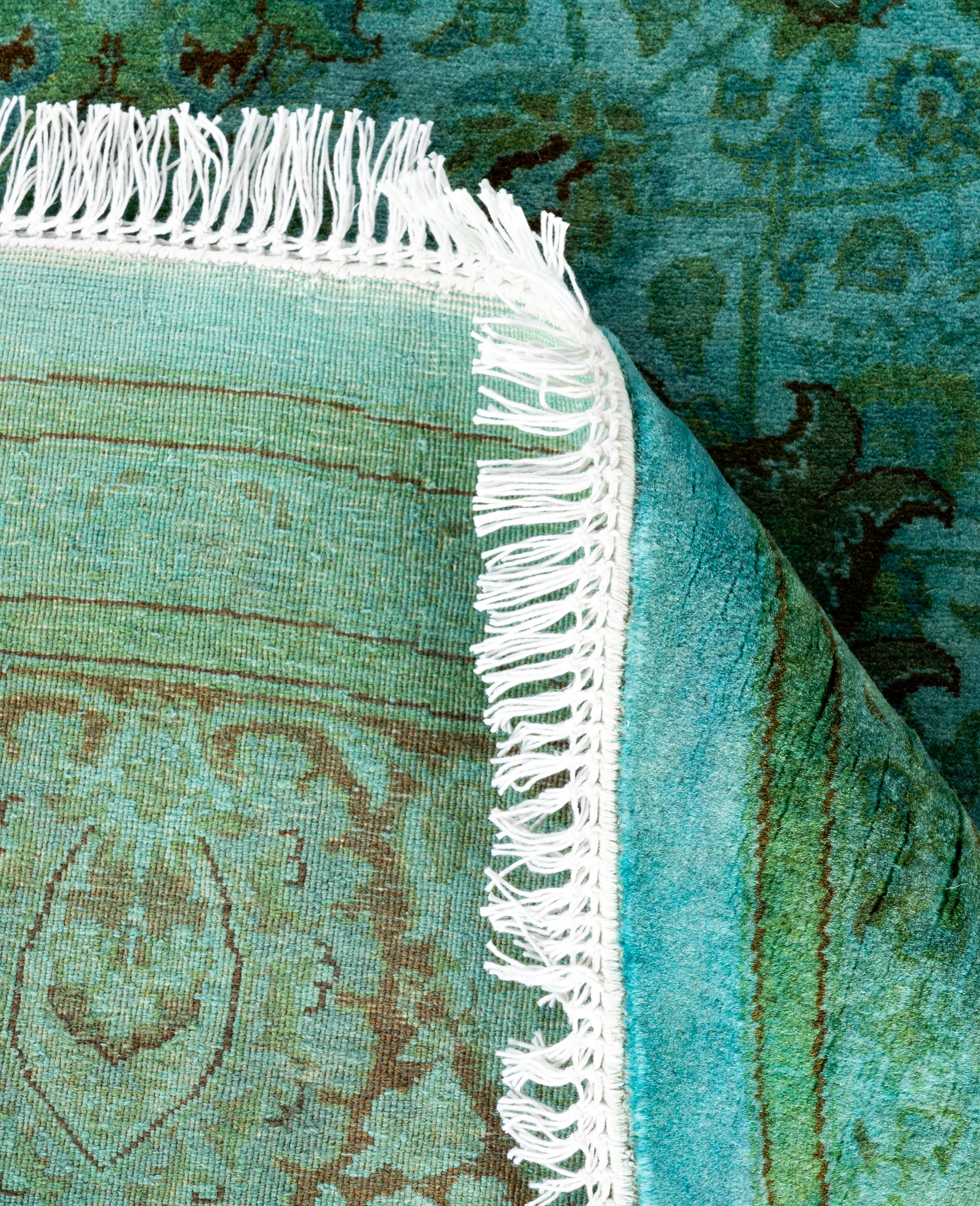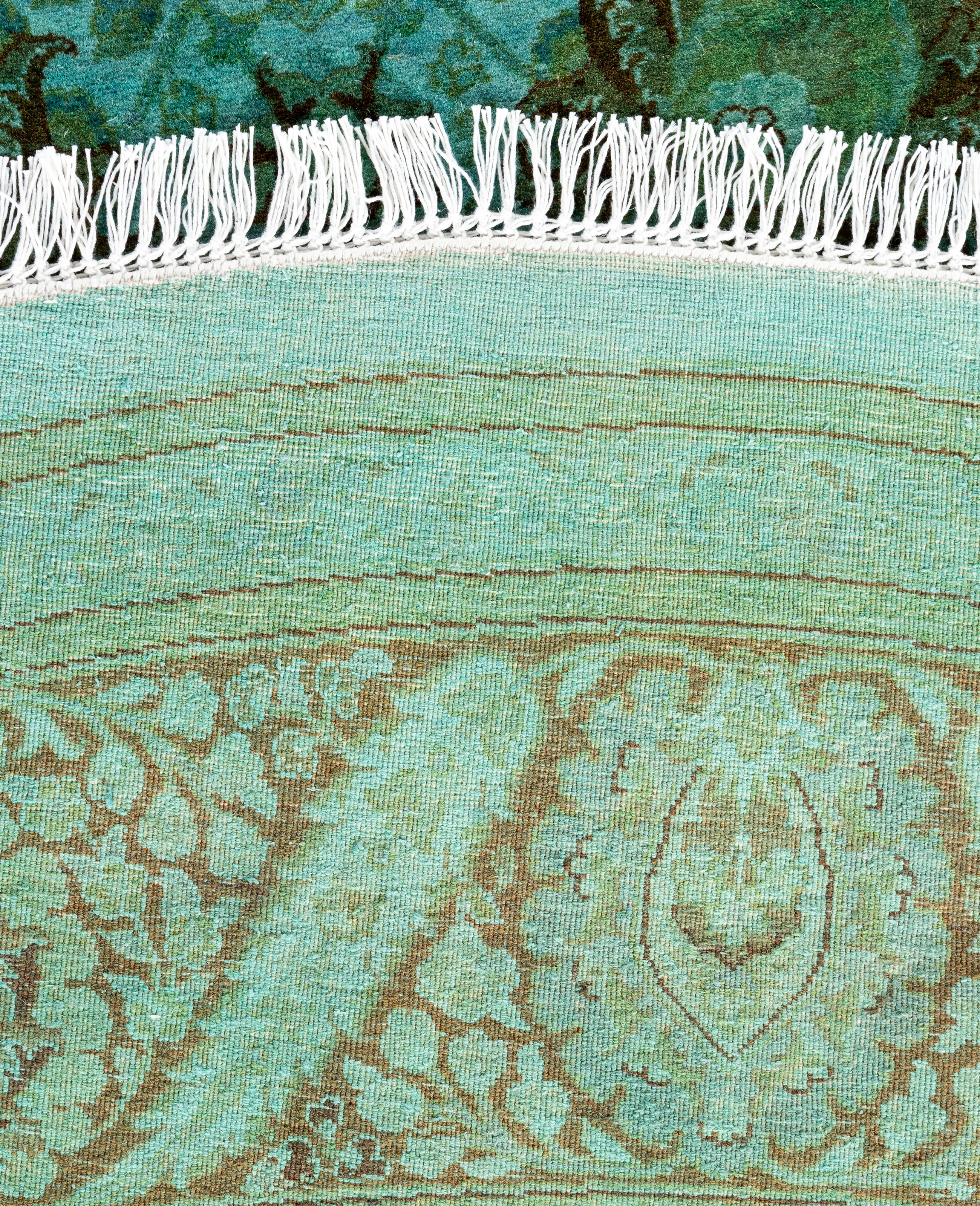 Contemporary Overdyed Wool Hand Knotted Green Round Area Rug 7' 1" x 7' 1"