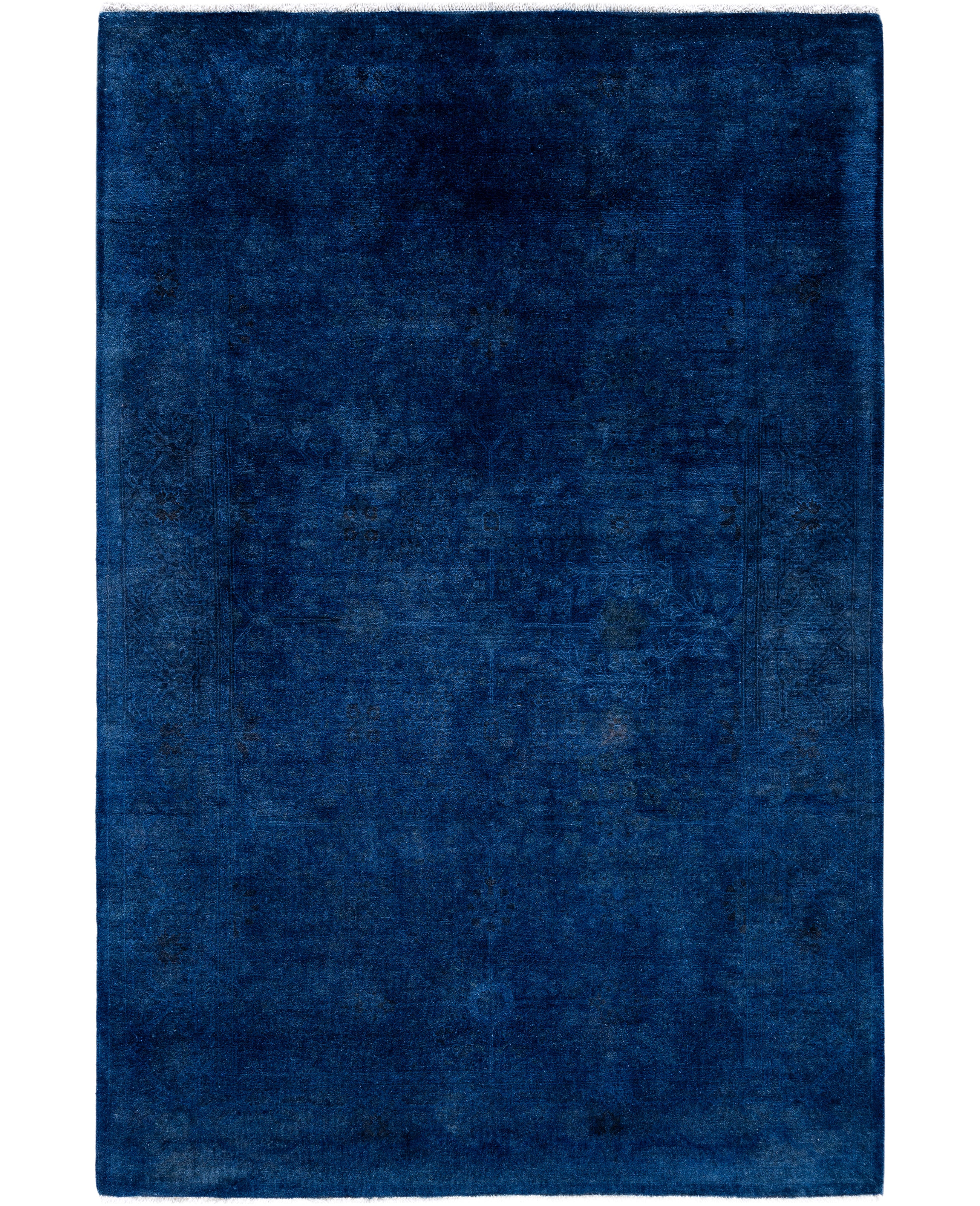 Overdyed One-of-a-Kind Wool Blue Area Rug 4' 2" x 6' 6"