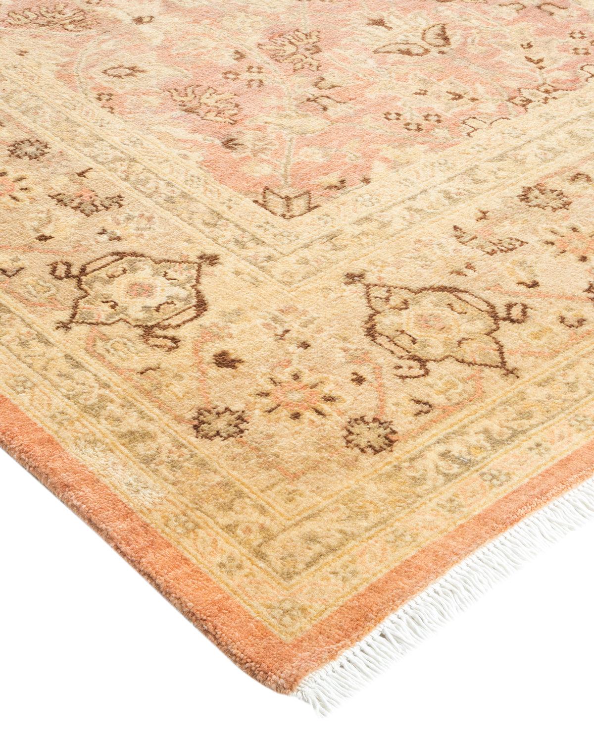 Contemporary Hand Knotted Eclectic Floral Beige Area Rug 6' 1" x 9' 3"