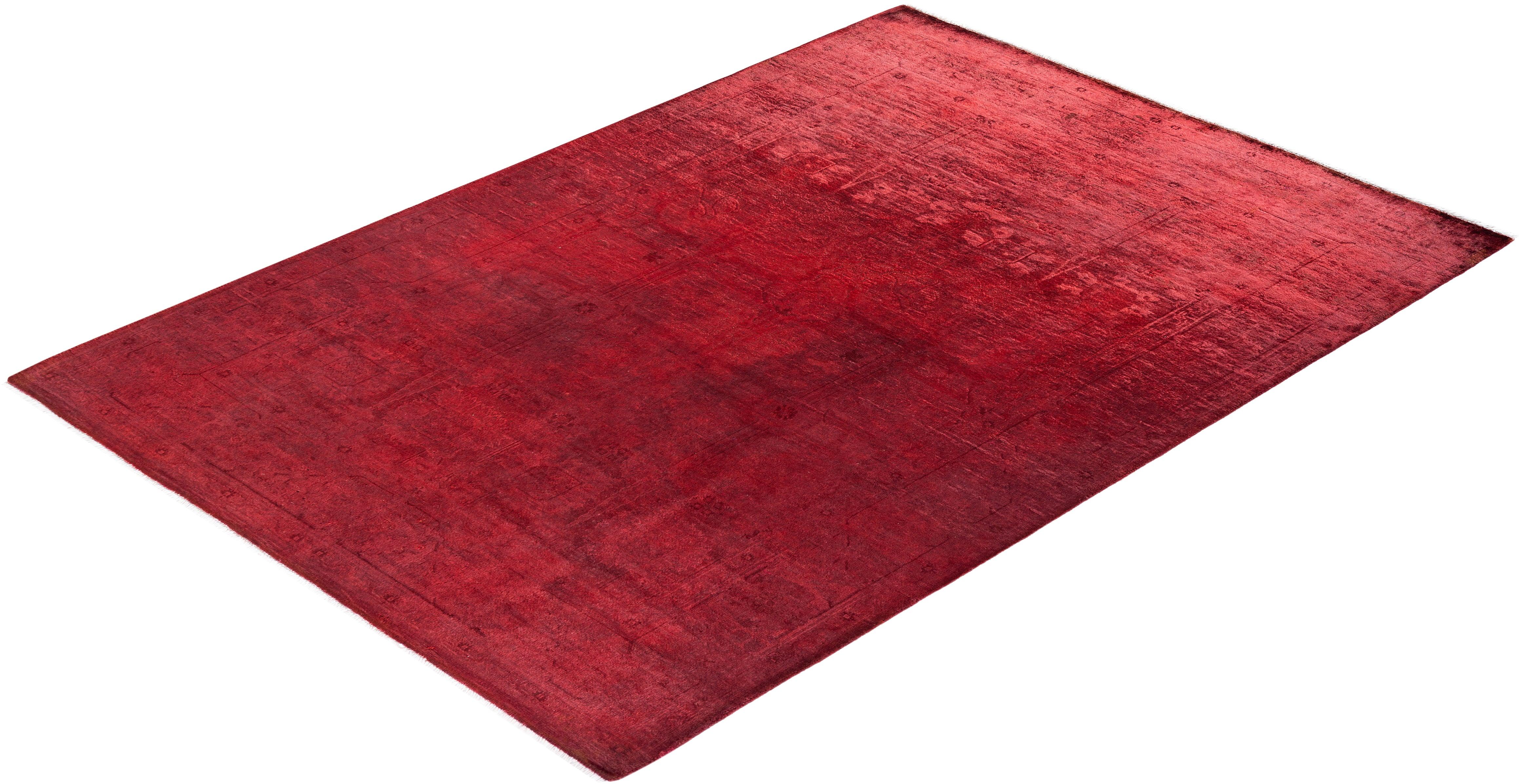 Contemporary Hand-Knotted Red Area Rug 4' 2" x 6' 0"