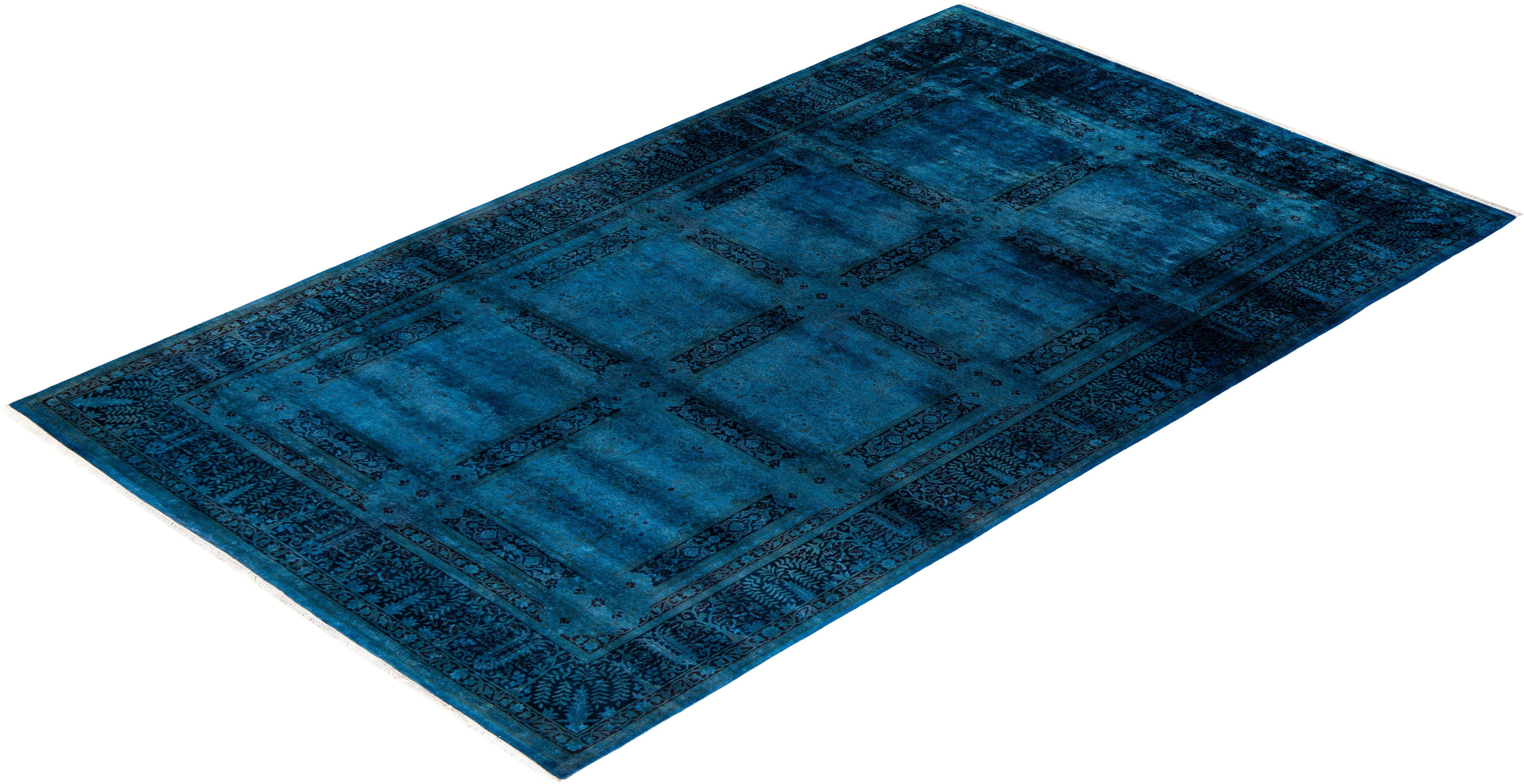 Contemporary Hand-Knotted Blue Area Rug 6' 2" x 10' 5"