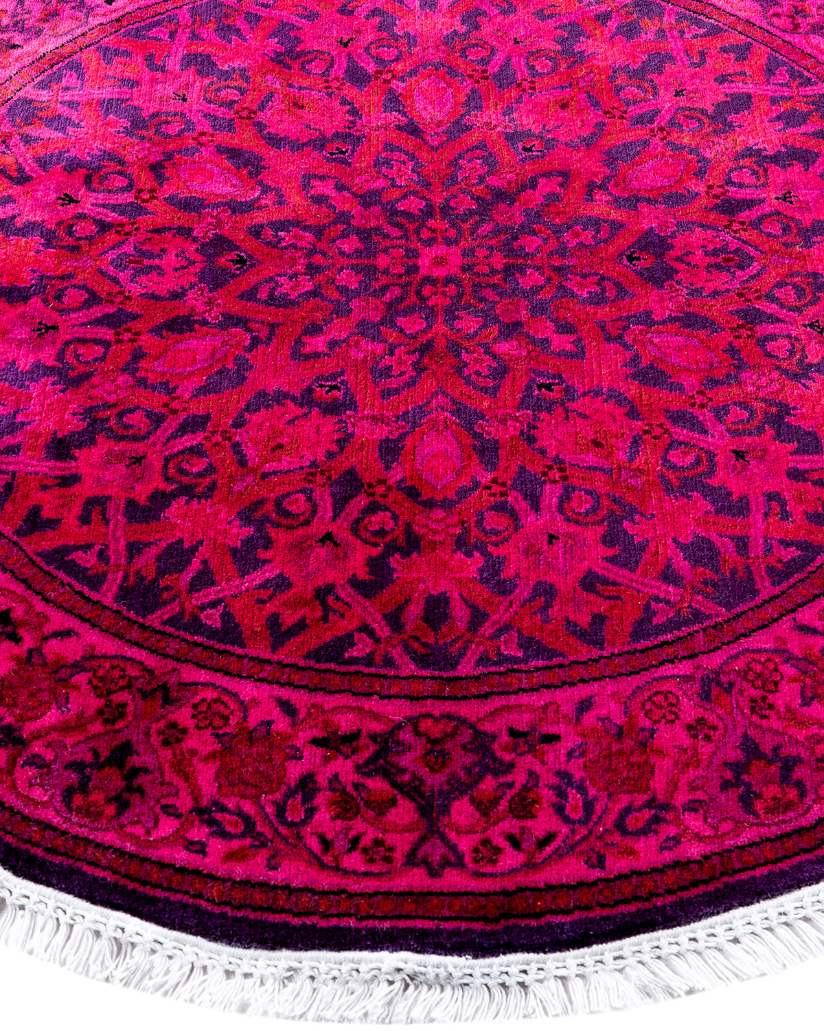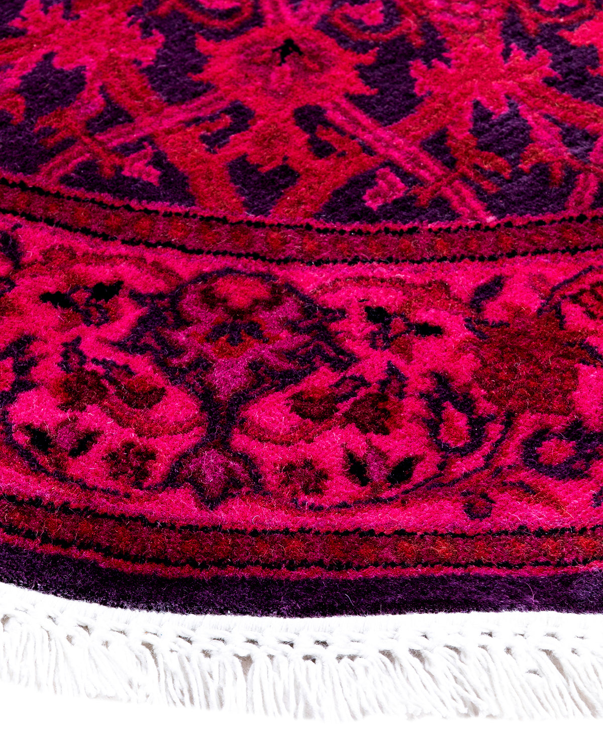 Contemporary Hand-Knotted Overdyed Pink Round Area Rug 3' 1" x 3' 1"