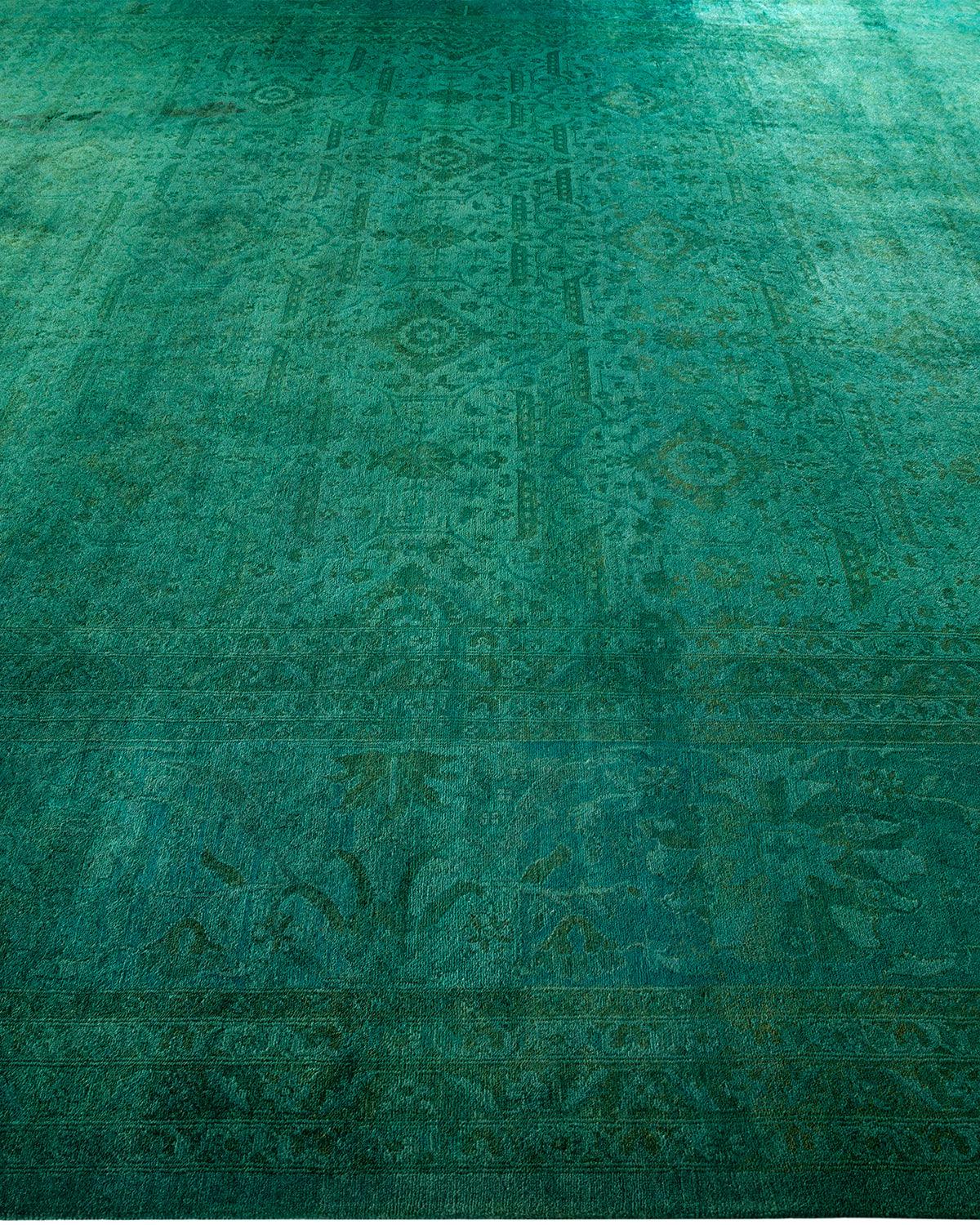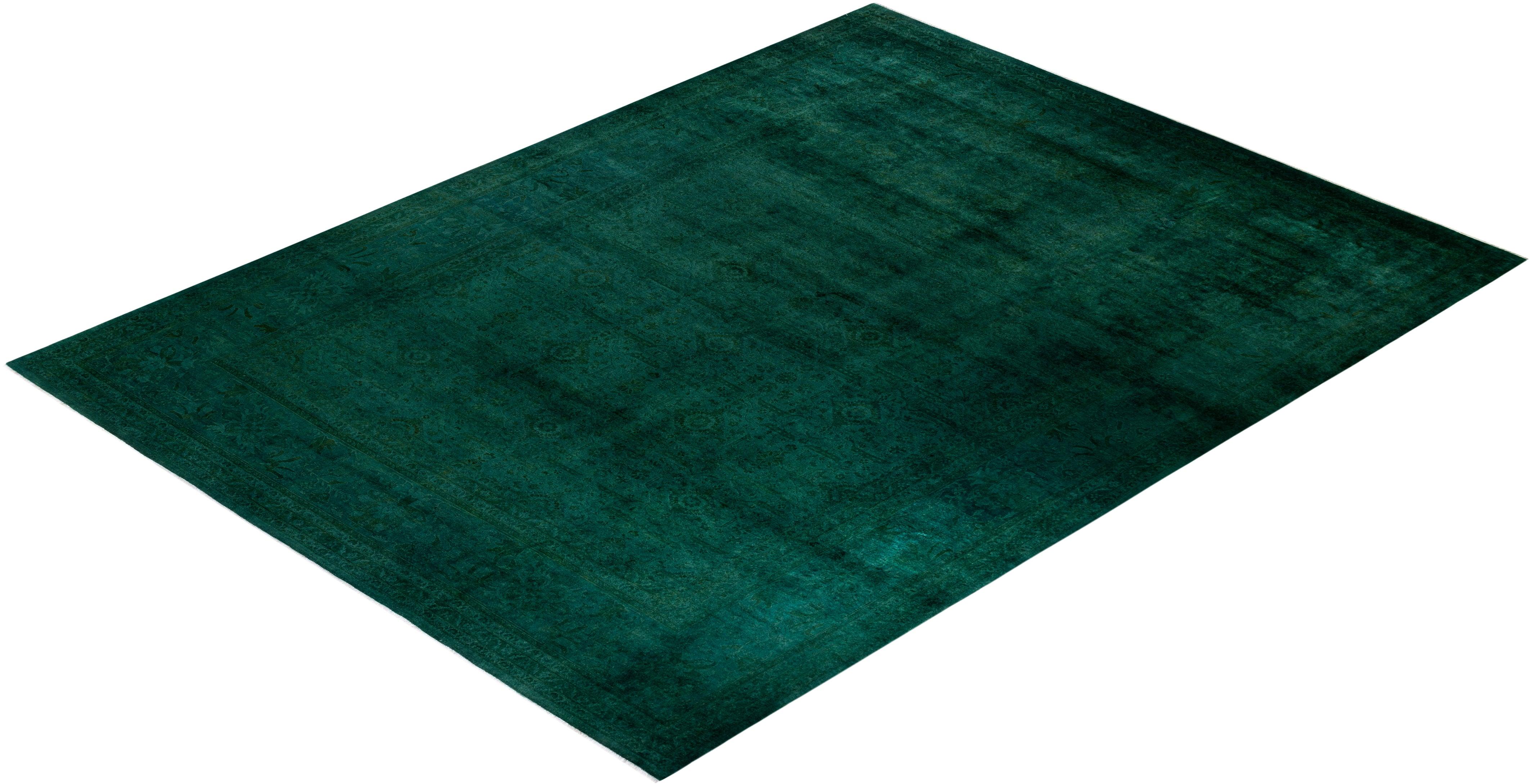 Contemporary Hand-Knotted Green Area Rug 11' 10" x 15' 9"