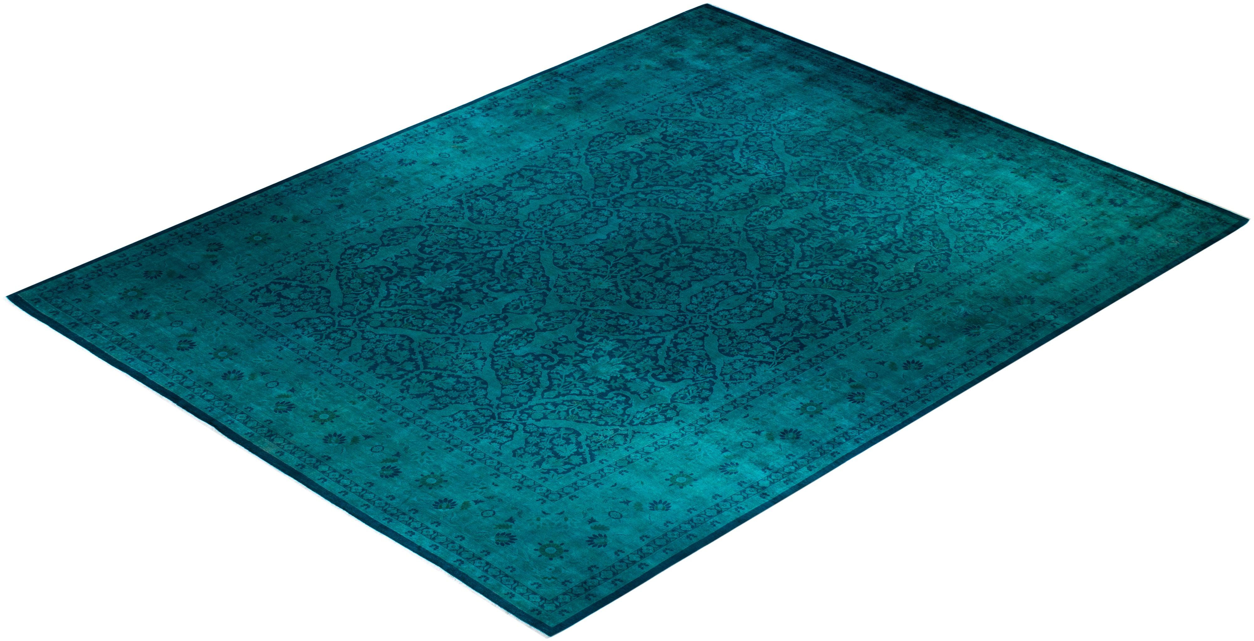 Contemporary Hand Knotted Overdyed Blue Area Rug 15' 5" x 11' 10"