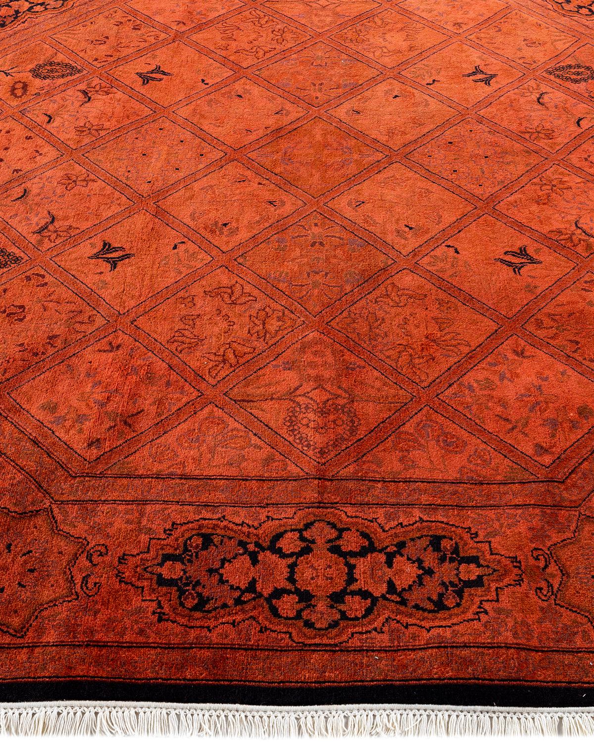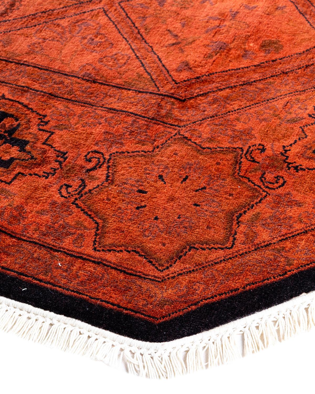 Contemporary Hand-Knotted Orange Octagon Area rug 6' 1" x 6' 1"