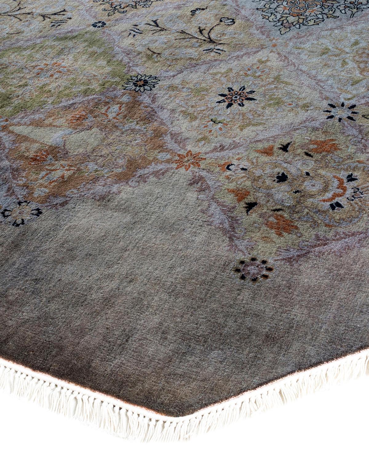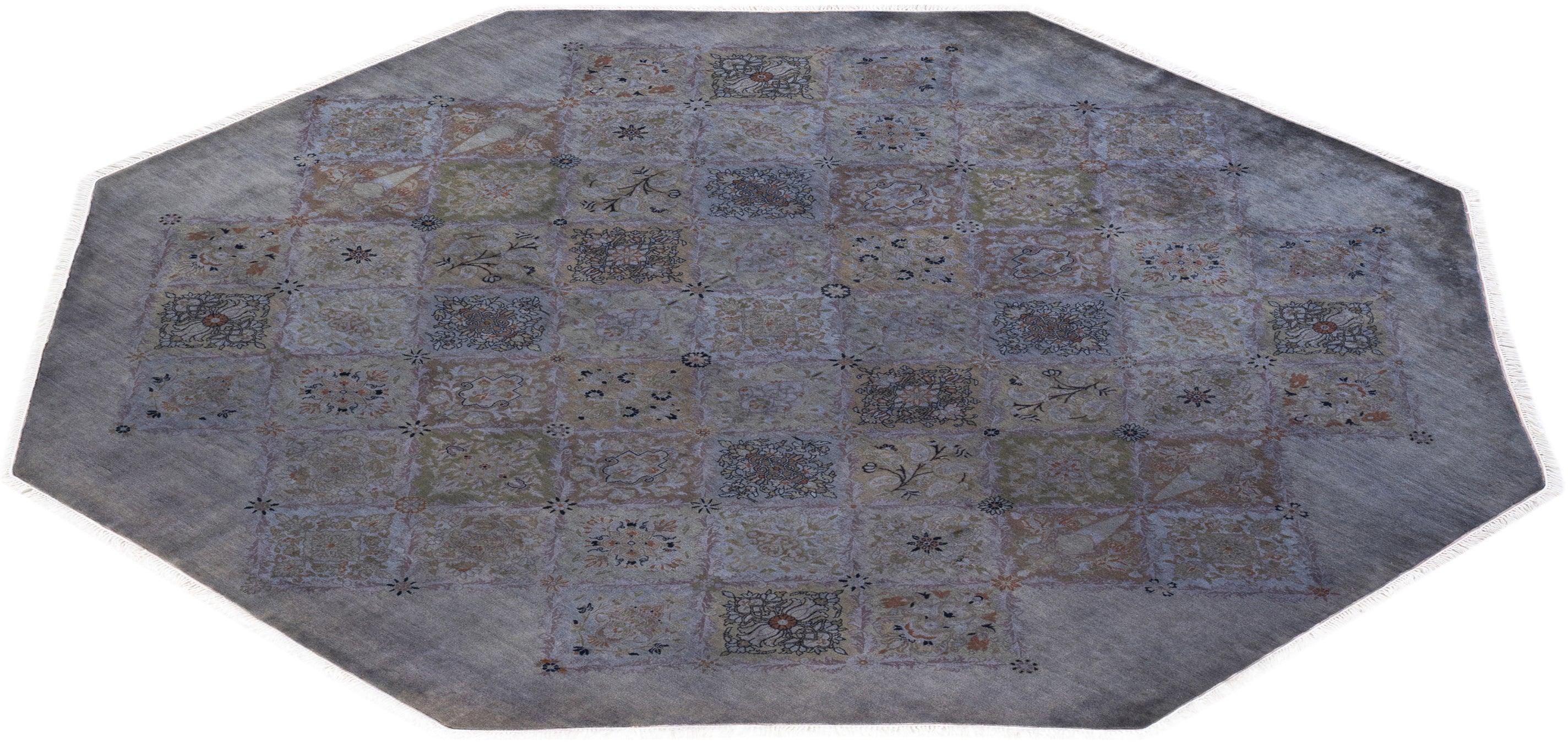 Contemporary Hand Knotted Overdyed Gray Octagon Area rug 8' 1" x 8' 1"