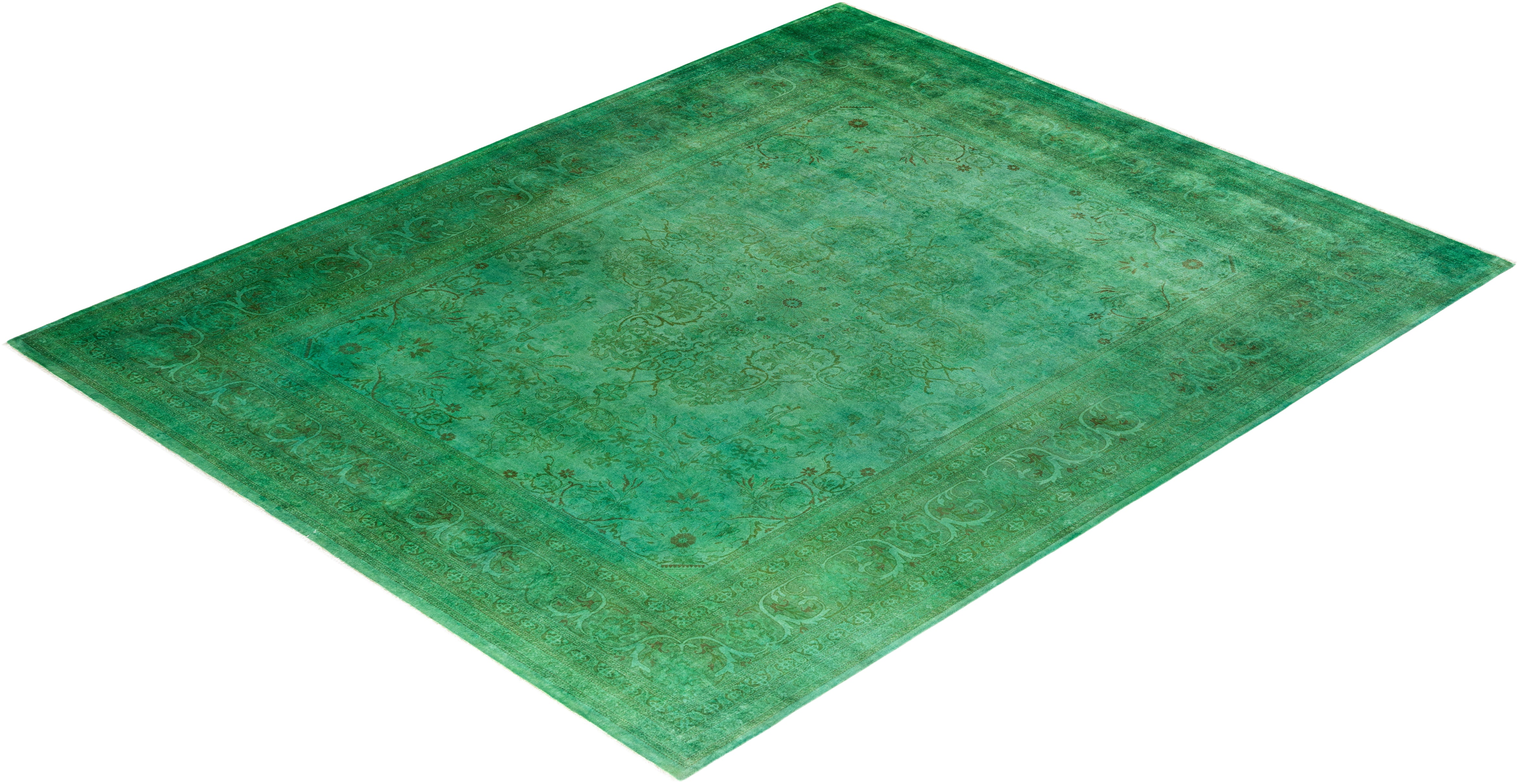 Contemporary Hand-Knotted Overdyed Green Area Rug 8' 1" x 9' 10"