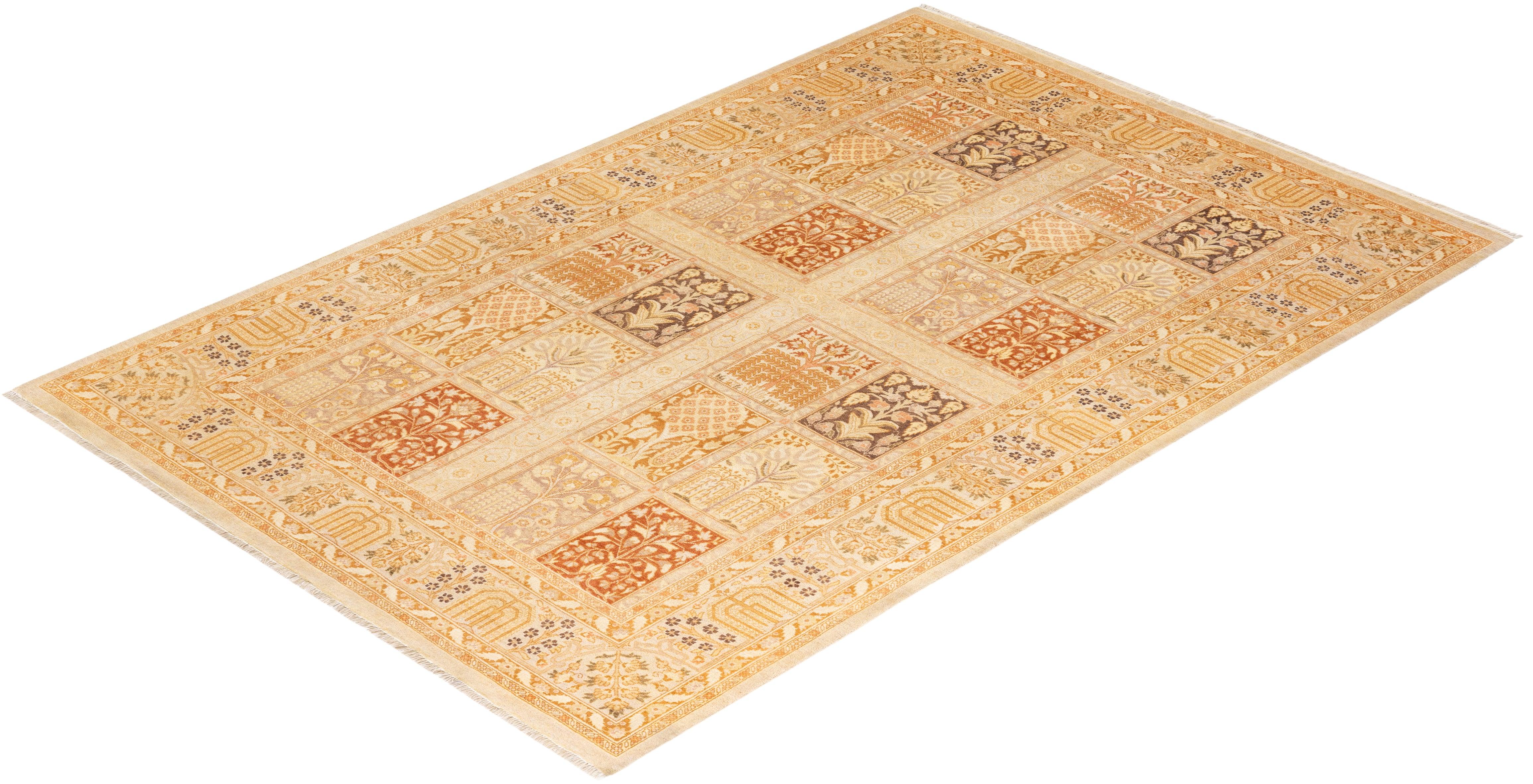 Traditional Hand Knotted Mogul Oriental Ivory Area Rug 6' 2" x 9' 2"