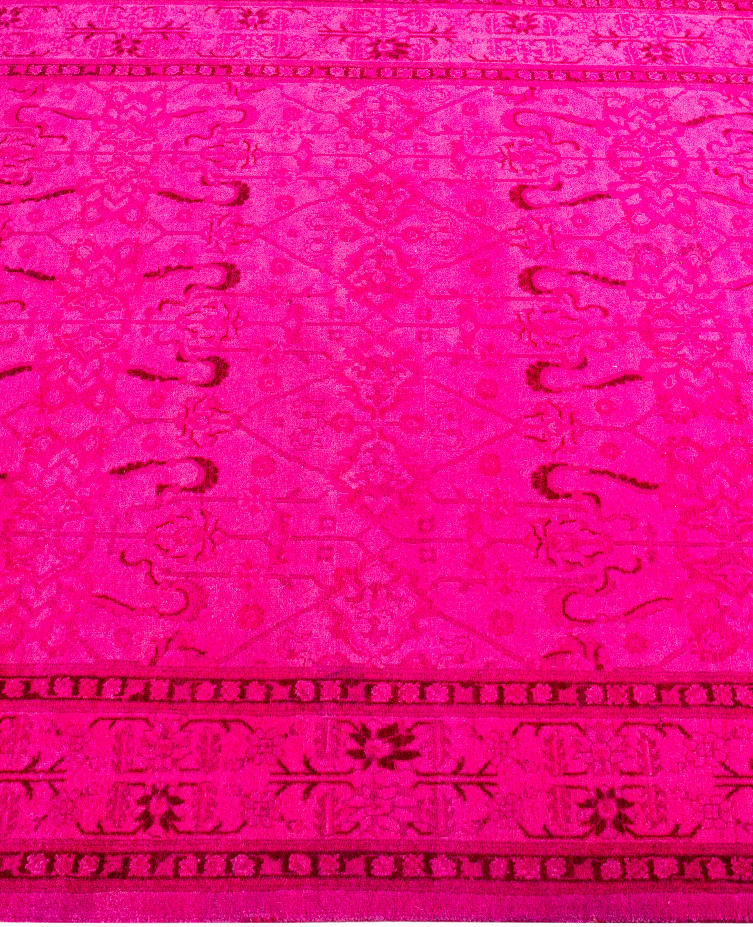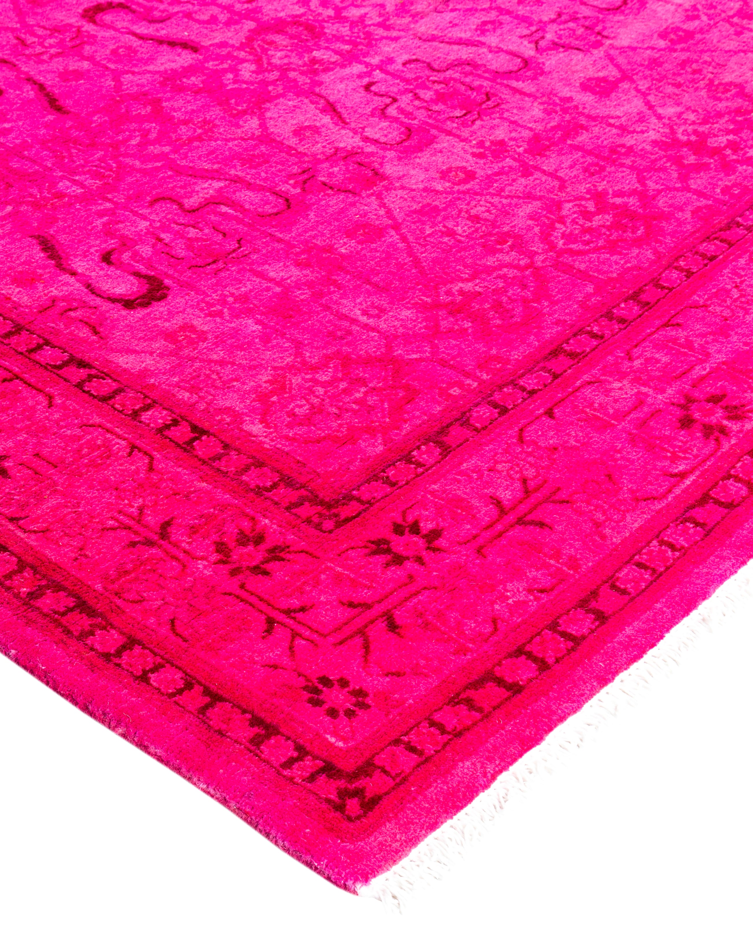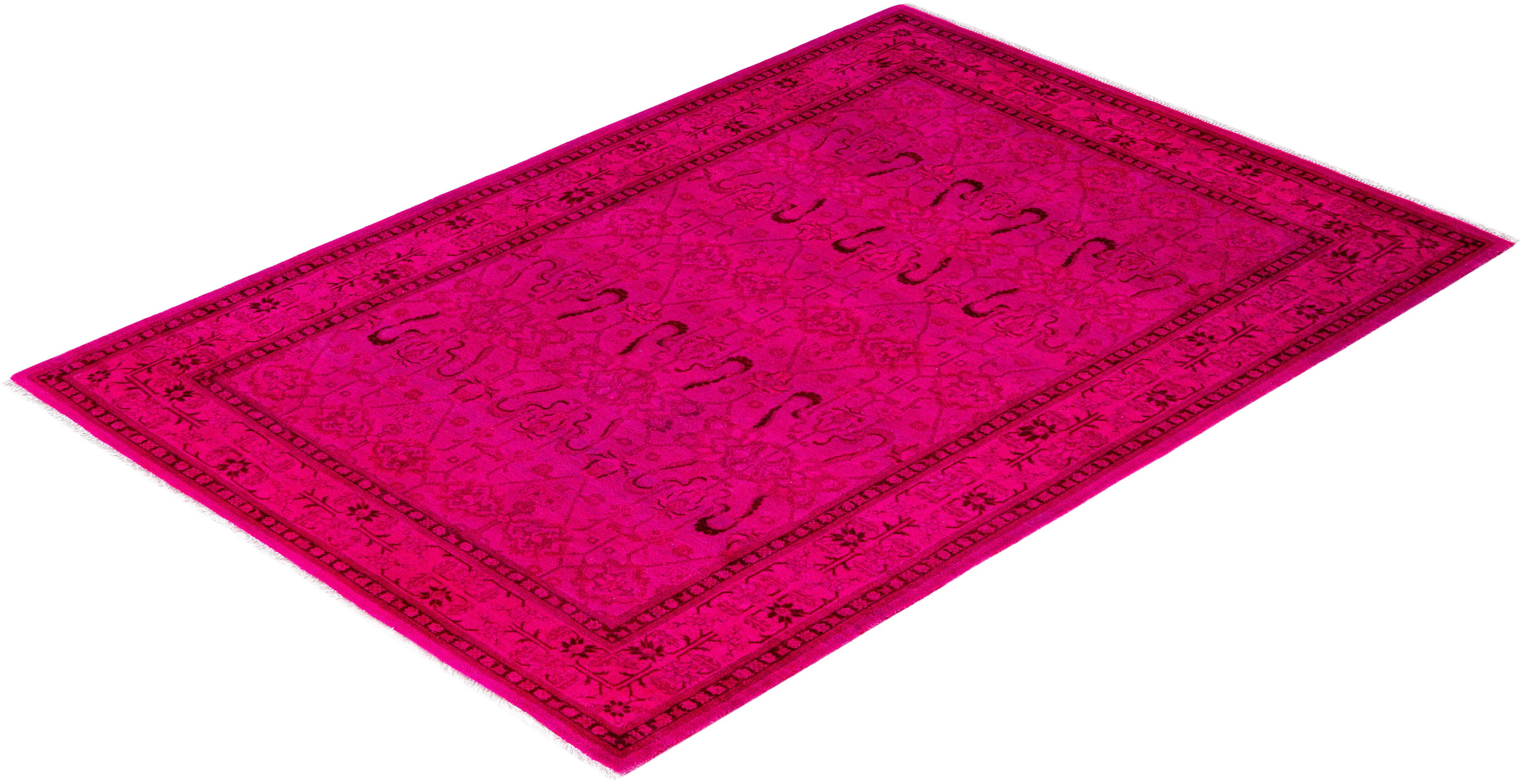 Contemporary Overdyed Wool Hand Knotted Pink Area Rug 4' 3" x 6' 1"